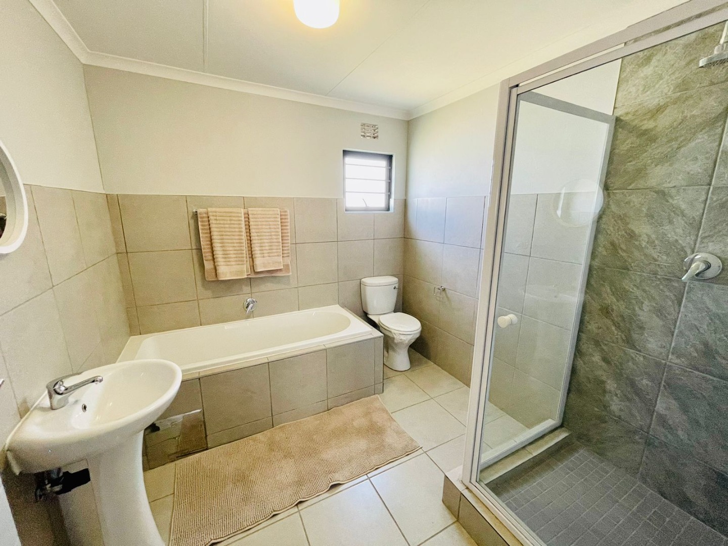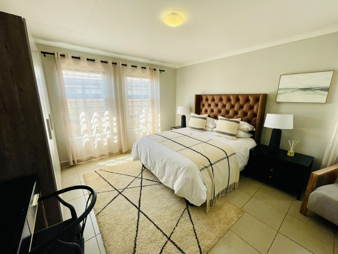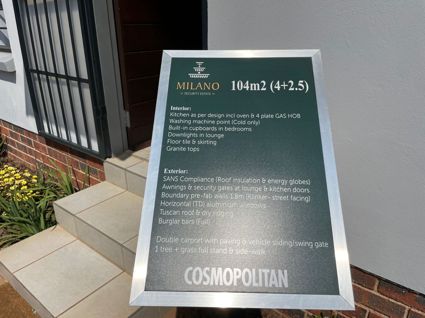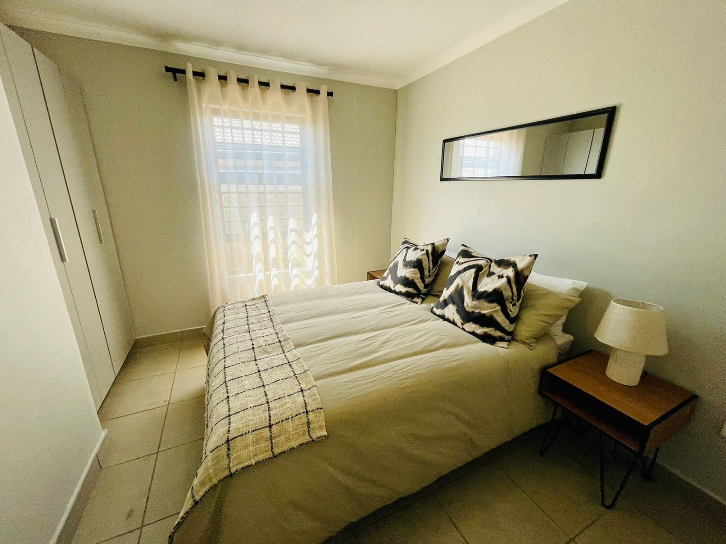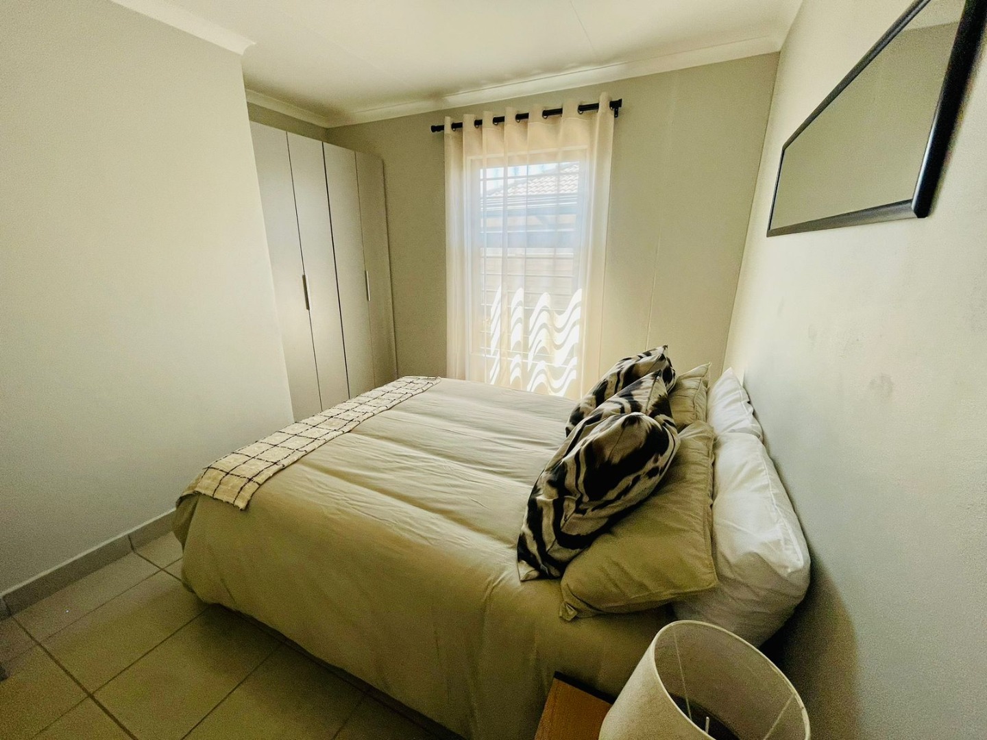 Discover this modern single-story home, perfectly situated within a secure estate in Alberton Central. The property immediately impresses with its distinctive exterior, featuring a contemporary blend of grey, orange, and brick accents. A neatly landscaped front garden and a paved driveway lead to a convenient carport, enhancing its kerb appeal. Practical amenities include a solar water heater, contributing to energy efficiency, while security is assured with window bars and a security gate. Step inside to an inviting open-plan layout, seamlessly connecting the living area with a sleek, modern kitchen. The kitchen is a highlight, boasting dark granite countertops, stylish two-tone cabinetry, and stainless steel appliances including a gas hob, oven, and a large refrigerator. A built-in washing machine adds convenience, and a functional breakfast bar provides casual dining space. Tiled flooring extends throughout the home, offering a clean and low-maintenance aesthetic, ready for your personal touch. This residence offers four comfortable bedrooms, each featuring practical built-in wardrobes and ample natural light from well-placed windows. The tiled flooring continues into the bedrooms, ensuring consistency and ease of care. With 2.5 well-appointed bathrooms, including a guest toilet, the home efficiently caters to family needs. Situated within a secure estate with 24-hour security, residents benefit from enhanced peace of mind. The property is totally walled and further secured with burglar bars and security gates, reinforcing safety. Alberton Central, located in the vibrant city of Alberton, South Africa, offers a suburban lifestyle with convenient access to amenities and transport routes. Key Features: * 4 Bedrooms, 2.5 Bathrooms * Modern Open-Plan Living Area * Sleek Kitchen with Granite Countertops * Built-in Wardrobes in Bedrooms * Paved Driveway and Carport * Energy-Efficient Solar Water Heater * Secure Estate with 24-Hour Security * Burglar Bars and Security Gate * Tiled Flooring Throughout