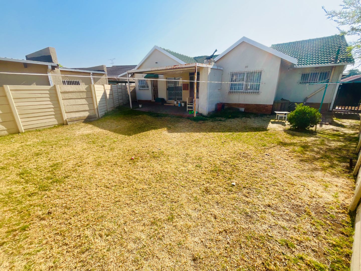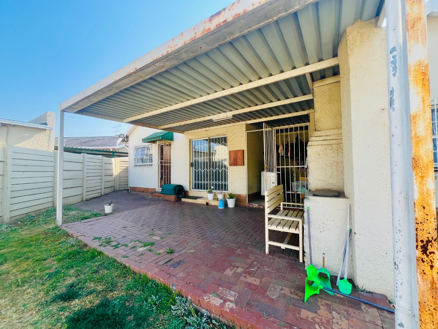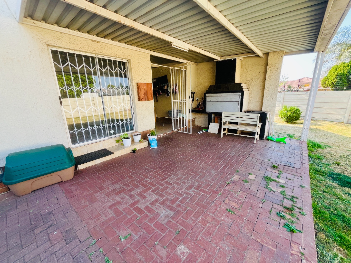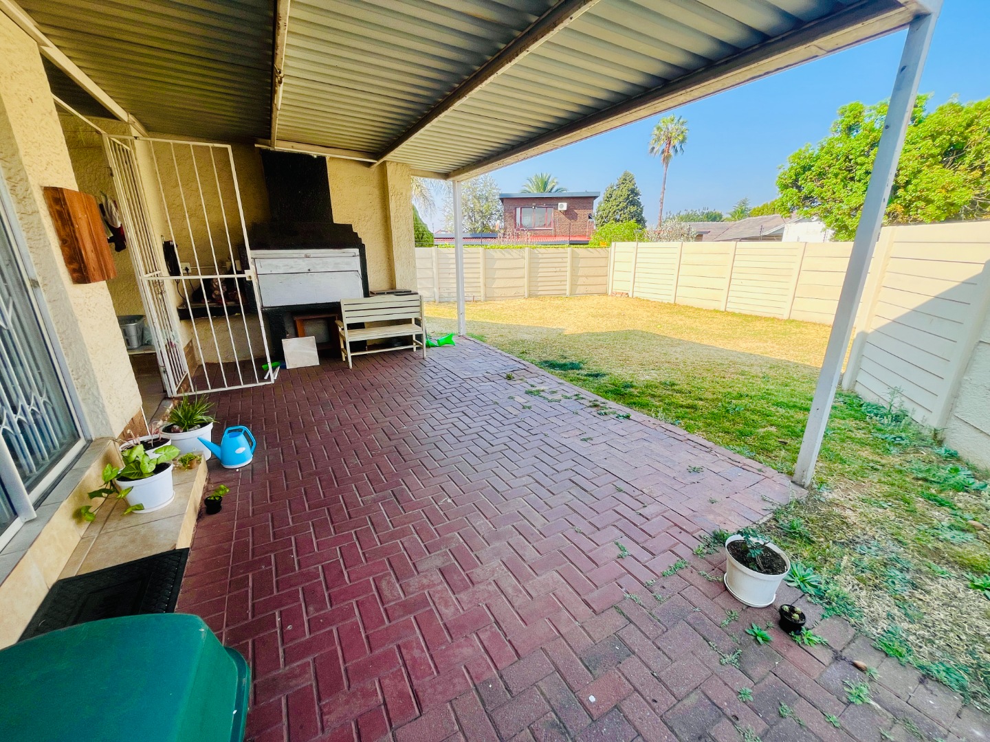 - Covered backyard patio with built-in braai, plus laundry and storage area