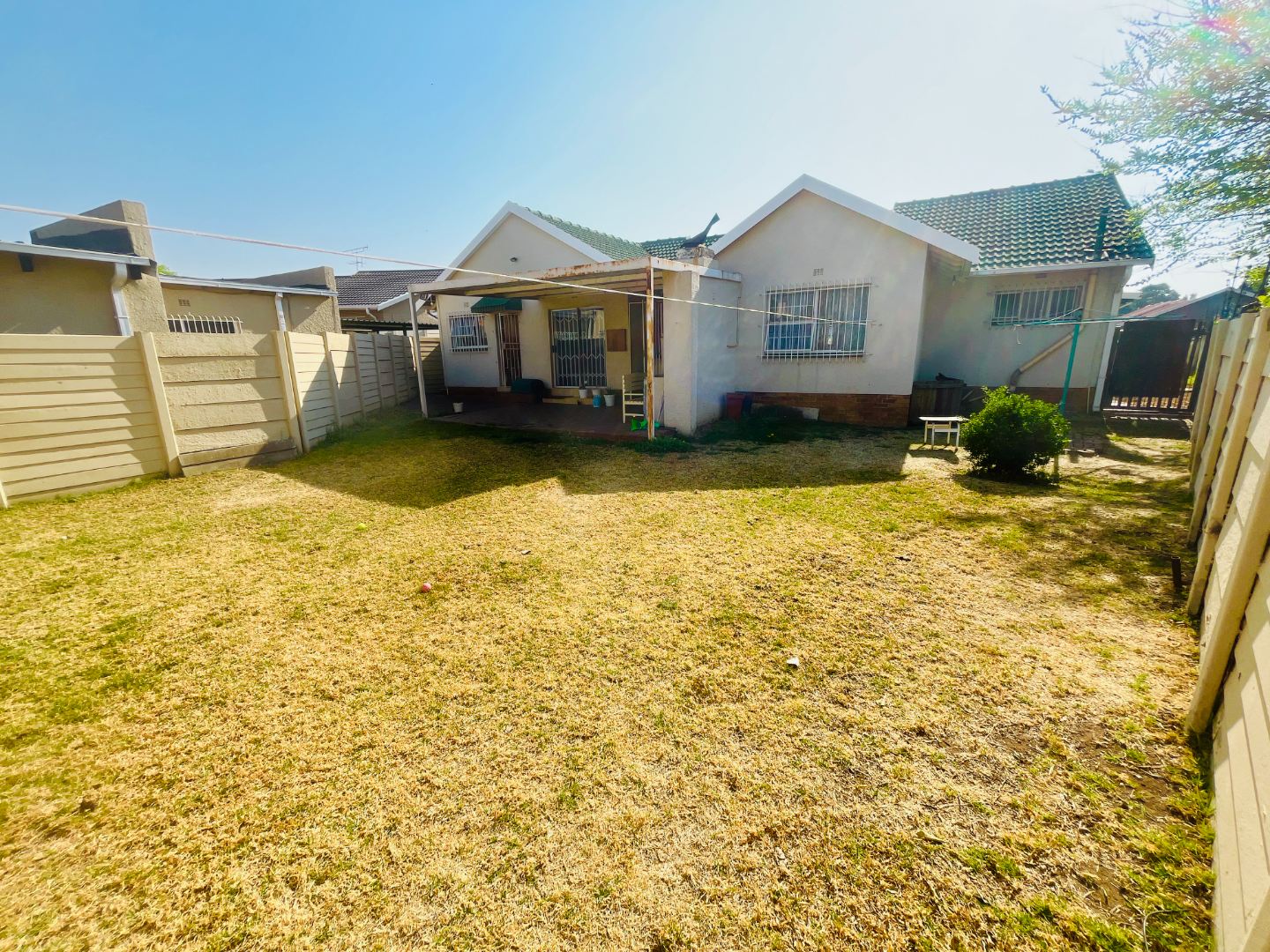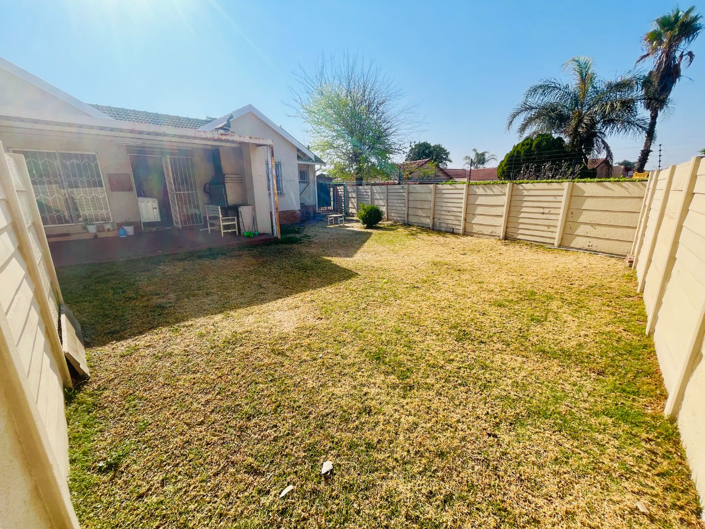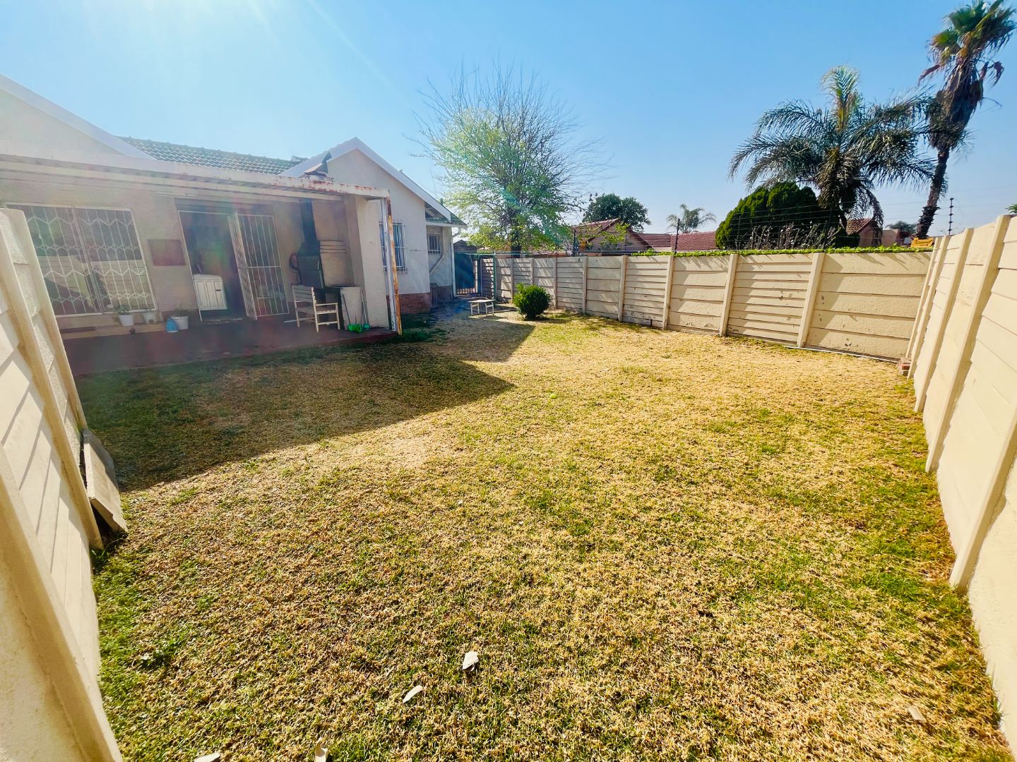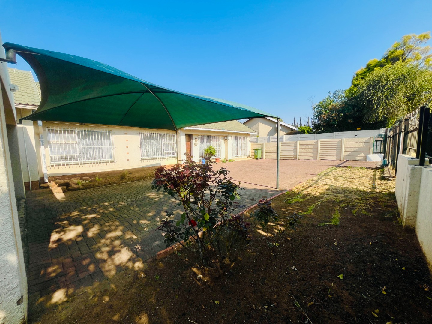 - Covered backyard patio with built-in braai, plus laundry and storage area