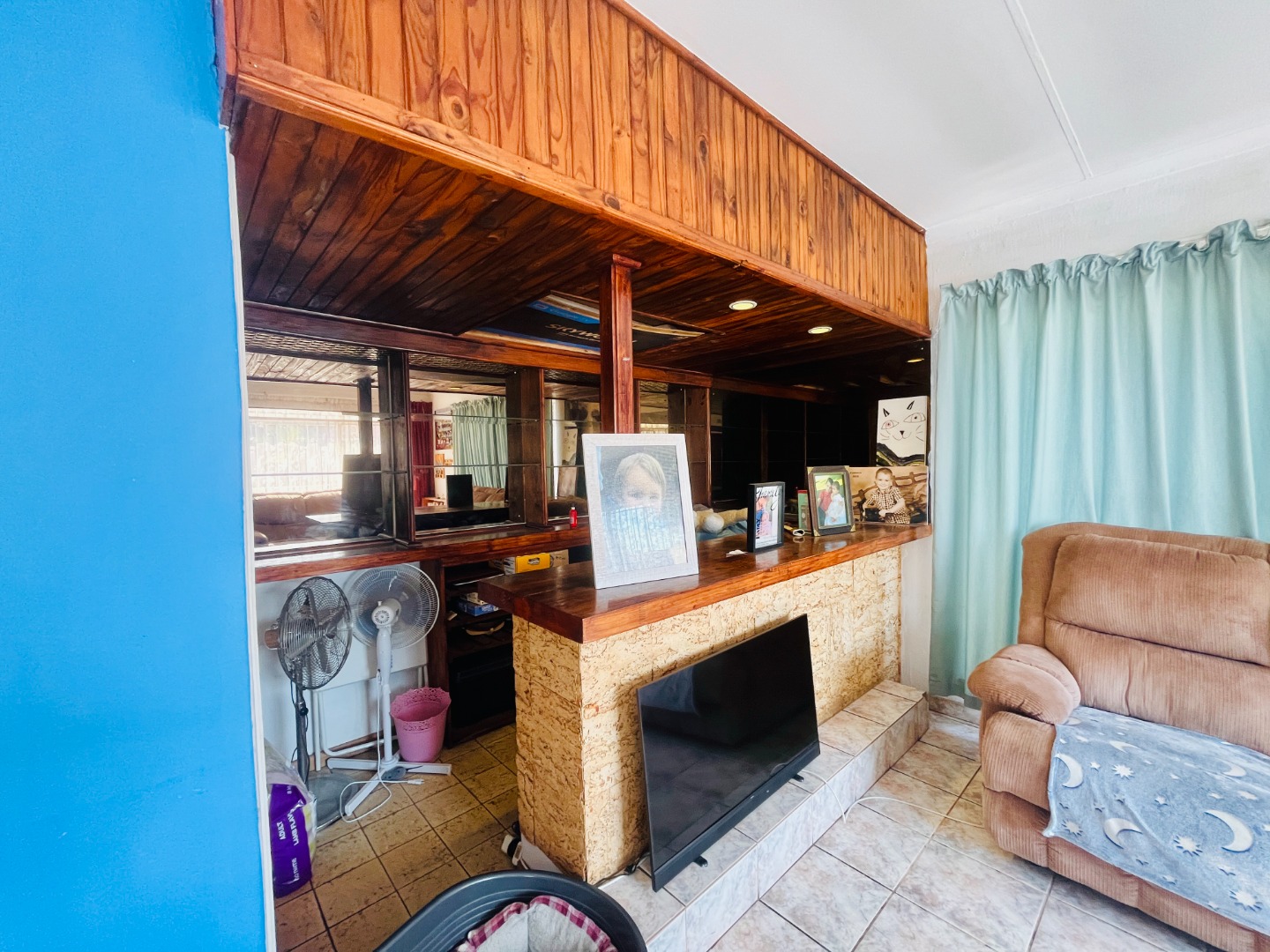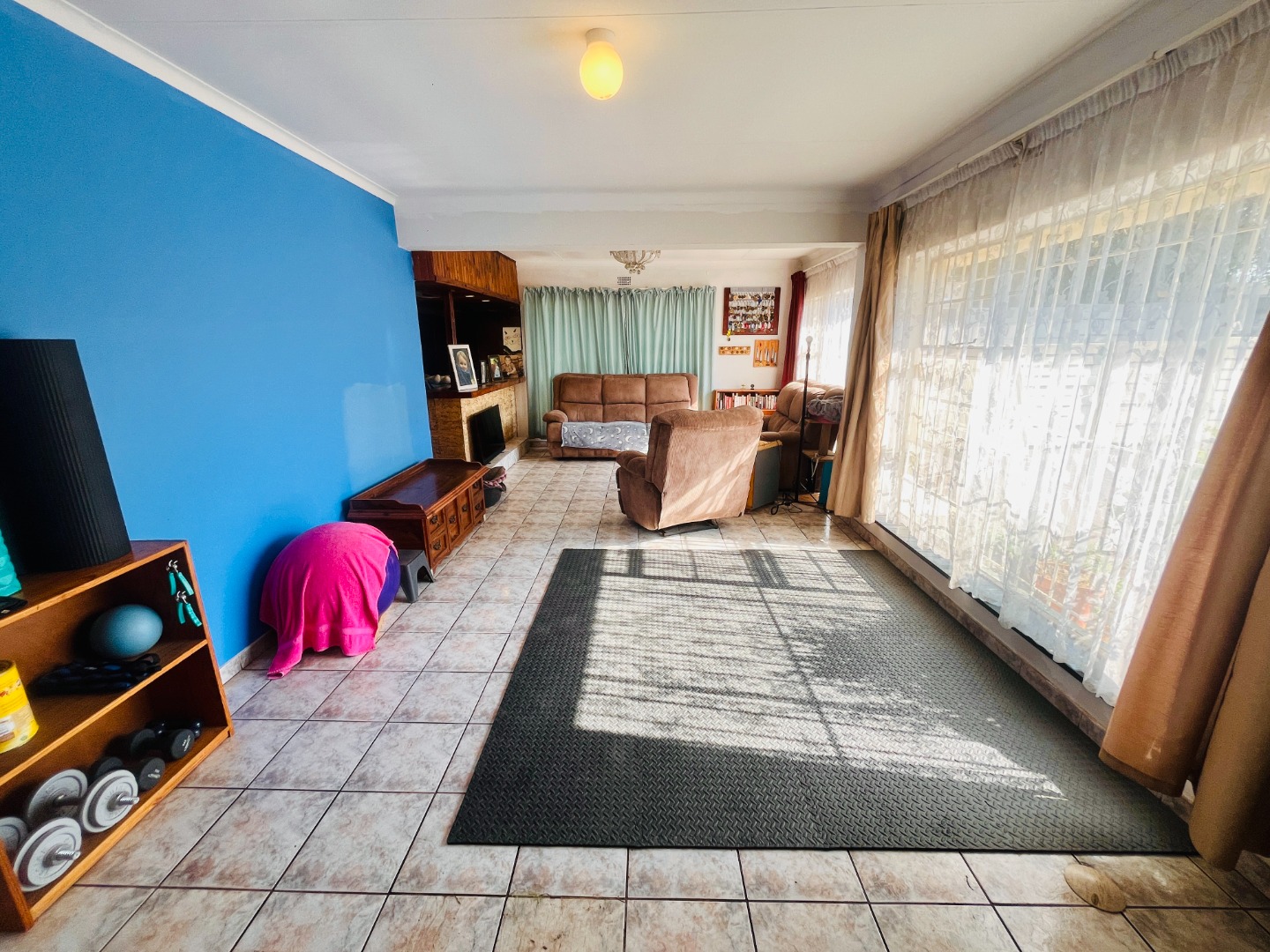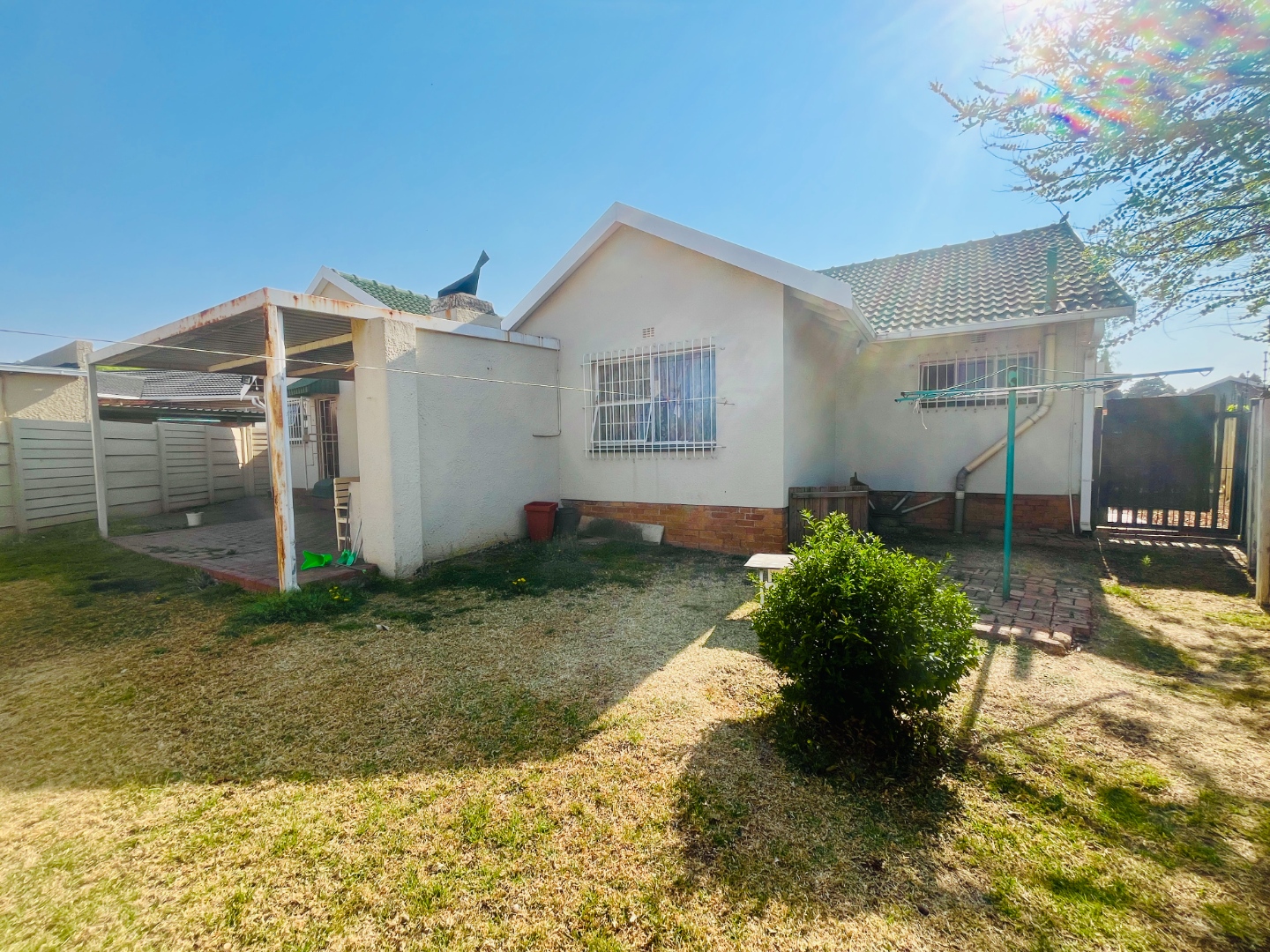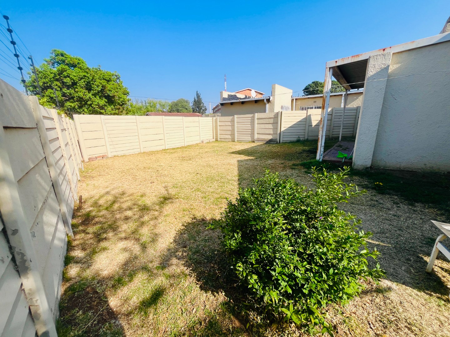 - Covered backyard patio with built-in braai, plus laundry and storage area