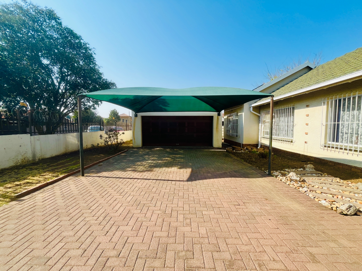 - Paved front yard with double garage and double carport for secure parking