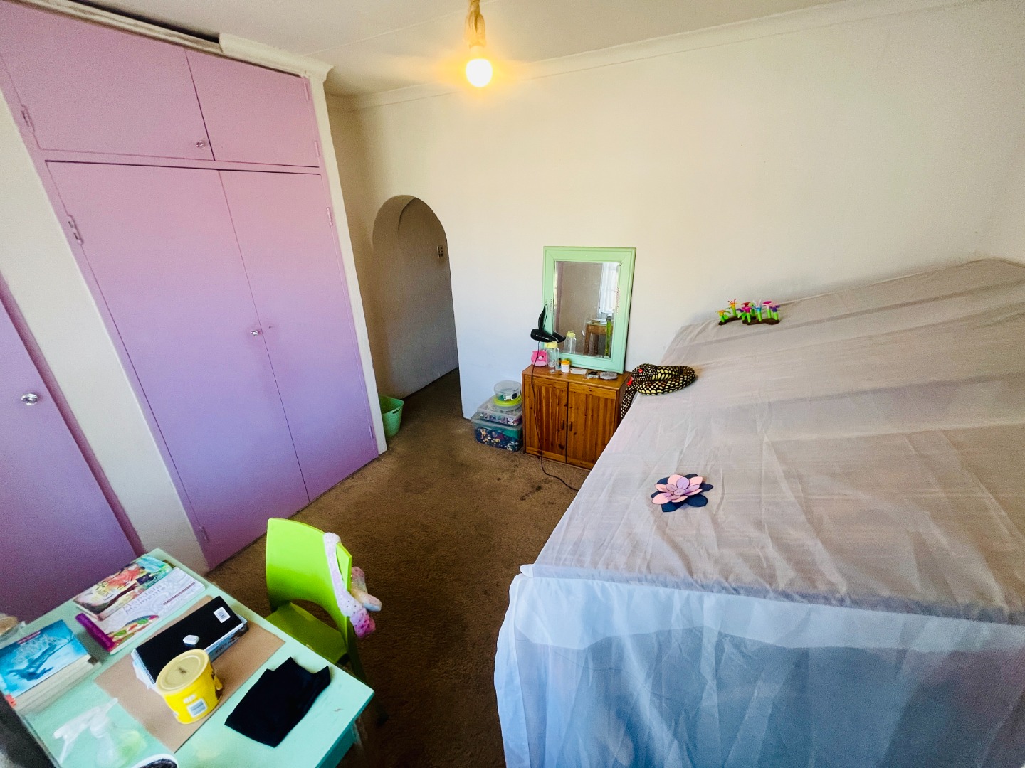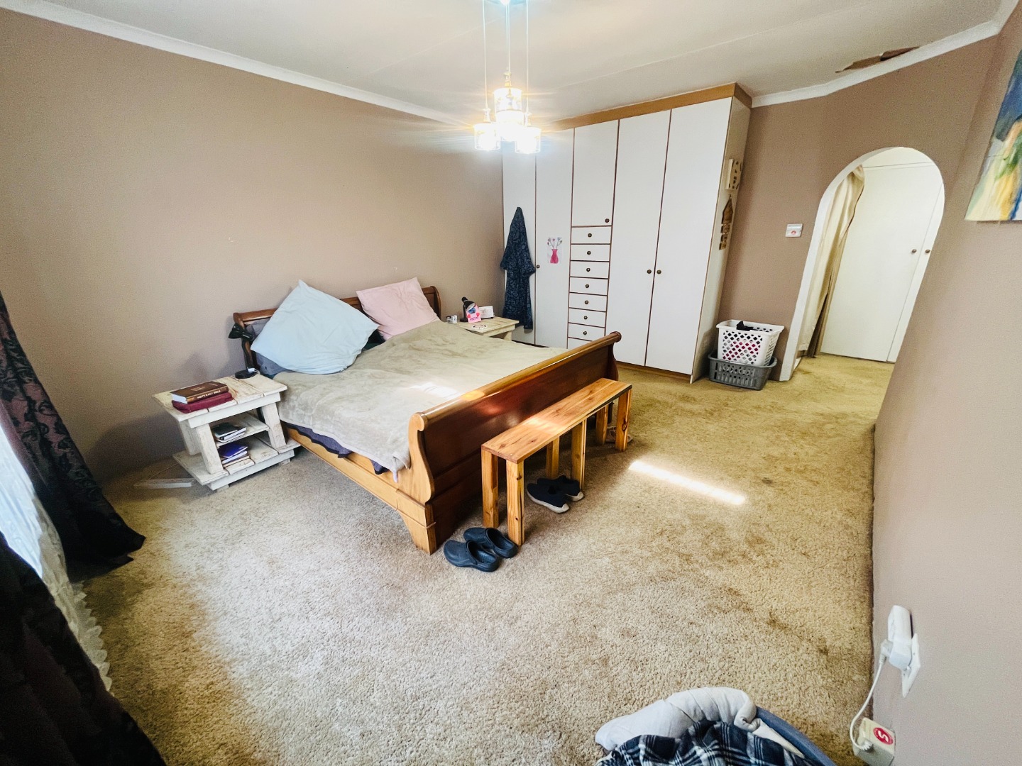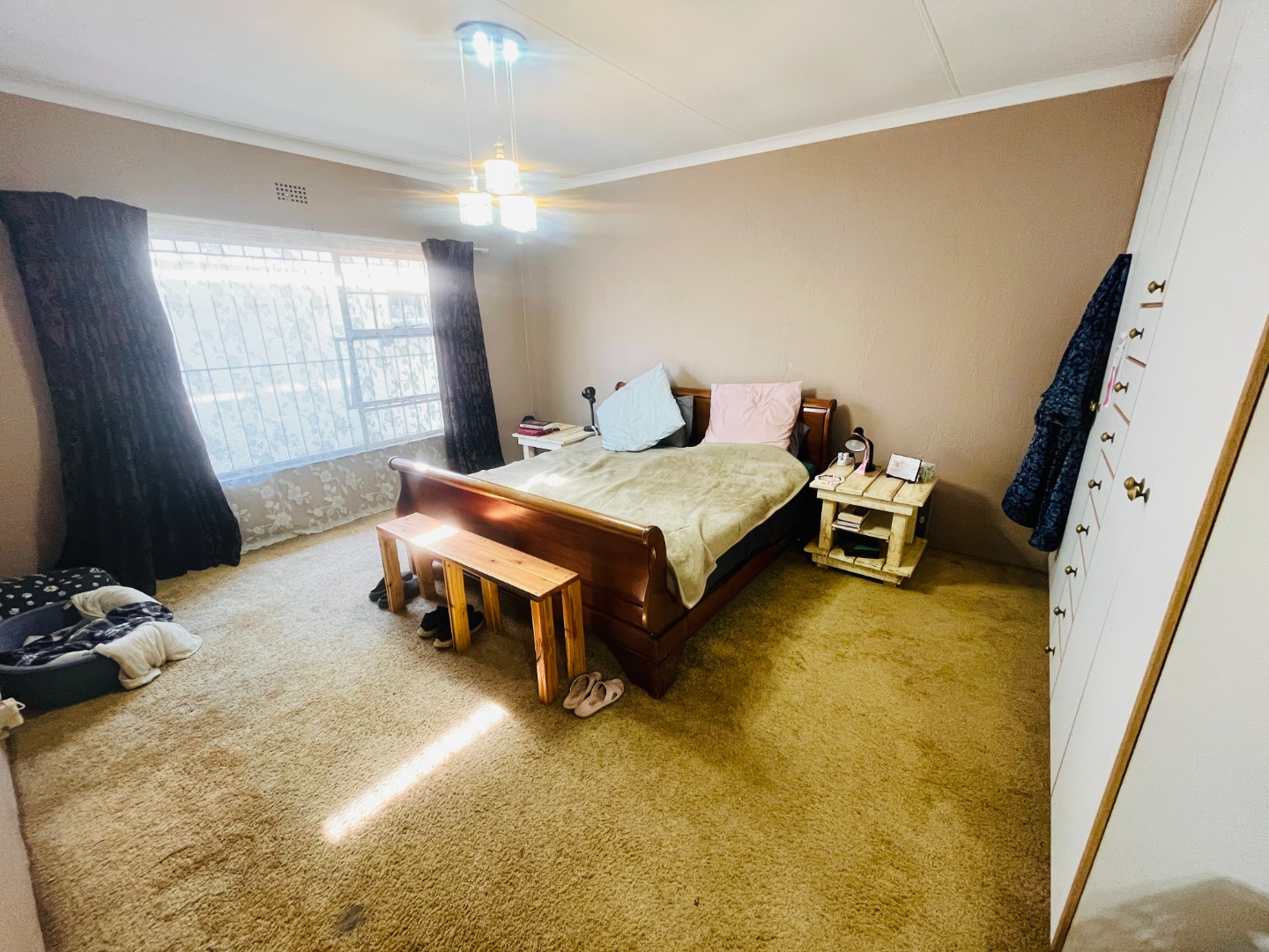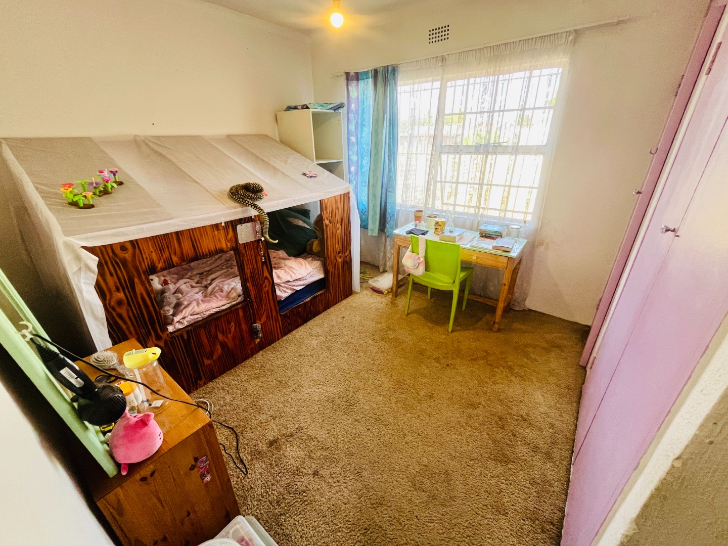 Step inside through the front door and into a welcoming lounge and bar area with a built-in bar perfect for entertaining guests or unwinding after a long day. The open plan layout flows into the dining and sitting areas, creating a seamless living space filled with natural light. The kitchen is generously sized with plenty of room to cook up a storm with a back door for added convenience. The passage leads to the private quarters of the home. Four bedrooms offer flexibility for a growing family or home office needs. The large main bedroom is a standout feature with abundant cupboard space and an en suite bathroom. The second bathroom has been recently updated with modern finishes to ensure comfort and style.