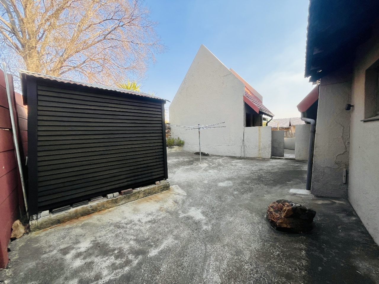 Outside a sparkling private swimming pool complete with a built-in outdoor braai area and spacious paved deck, promises idyllic leisure and al fresco dining. The expansive garden, staff quarters, a single garage and two additional parking spaces enhance this exceptional offering. Security is paramount with an access gate and fully walled perimeter ensuring peace of mind.