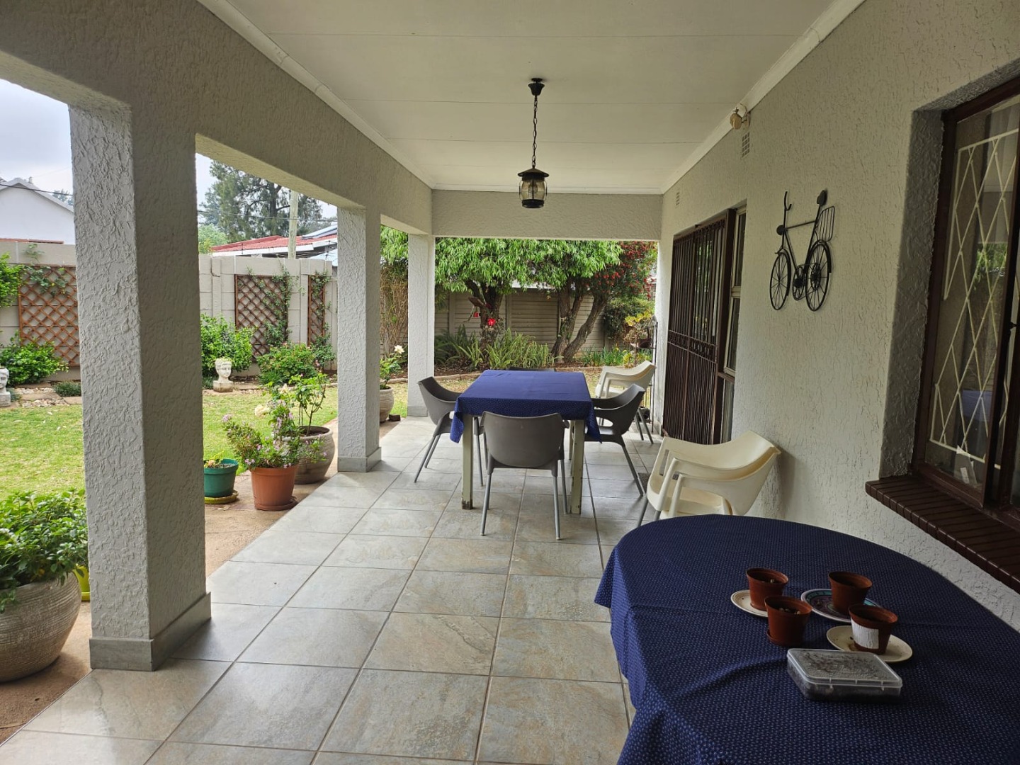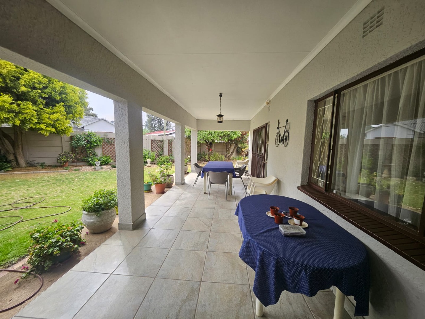- Spacious covered patio and established garden