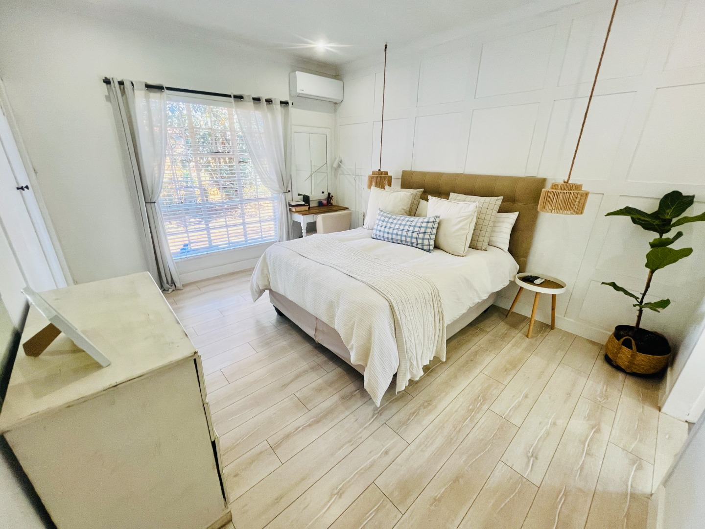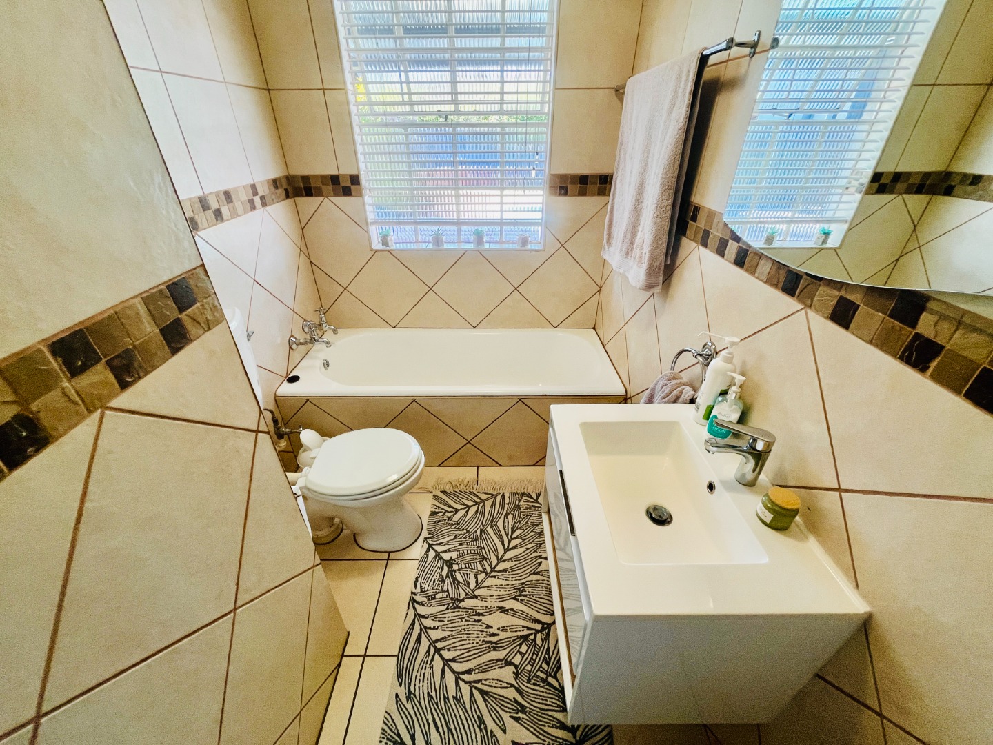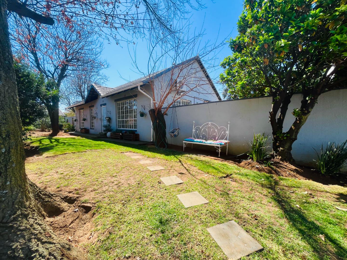 Located in the sought-after suburban area of Brackenhurst Alberton this charming single-story residence presents a welcoming curb appeal on a generous 987 sqm erf. The well-maintained exterior features a spacious garden with mature trees, a stepping stone path and an inviting outdoor seating area.