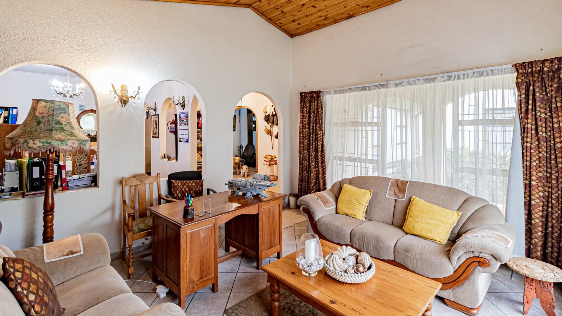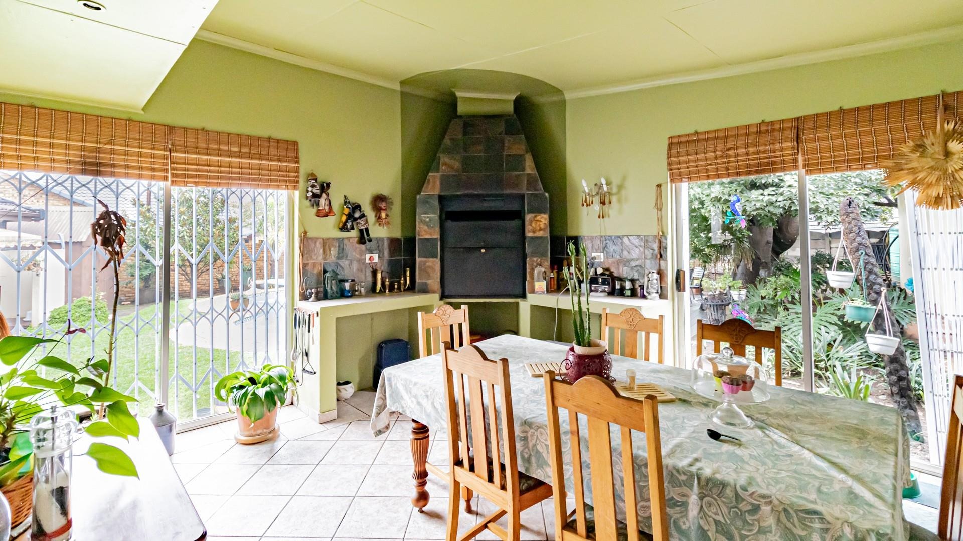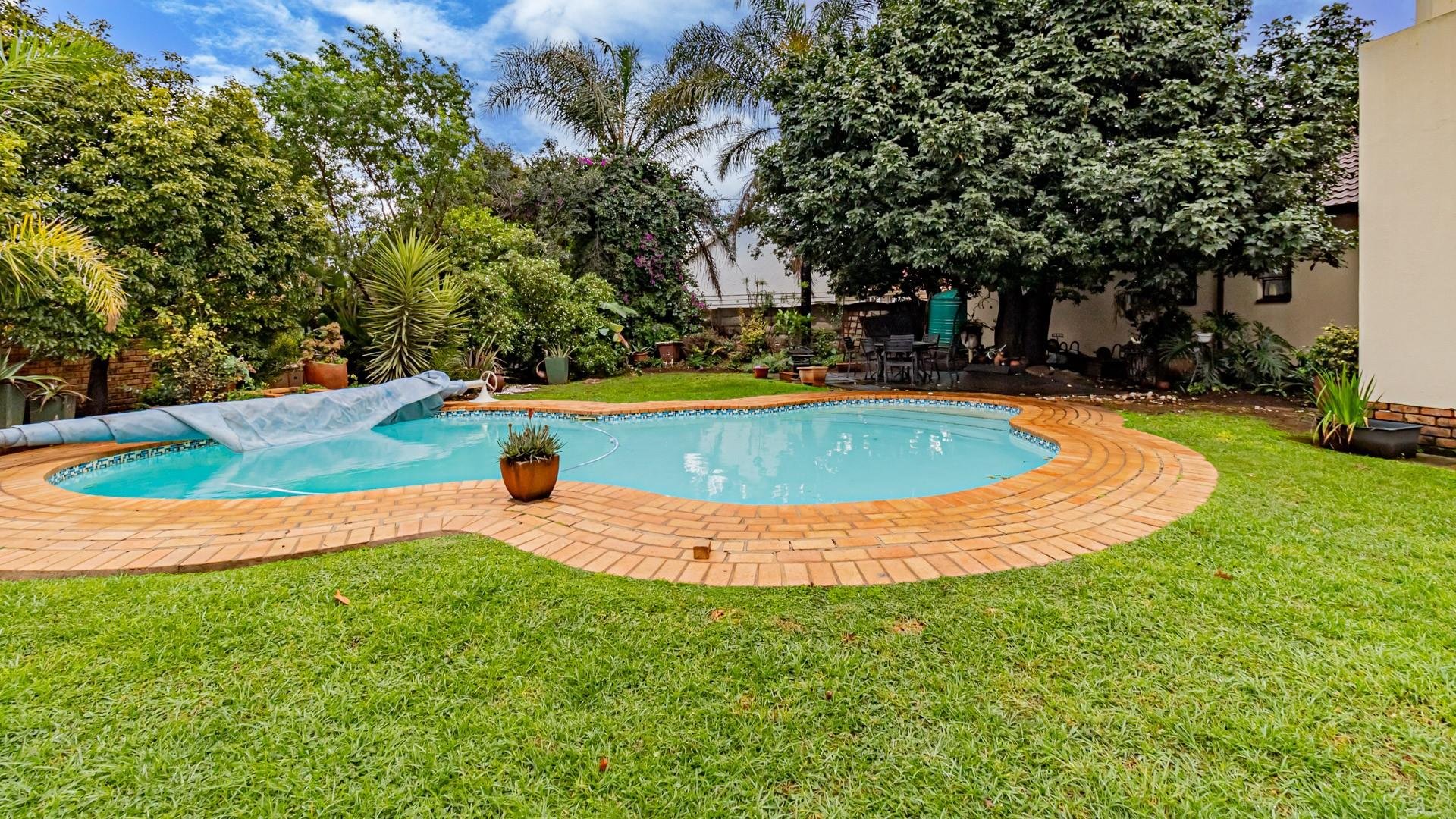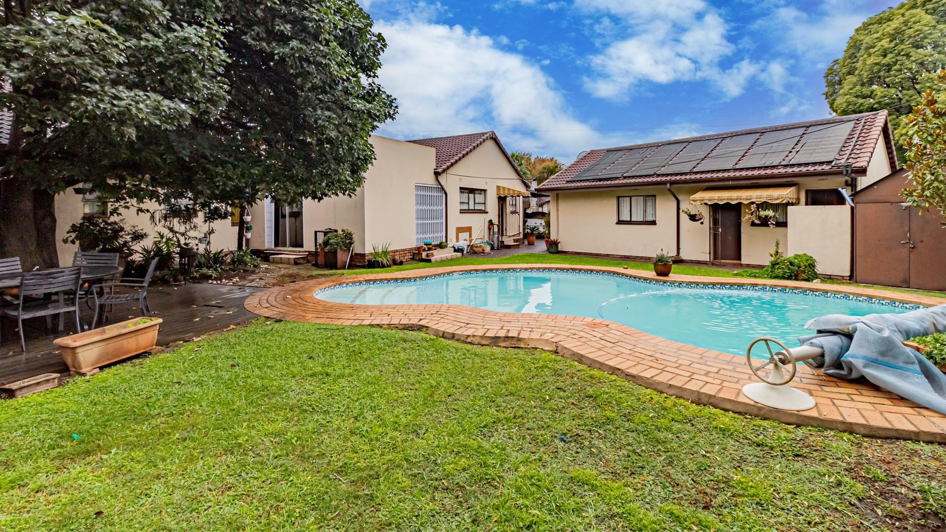 Beyond the main living spaces the home truly shines when it comes to entertaining. A large entertainment room boasts a built in braai and a fully fitted bar creating the ultimate indoor entertainment zone. This room opens onto a well maintained garden and a sparkling solar heated swimming pool offering the perfect setting for summer gatherings, braais or relaxed weekends at home.