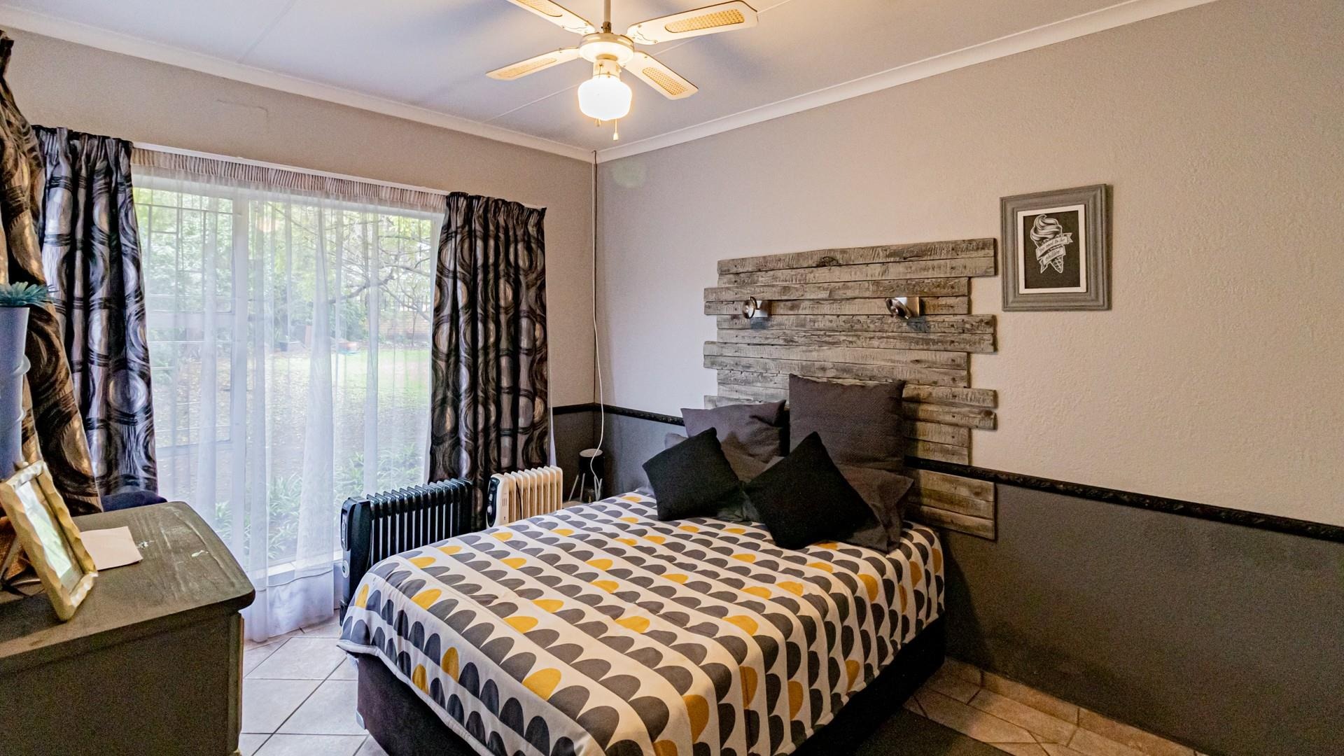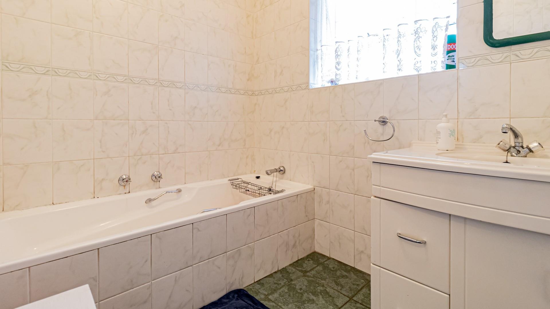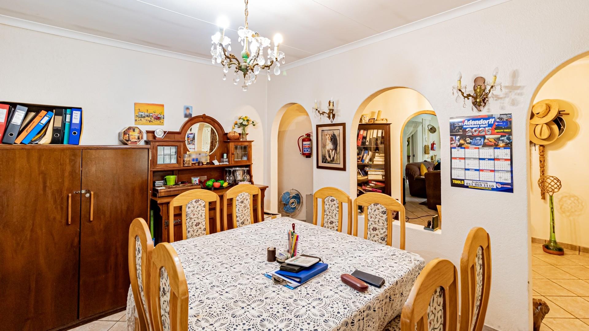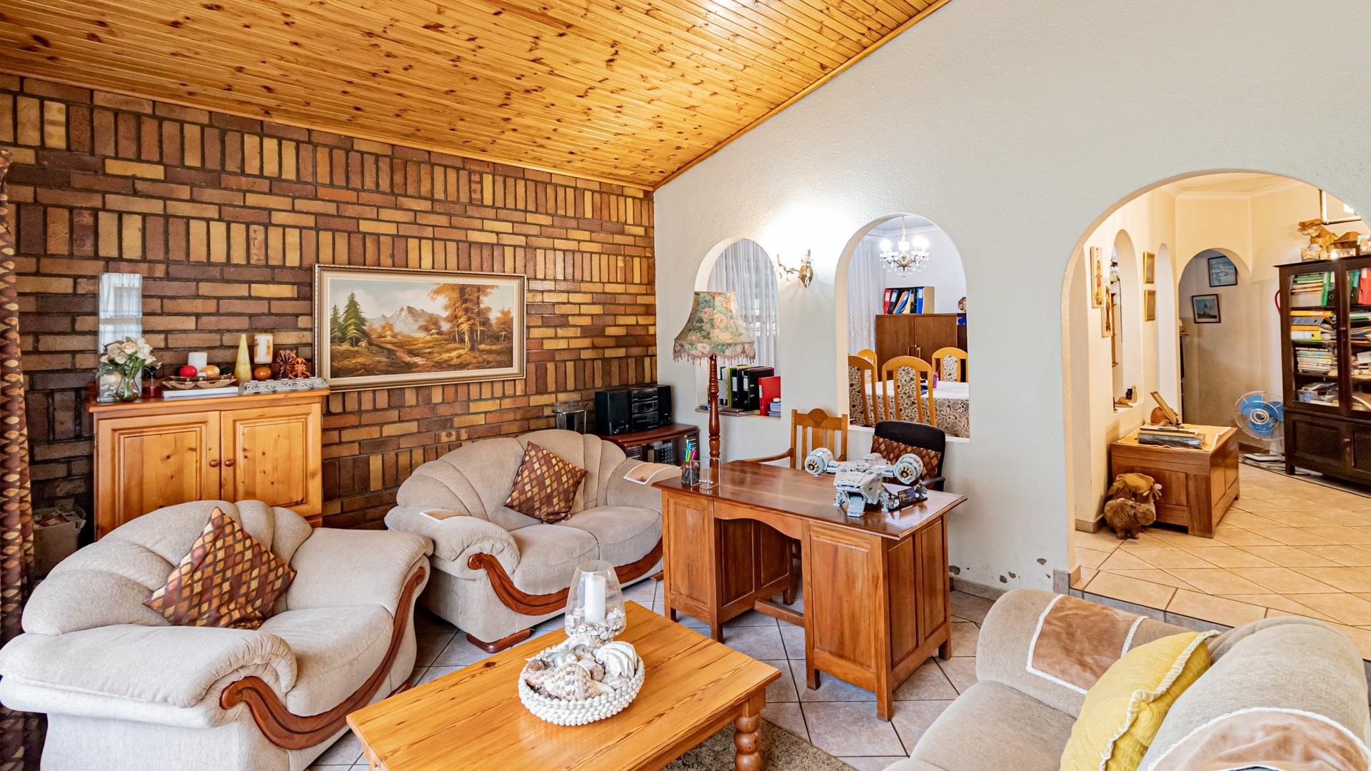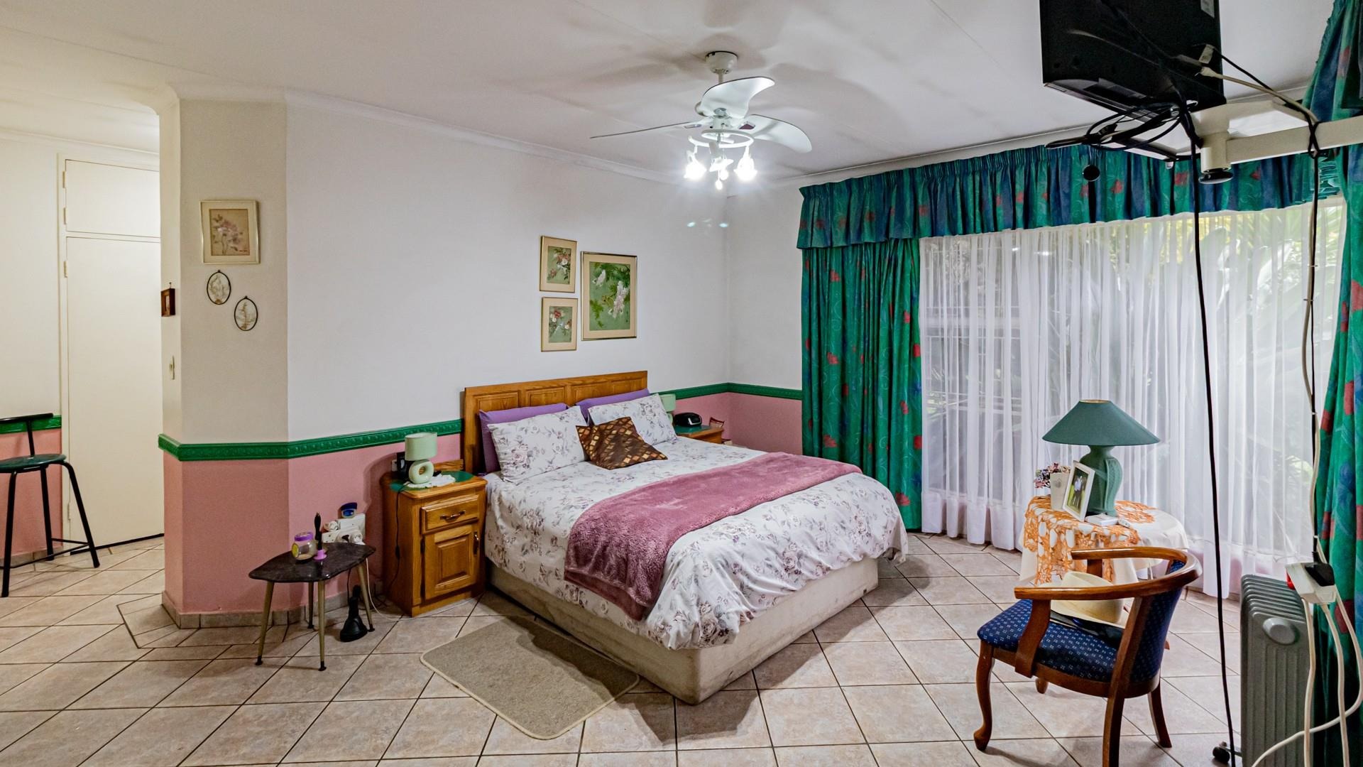 Beyond the main living spaces the home truly shines when it comes to entertaining. A large entertainment room boasts a built in braai and a fully fitted bar creating the ultimate indoor entertainment zone. This room opens onto a well maintained garden and a sparkling solar heated swimming pool offering the perfect setting for summer gatherings, braais or relaxed weekends at home.
