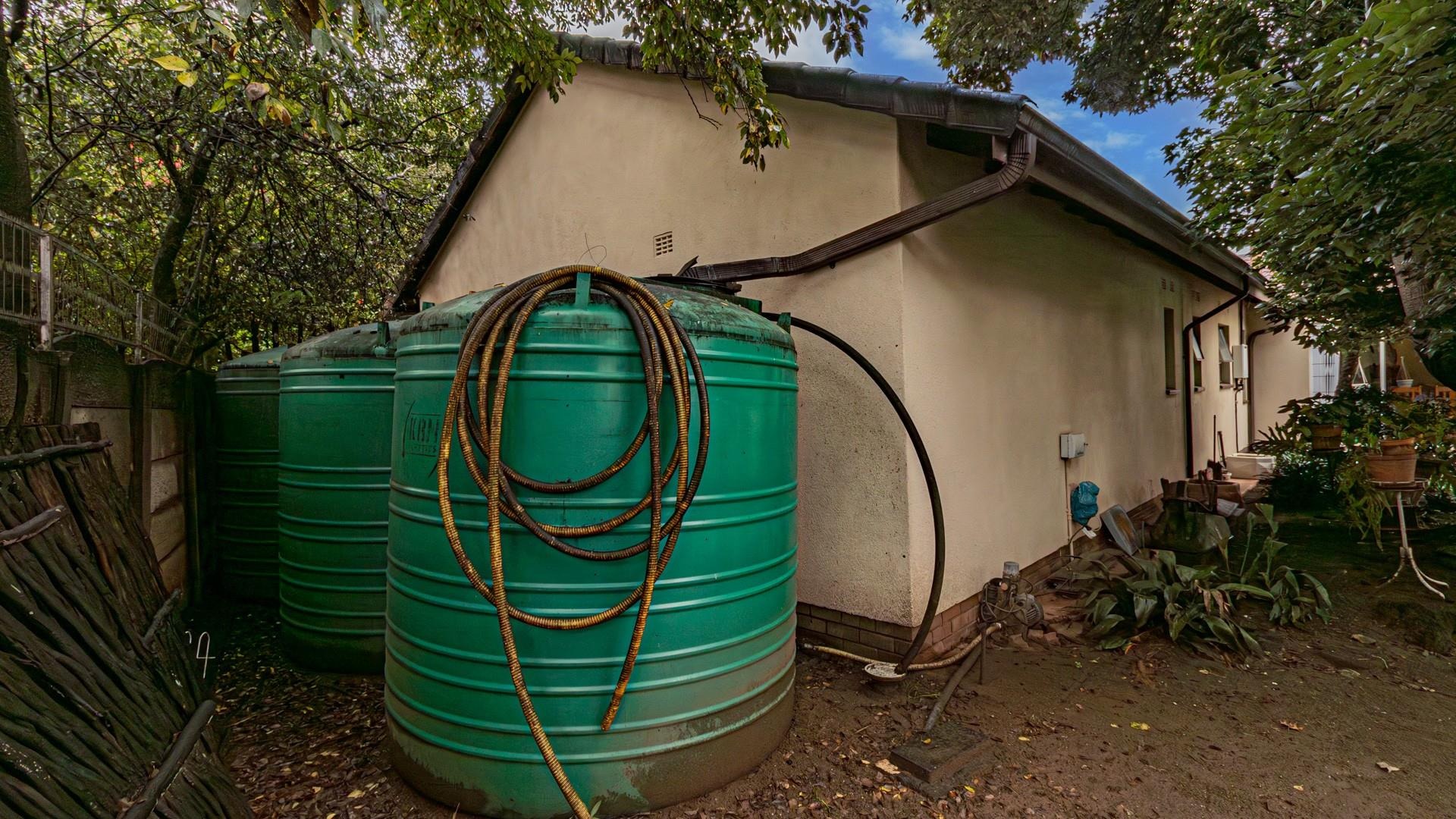 The garden is supported by an efficient rainwater harvesting system which includes three 5000 litre JoJo tanks, a pump and nine water stations placed throughout the yard. This eco-conscious feature ensures the garden stays lush year round while conserving municipal water.