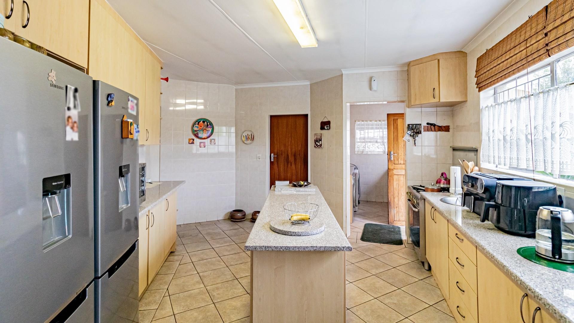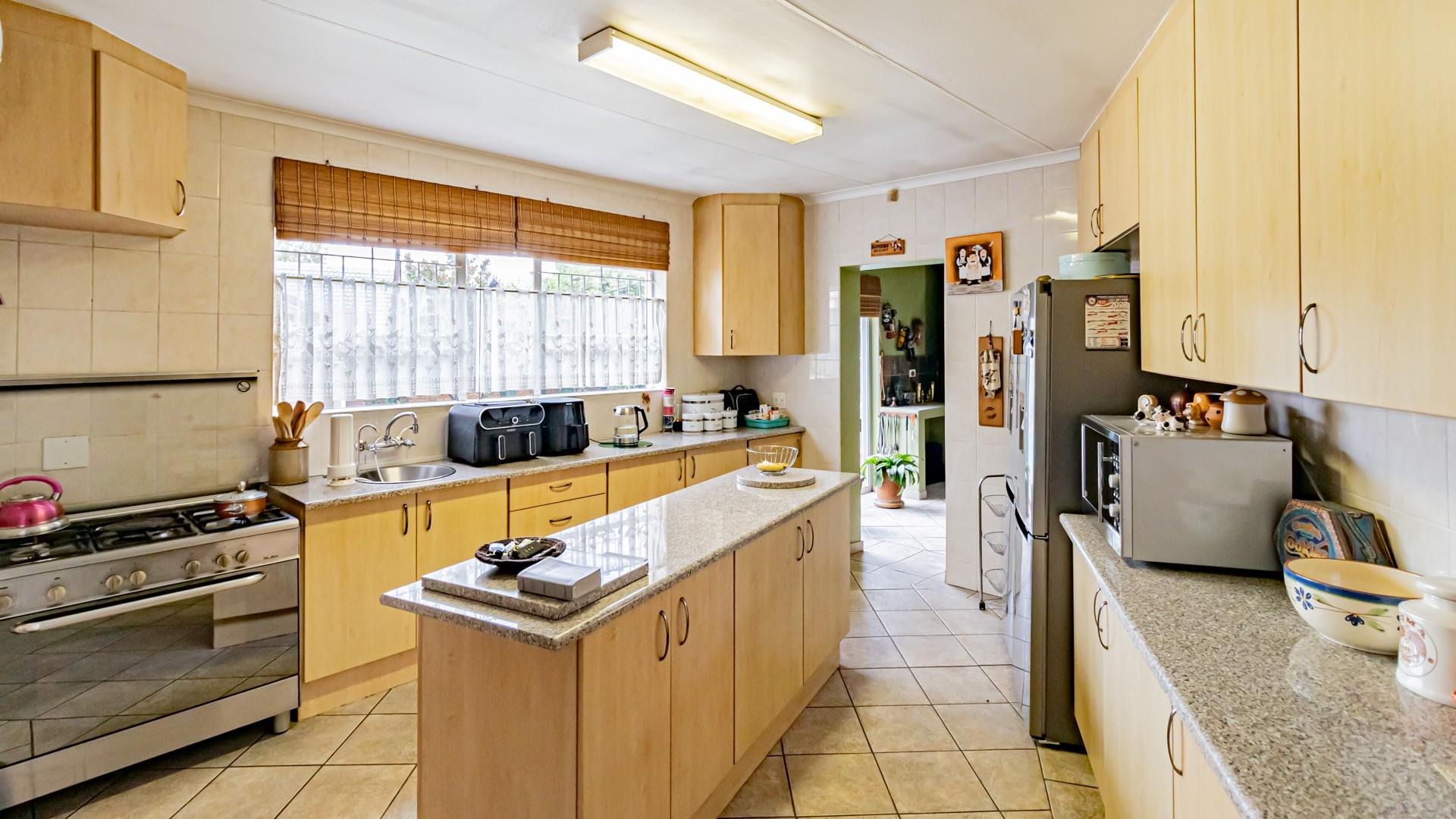 This spacious home features three generously sized bedrooms and two full bathrooms offering ample space for both family living and visiting guests. Each bedroom is well appointed with natural light and built-in wardrobes while the bathrooms are beautifully finished offering both style and practicality. At the heart of the home lies a dream kitchen. It features elegant Caeser stone countertops, a center island perfect for meal preparation or casual dining and a four plate gas stove for efficient cooking. The kitchen also includes a separate scullery with space for all major appliances and a walk in pantry that will delight any culinary enthusiast with its storage capacity and convenience.