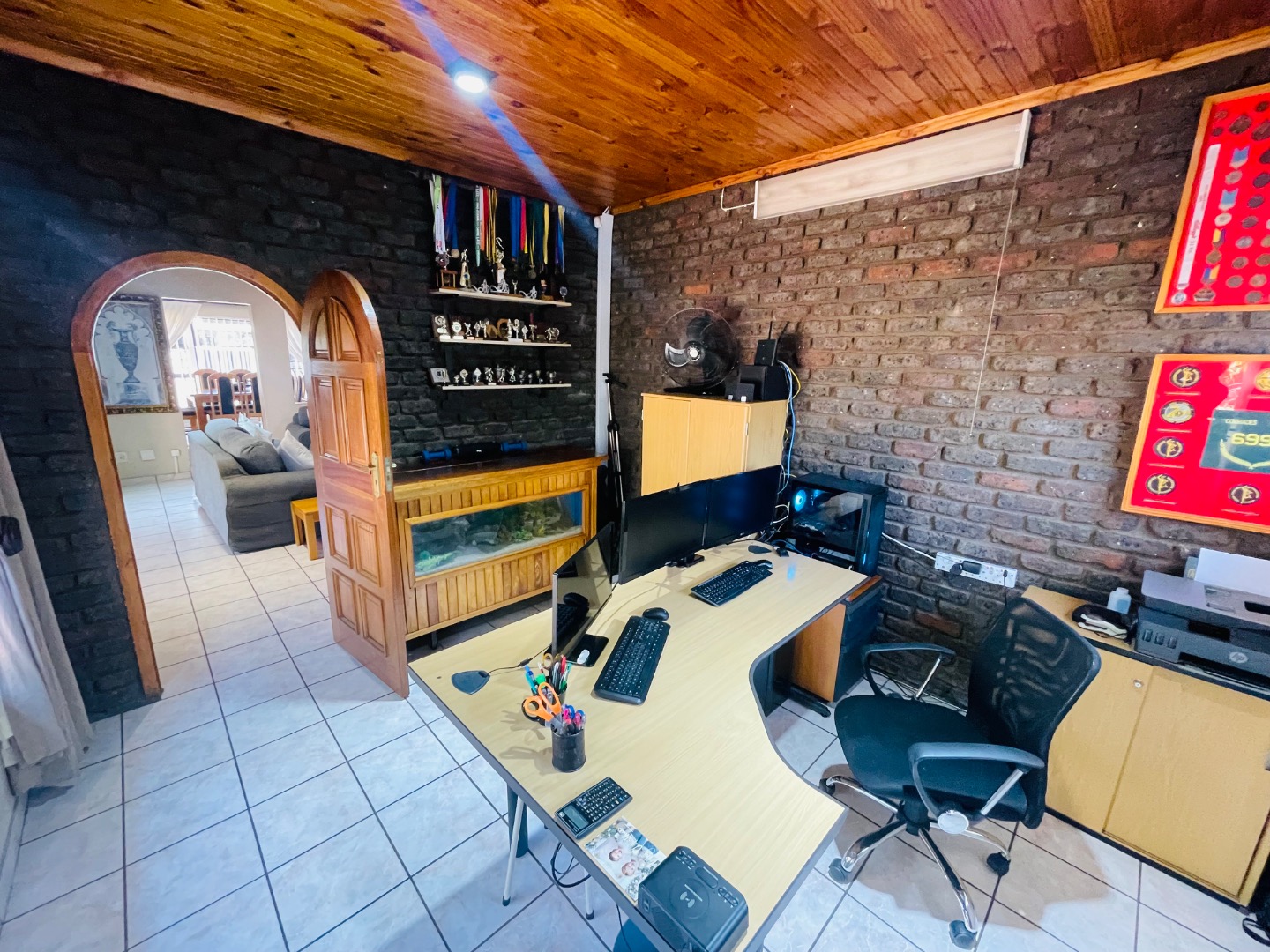 Extras include an 8kVA solar system, double garage, carports, automated gates, and excellent security with alarm, CCTV, beams, and electric fencing. Conveniently close to schools, shops, and main routes, this home offers modern living and peace of mind.