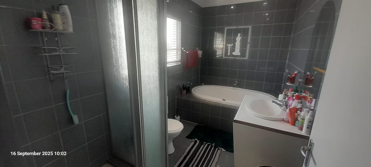 Step inside to a spacious and sunny open plan lounge and dining room area perfect for entertaining or relaxing with family. The contemporary kitchen boasts ample cupboard space and an electric stove making meal preparation a joy. Sliding doors from the lounge lead to a delightful garden area allowing plenty of fresh air and natural light to fill the home. For your convenience a guest toilet is located on the ground floor. Venture upstairs to find three generously sized bedrooms each equipped with built-in wardrobes. The home features two beautifully appointed bathrooms, a bathroom to accommodate family needs and a main on suite offering a bath, toilet, basin and shower for added privacy.