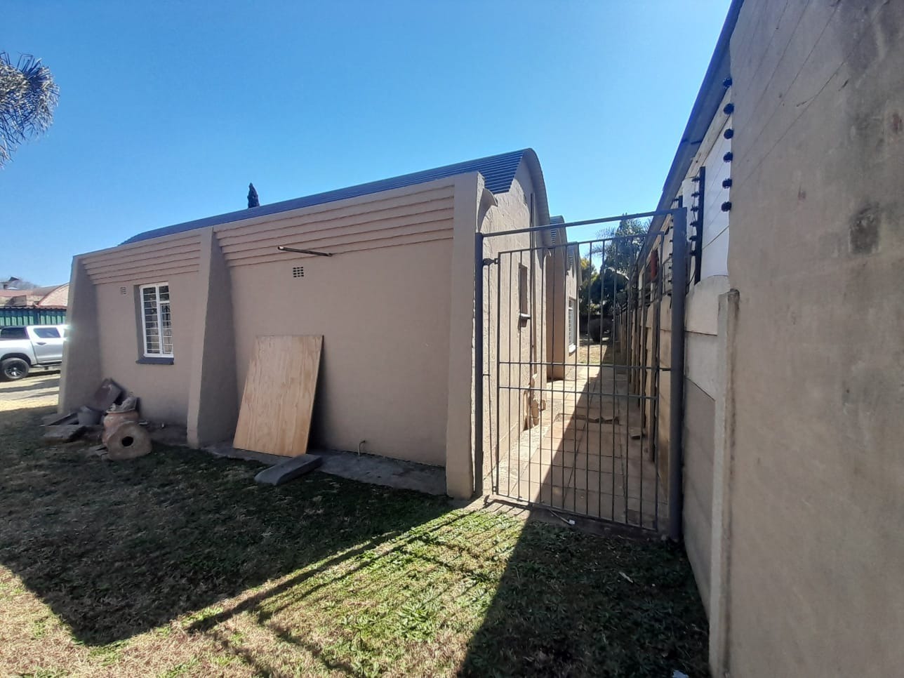Discover this inviting residence in Mayberry Park Alberton offering character and potential. The property boasts curb appeal with a paved driveway and a large front yard ideal for landscaping. Mature palm trees enhance the exterior while security bars on windows and a totally walled perimeter ensure peace of mind.