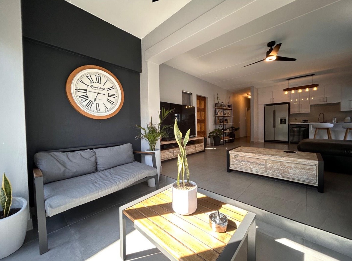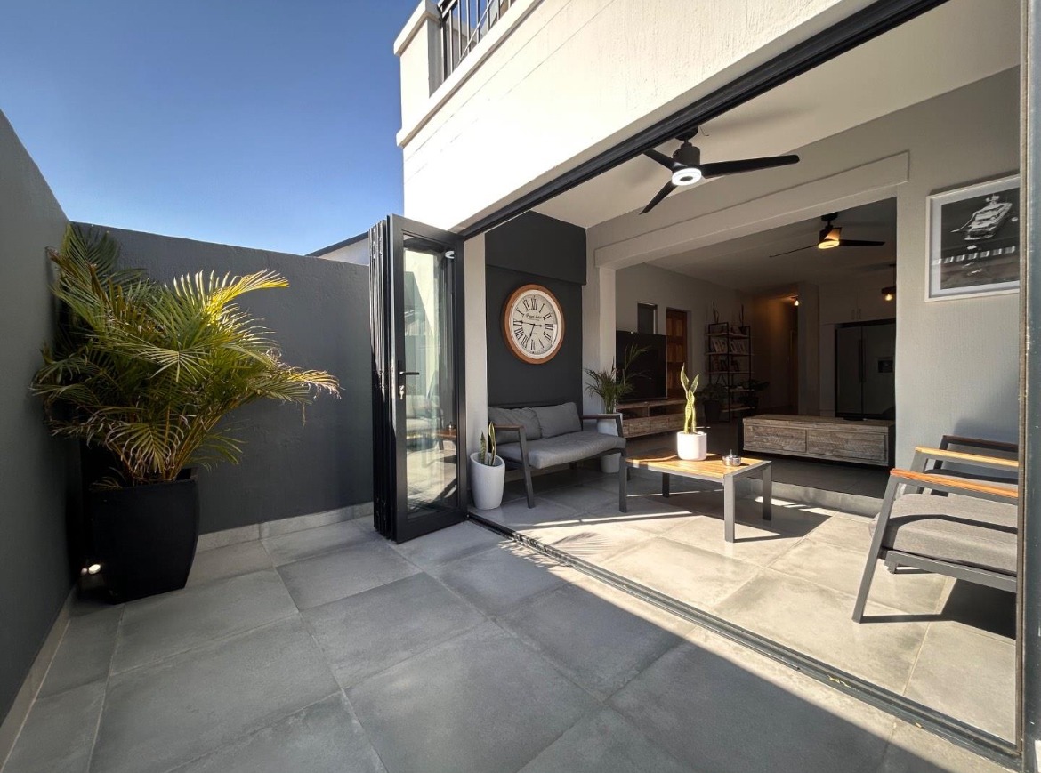 The open-plan layout invites you into a sophisticated living space where the kitchen, dining, and lounge areas flow effortlessly. The modern kitchen is fitted with granite countertops, a gas stove, ample cupboards, and a breakfast nook, making it as practical as it is stylish. Stacker doors open onto an enclosed patio, creating the perfect space for year-round entertaining.