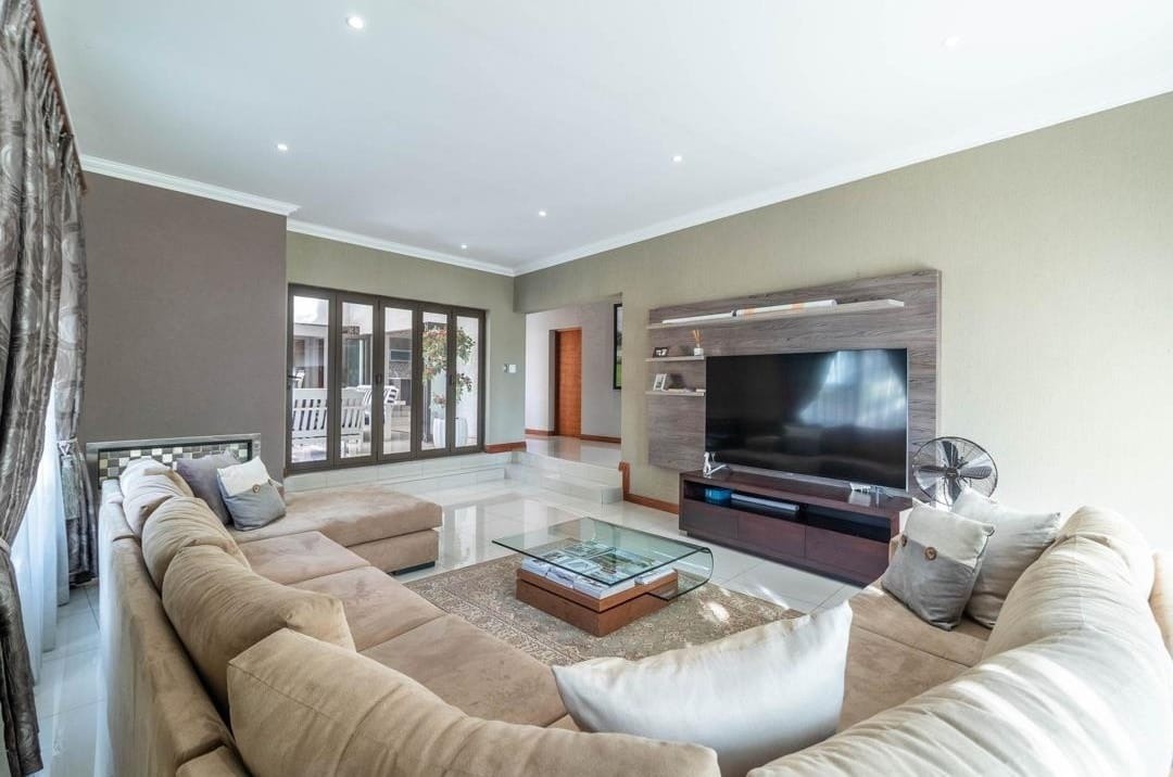 Beyond the interiors the property offers substantial practical amenities including four secure garages providing ample accommodation for cars and additional storage. The vast erf size presents a blank canvas for bespoke landscaping allowing for the creation of a private outdoor oasis tailored to individual desires all within the secure confines of the estate.