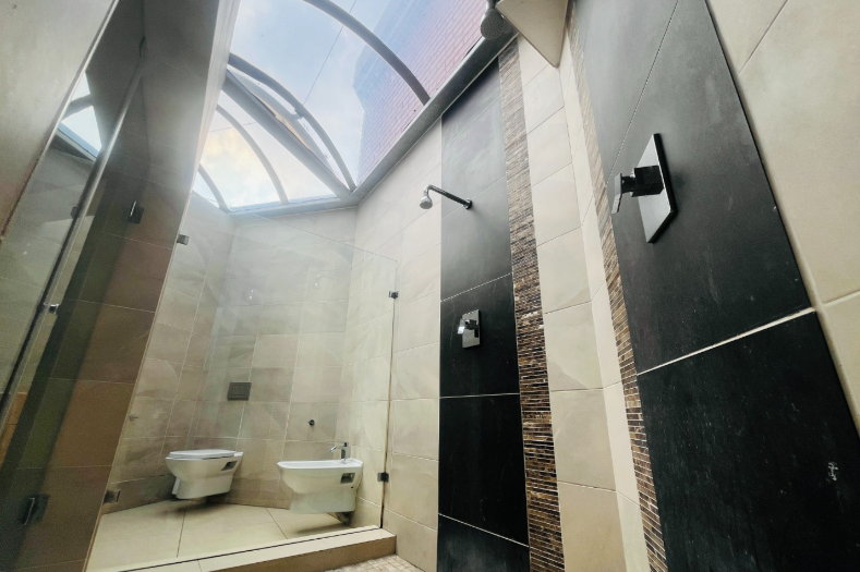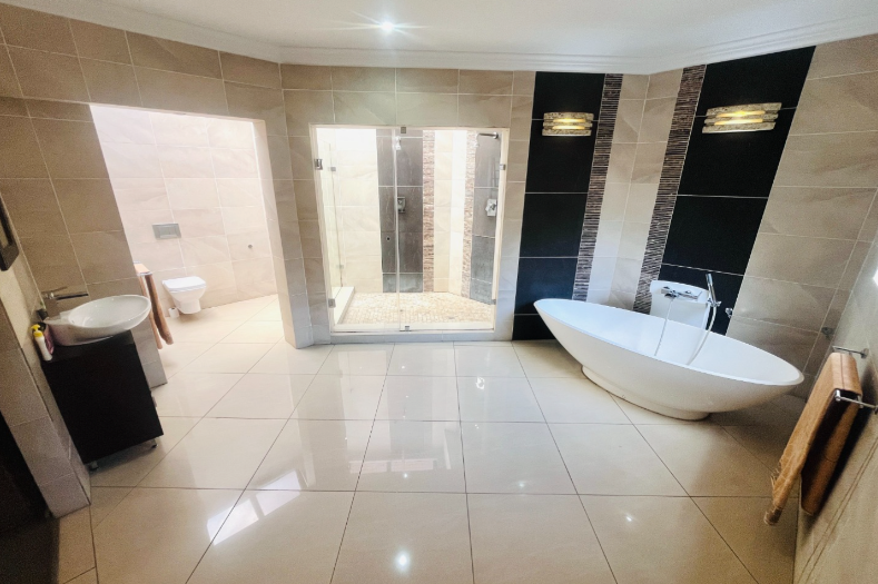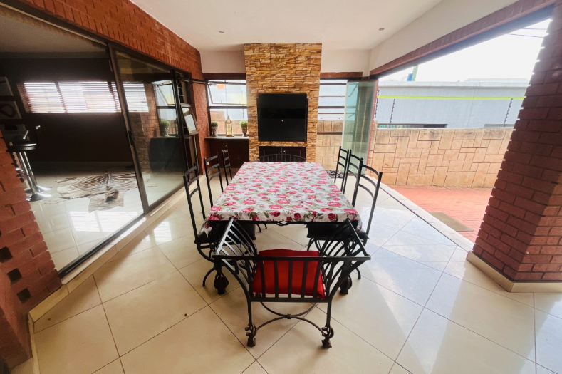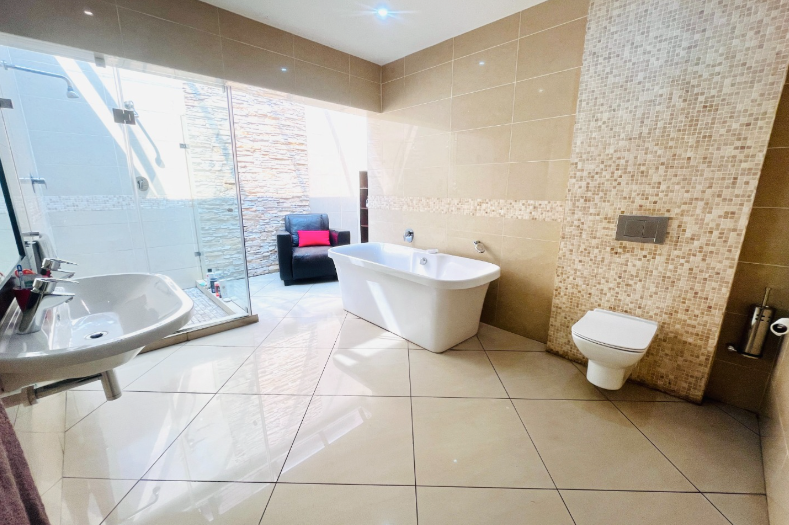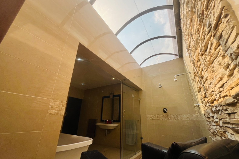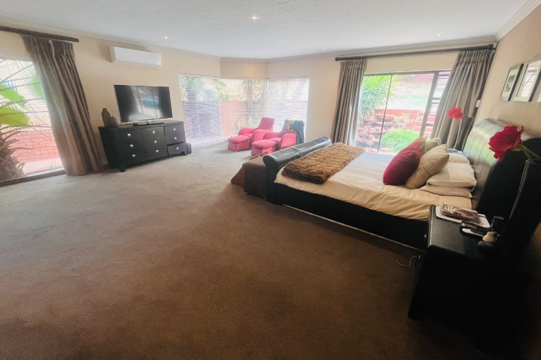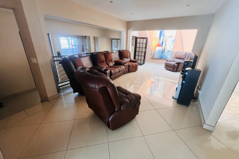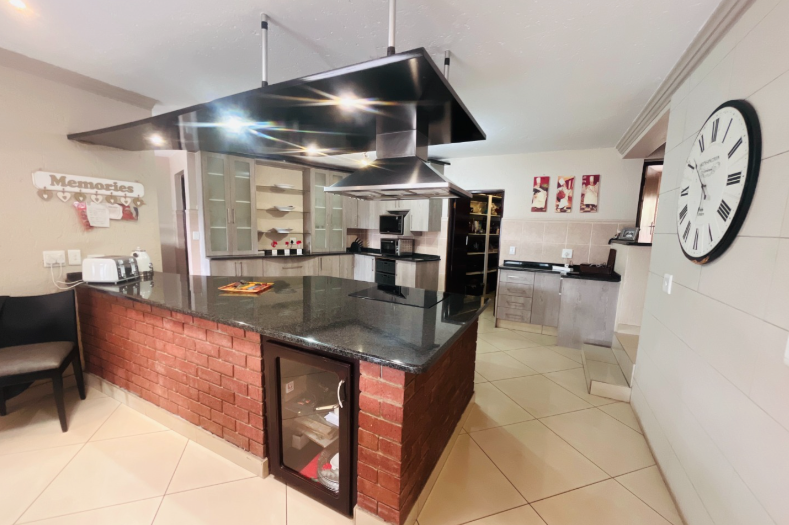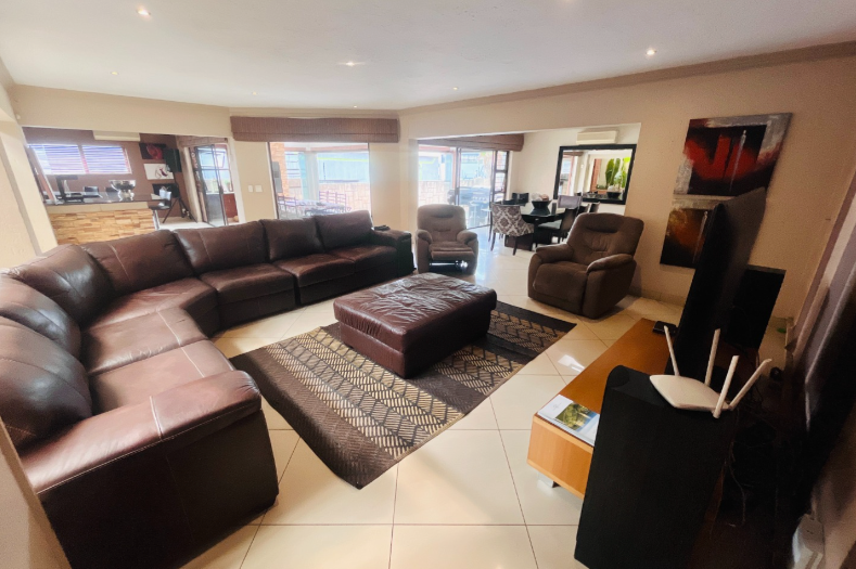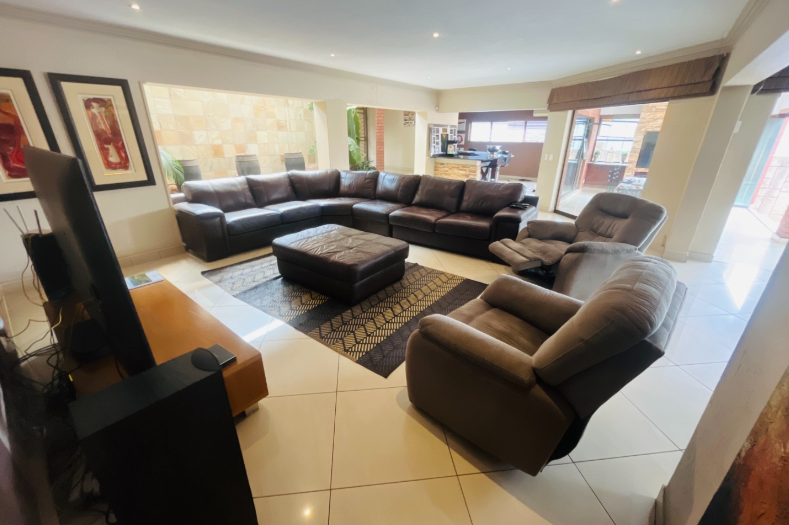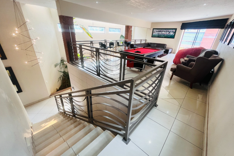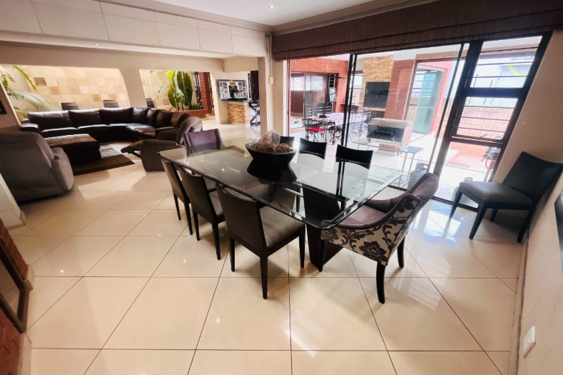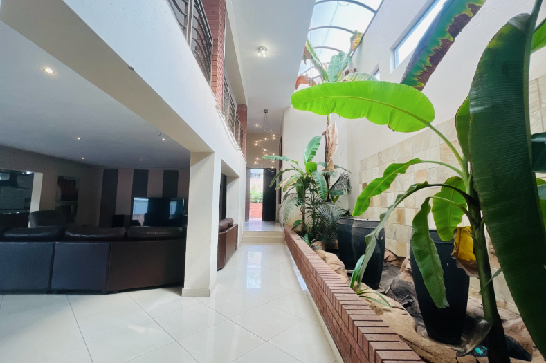 Set within a secure, boomed-off cul-de-sac in one of Alberton’s most sought-after pockets, this remarkable home commands attention from the moment you arrive. The entrance hall opens into a light-filled double-volume space with skylights and an indoor garden feature that immediately sets the tone — warm, sophisticated, and architecturally unique.
