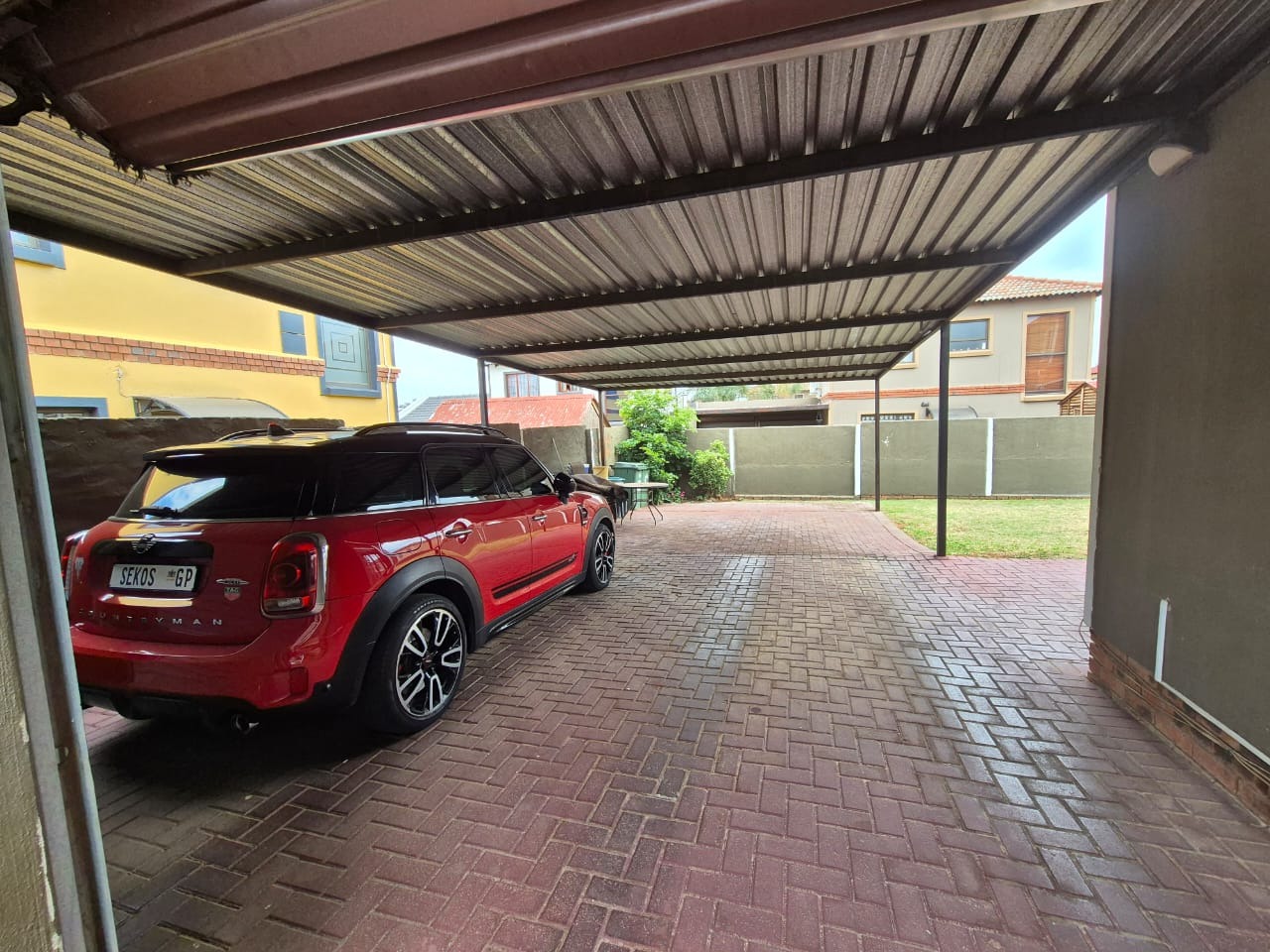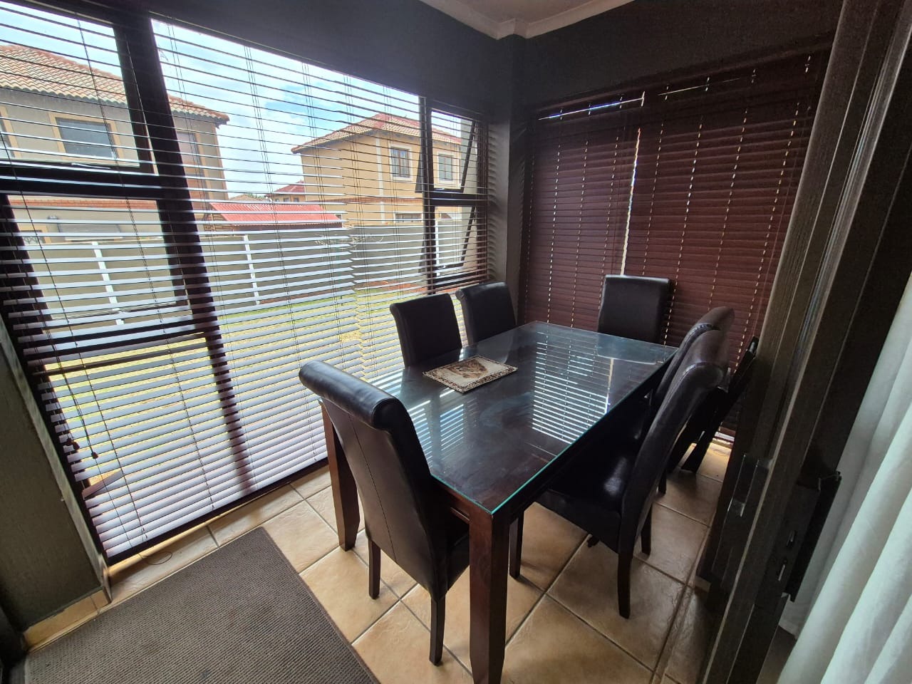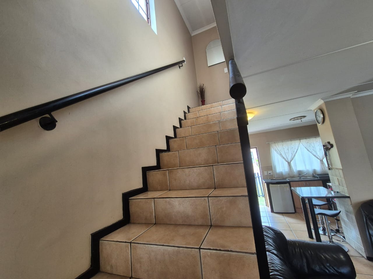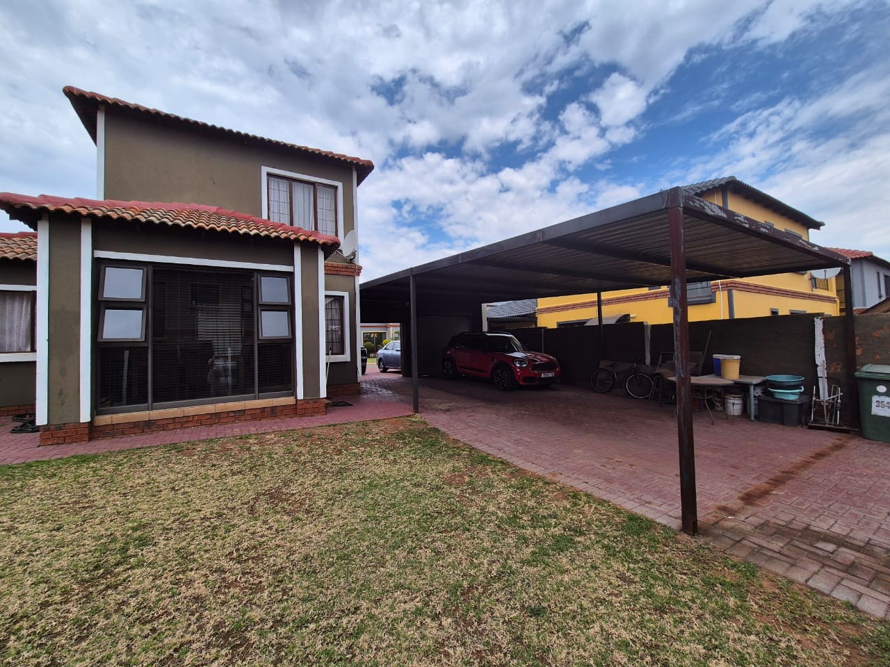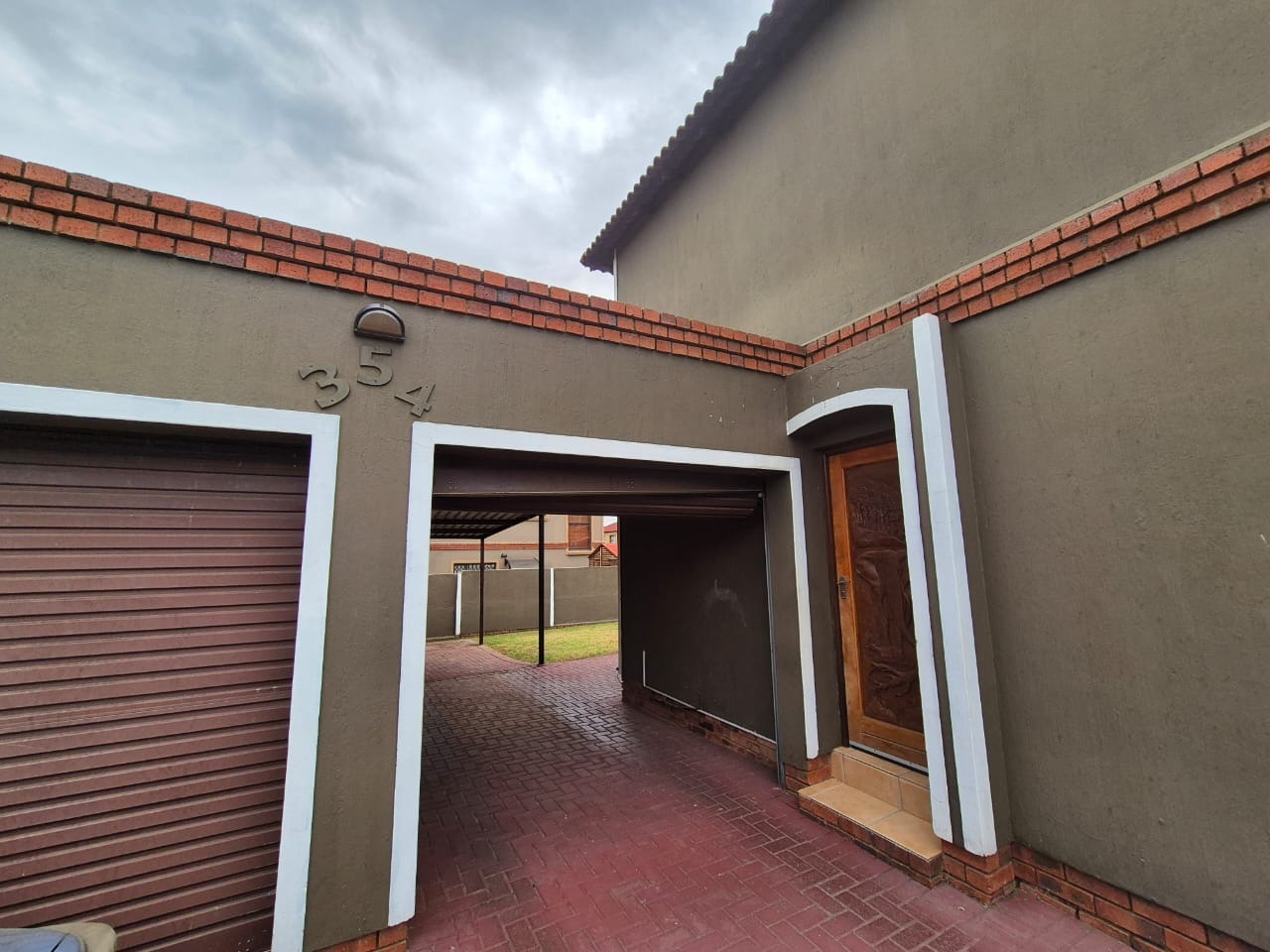 Discover this charming two-story residence nestled within the secure Meyersig lifestyle Estate in Alberton. Boasting a distinctive red tiled roof and a brown exterior with white trim, this property offers immediate kerb appeal. Paved pathways ensure easy access around the home, complemented by a Hollywood-style automated double garage for extra parking.