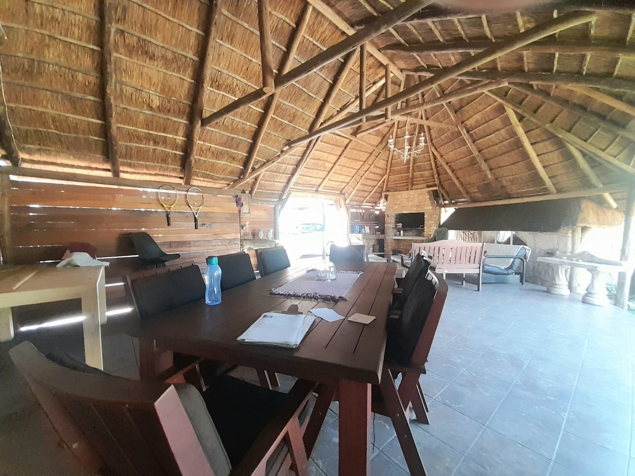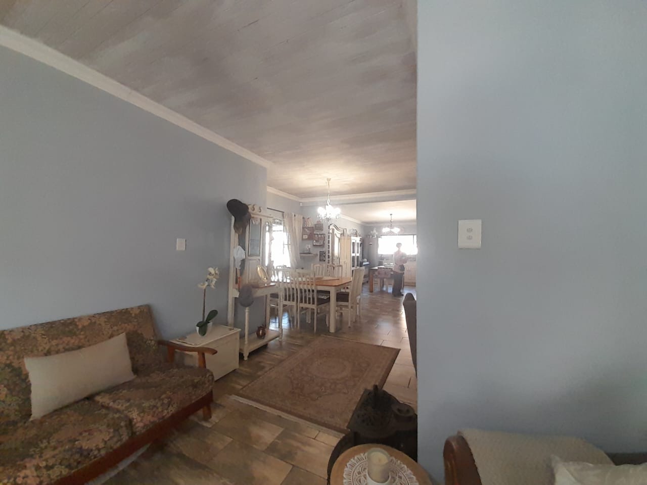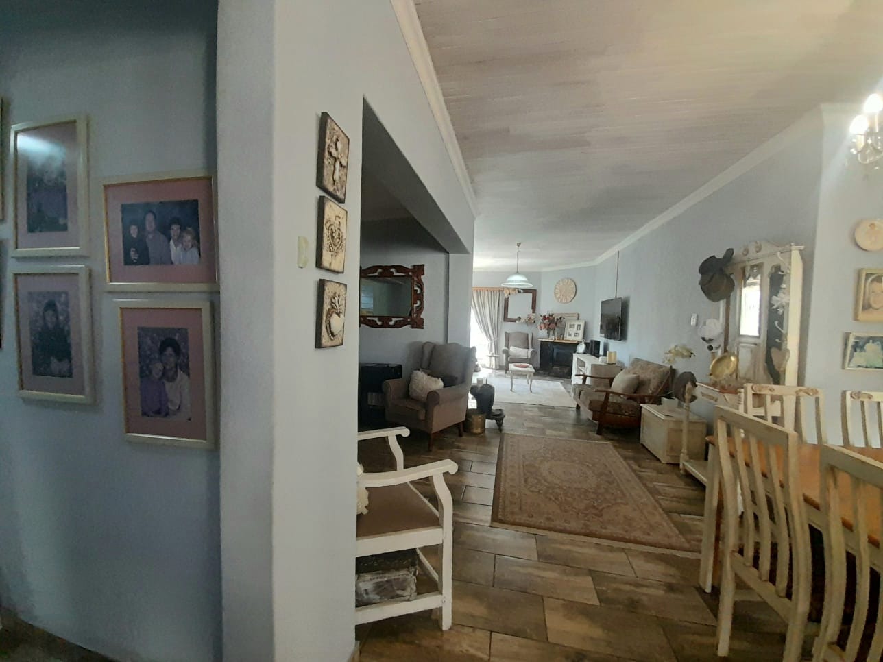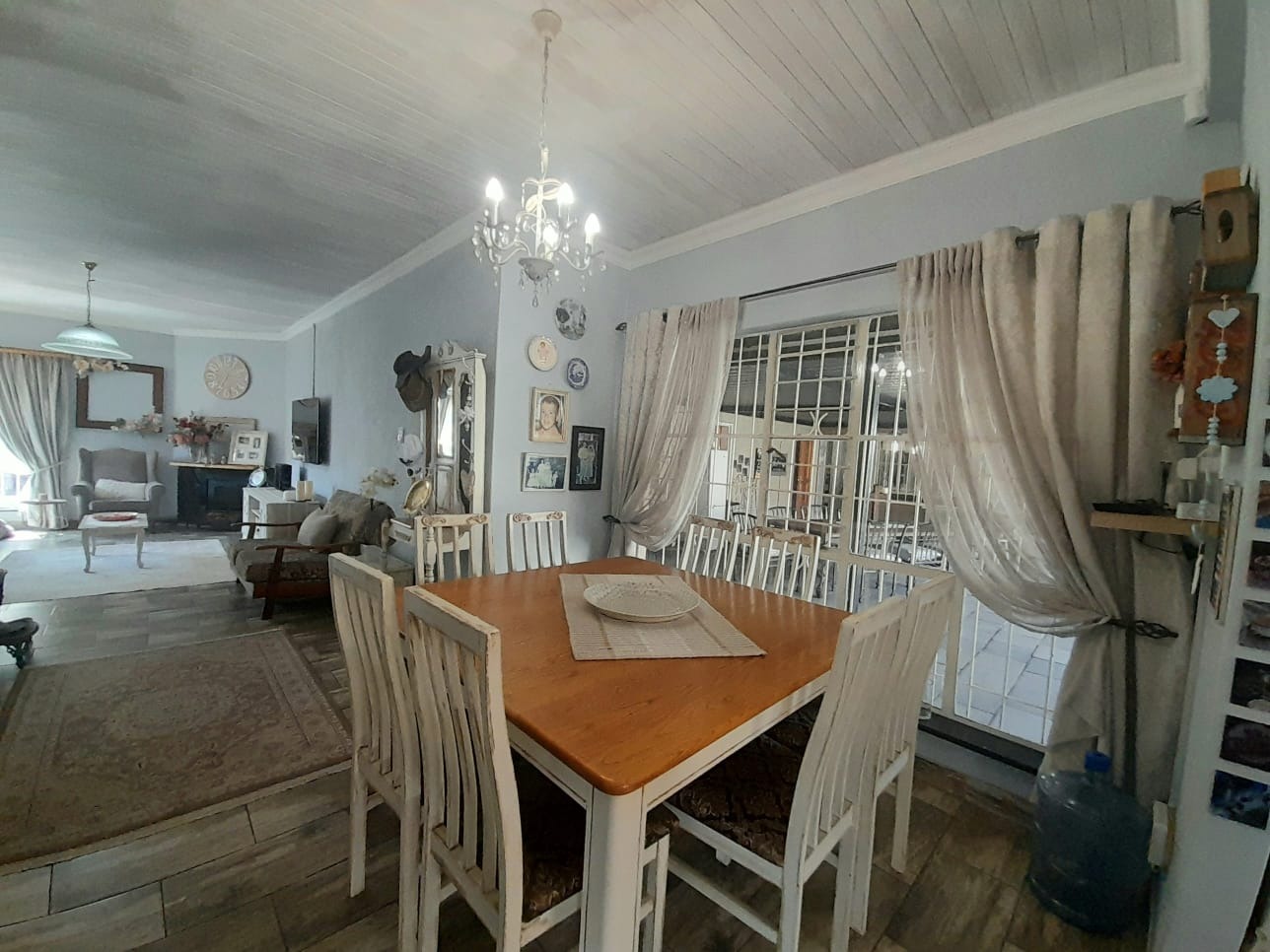 The main residence boasts a beautifully appointed antique-style kitchen, complete with a gas stove, and flows seamlessly into the open-plan dining area and lounge, where a cozy fireplace awaits chilly evenings. Laminated flooring throughout the living areas adds a touch of sophistication, while spacious passages lead to 3 spacious bedrooms with built-in cupboards. 2 modern bathrooms 1 being an en-suite.