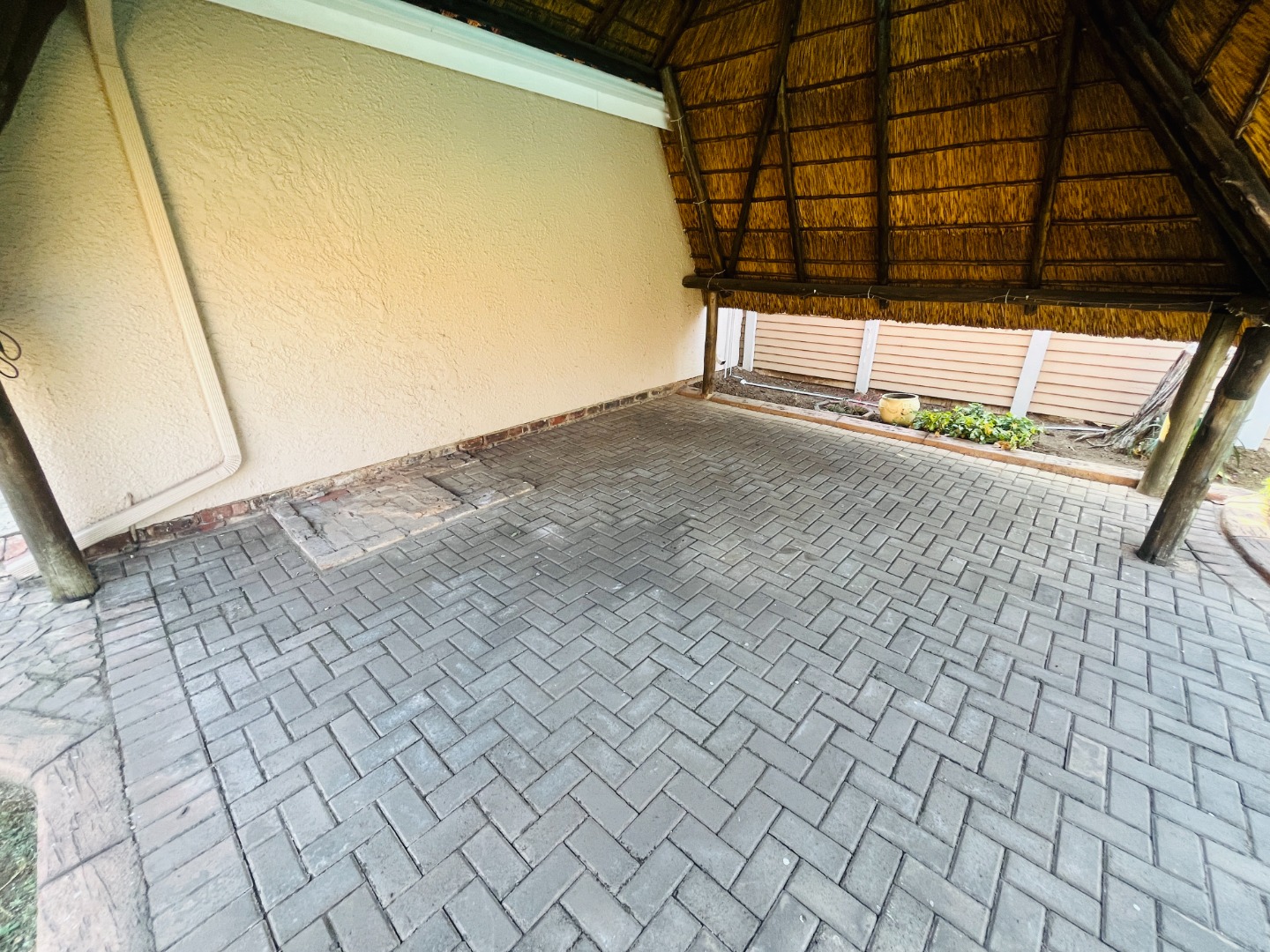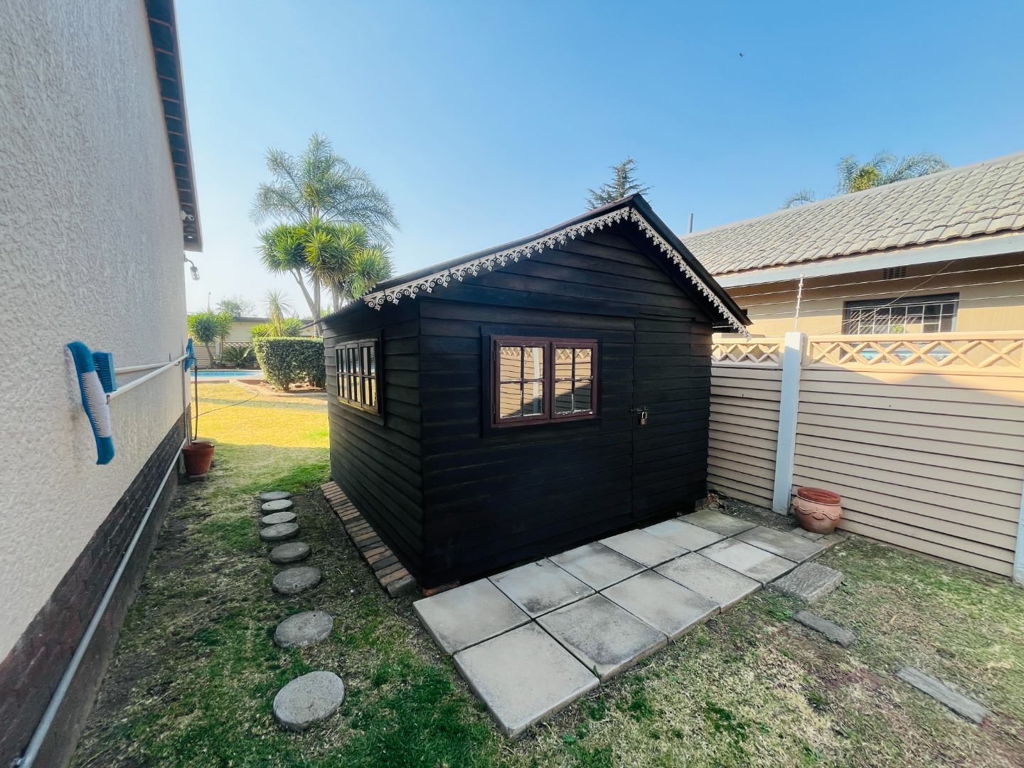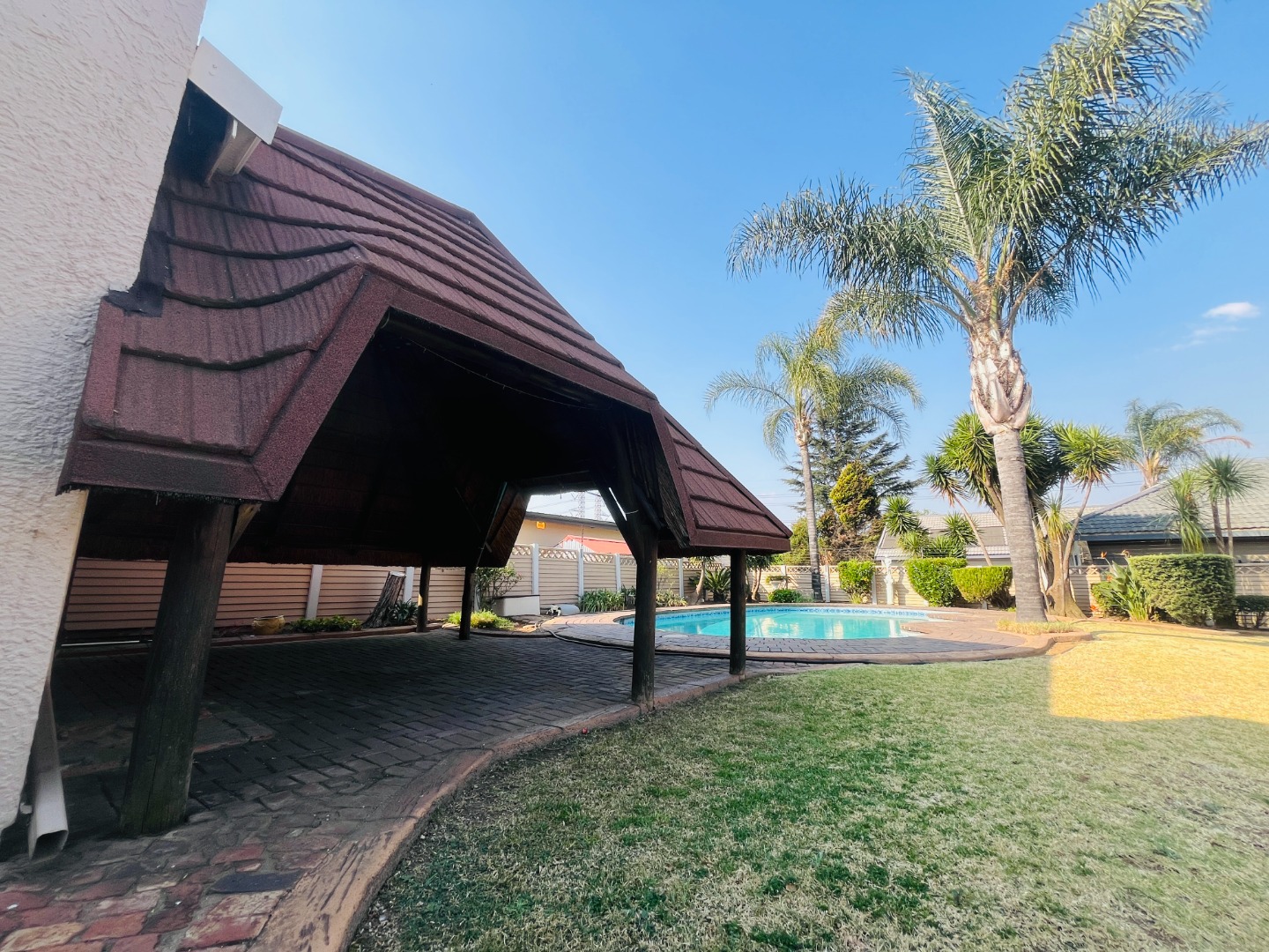 This home boasts four spacious bedrooms all fitted with built-in wardrobes and two bathrooms including a main onsuite that opens directly onto the sparkling swimming pool. Imagine falling asleep to the tranquil sound of water just steps away from your bed. The lush manicured garden creates a peaceful oasis while the lapa and entertainment area overlooking the pool provides the perfect setting for weekend braais and relaxed get-togethers with friends and family.