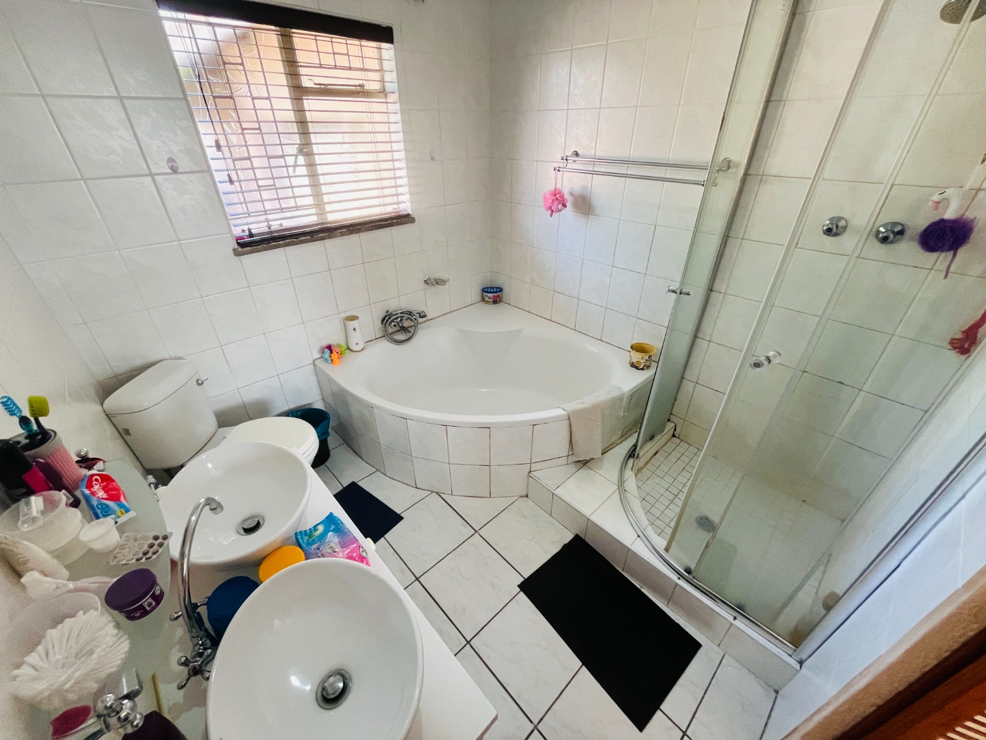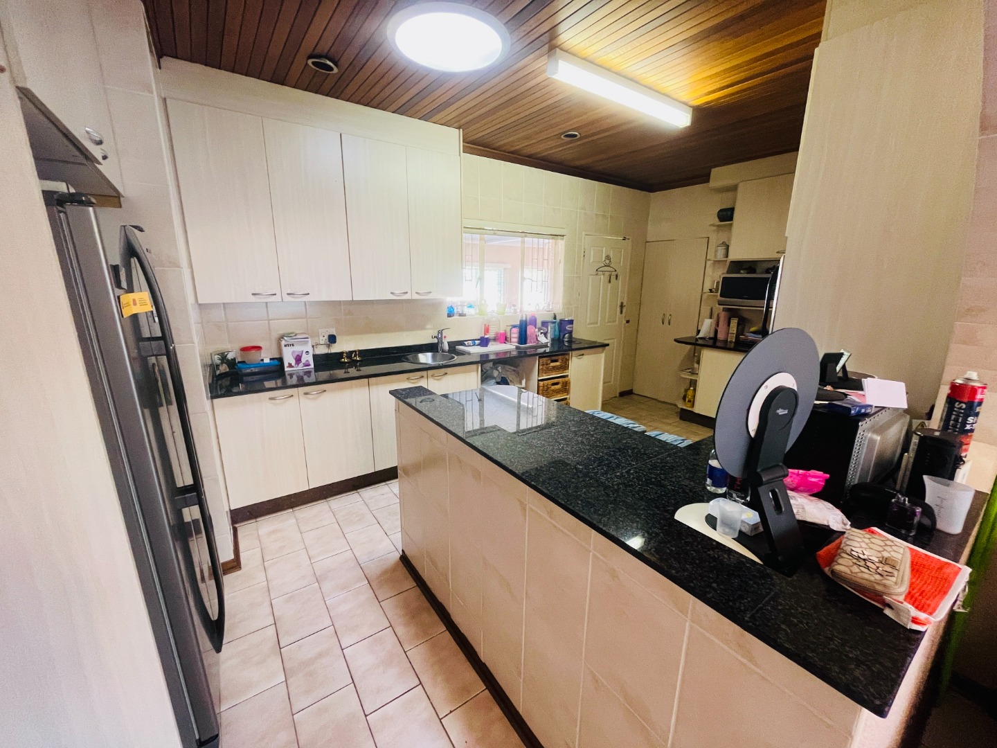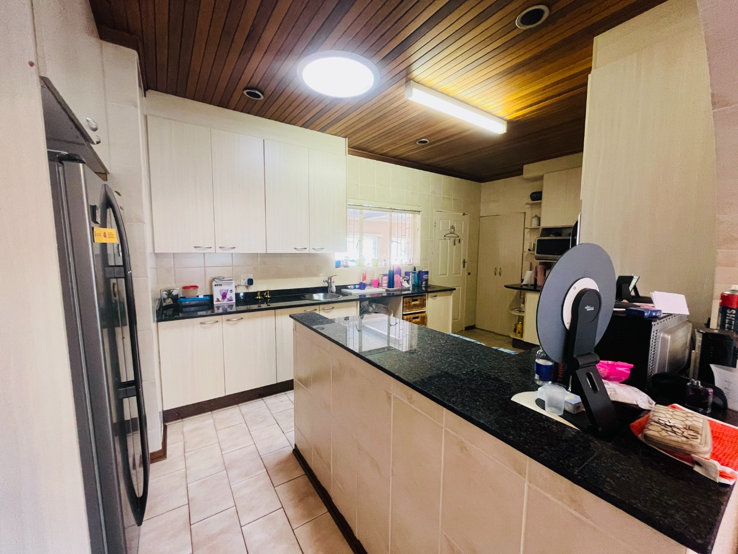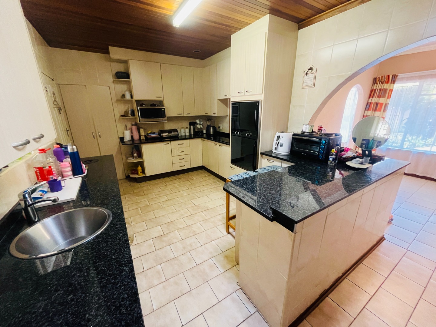 This home boasts four spacious bedrooms all fitted with built-in wardrobes and two bathrooms including a main onsuite that opens directly onto the sparkling swimming pool. Imagine falling asleep to the tranquil sound of water just steps away from your bed. The lush manicured garden creates a peaceful oasis while the lapa and entertainment area overlooking the pool provides the perfect setting for weekend braais and relaxed get-togethers with friends and family.