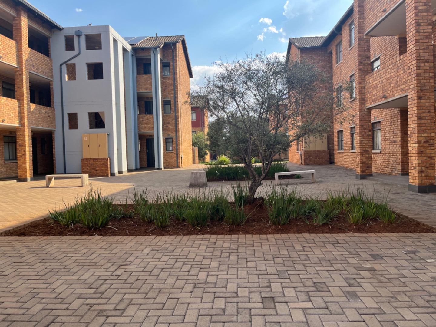 As part of a well-maintained complex, residents benefit from a dedicated parking space. Security is a priority, with the complex featuring electric fencing and individual windows fitted with security bars, offering peace of mind. The property presents a welcoming kerb appeal, marked by the professional entrance signage for 'The Bronx @ Sky City' and a well-maintained, landscaped entrance area with paved road access.