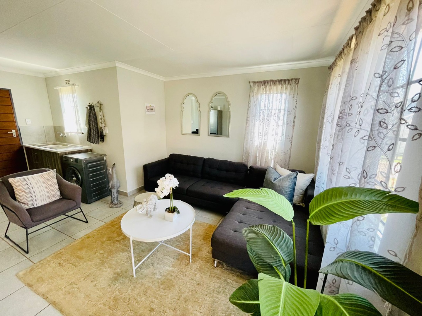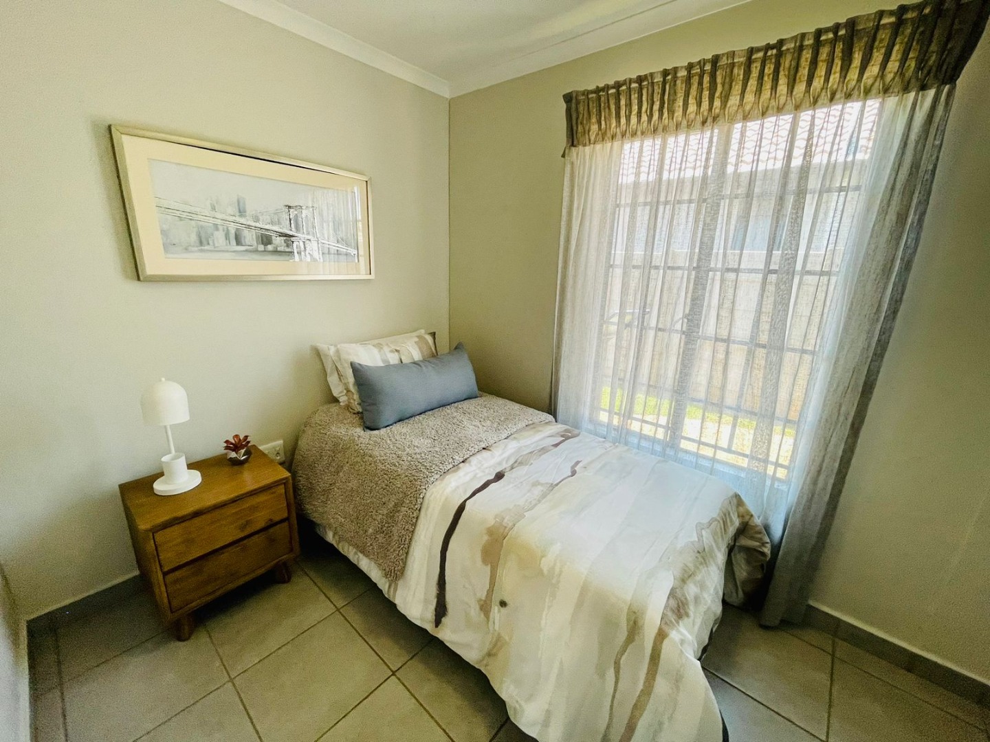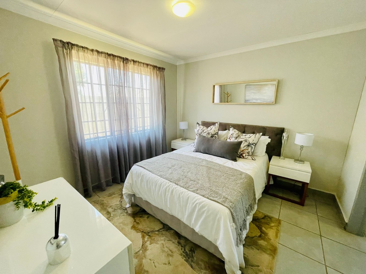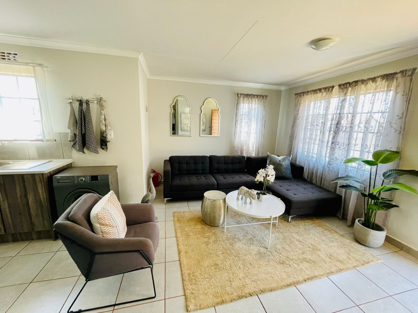 Large windows and smart design allow for abundant natural light to fill the interior creating a bright and airy atmosphere throughout the day. Outside a low-maintenance garden and paved areas offer space to relax or entertain with minimal upkeep required. A dedicated parking space provides added convenience while enhanced security features such as burglar bars and an access gate offer peace of mind.