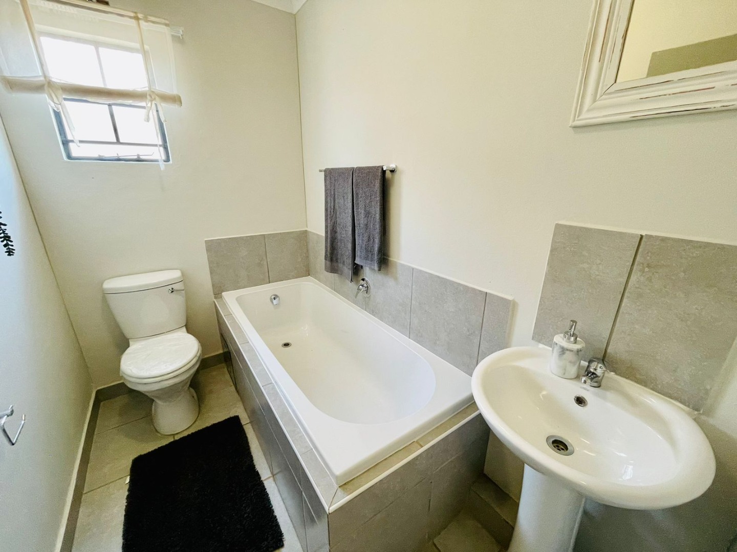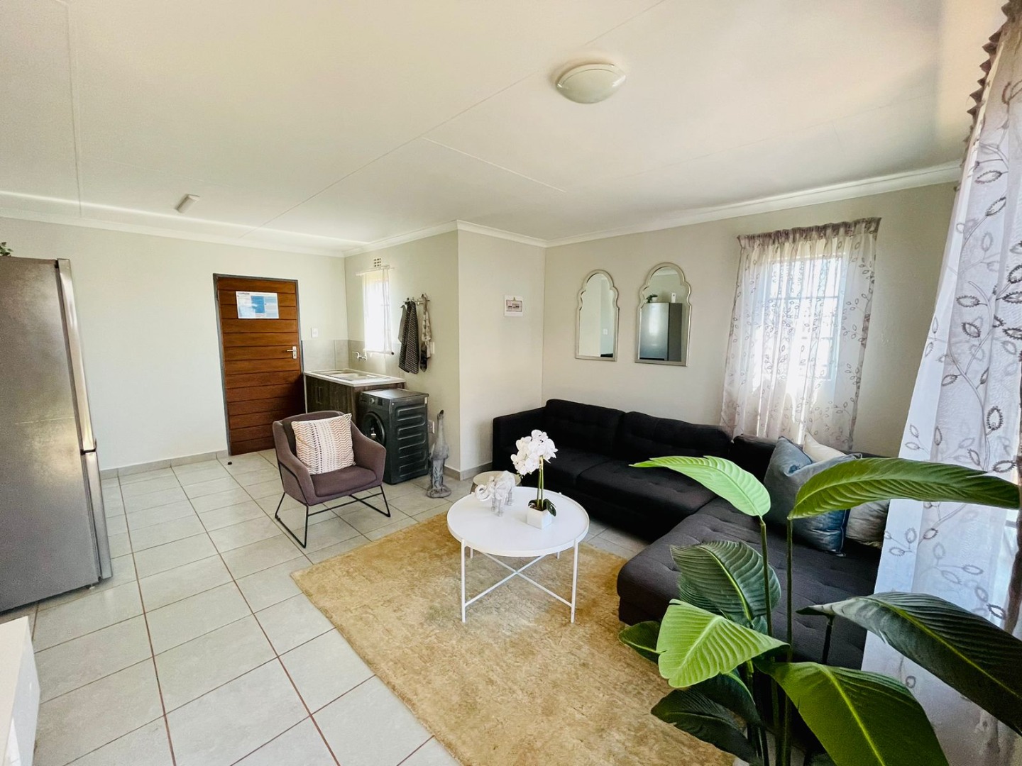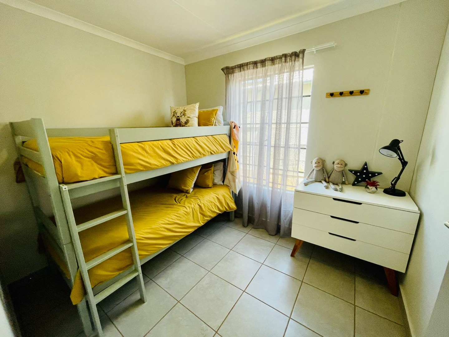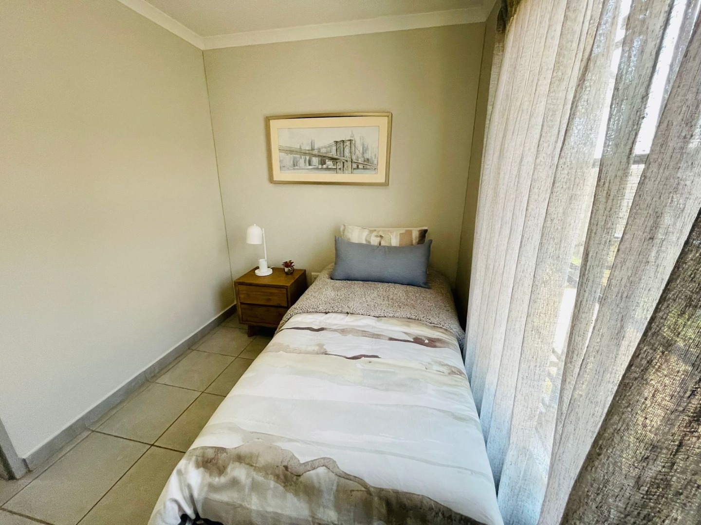 Large windows and smart design allow for abundant natural light to fill the interior creating a bright and airy atmosphere throughout the day. Outside a low-maintenance garden and paved areas offer space to relax or entertain with minimal upkeep required. A dedicated parking space provides added convenience while enhanced security features such as burglar bars and an access gate offer peace of mind.