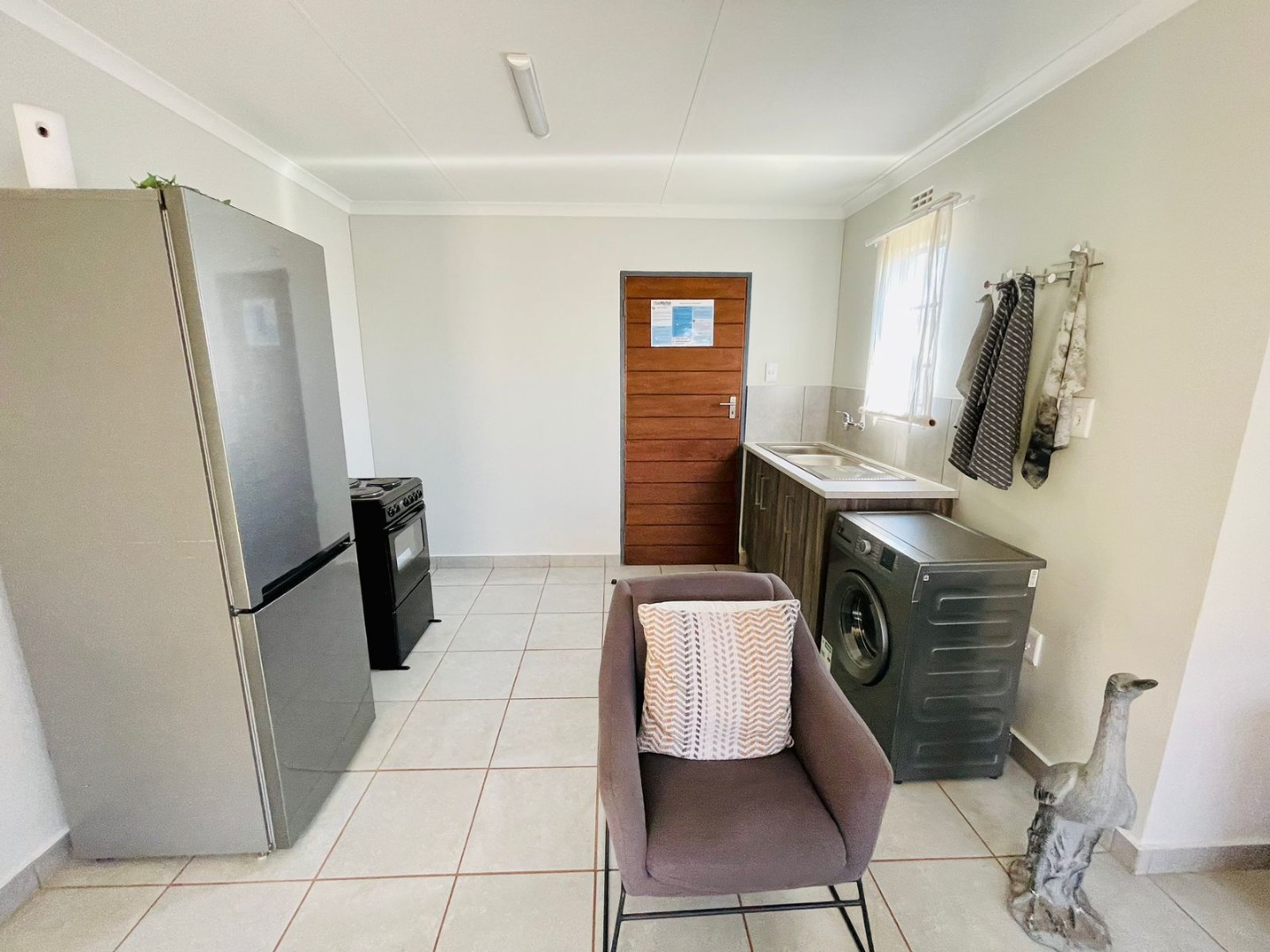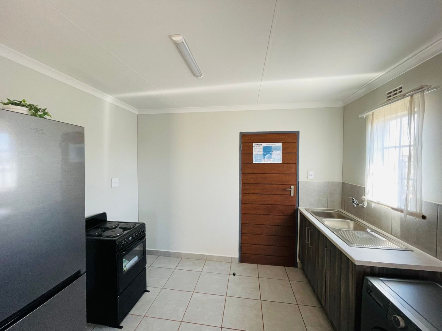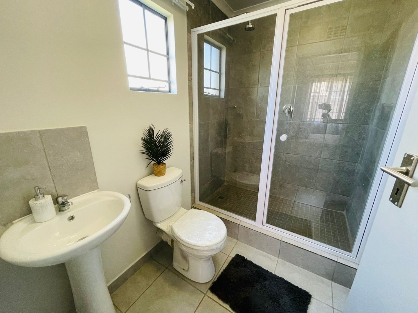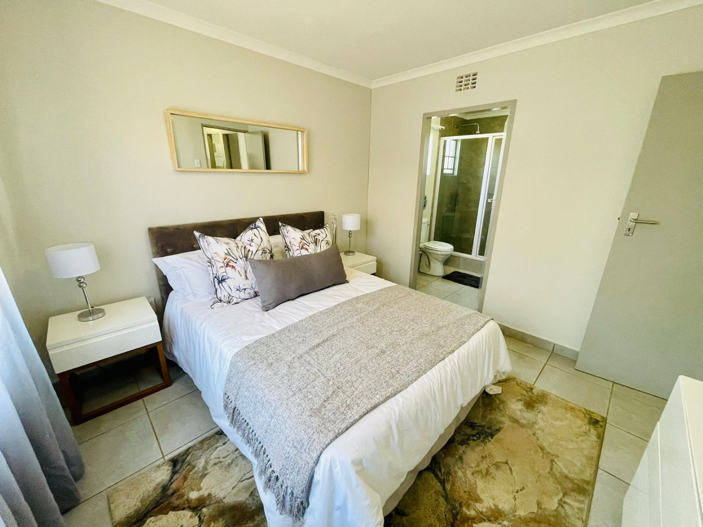 Large windows and smart design allow for abundant natural light to fill the interior creating a bright and airy atmosphere throughout the day. Outside a low-maintenance garden and paved areas offer space to relax or entertain with minimal upkeep required. A dedicated parking space provides added convenience while enhanced security features such as burglar bars and an access gate offer peace of mind.