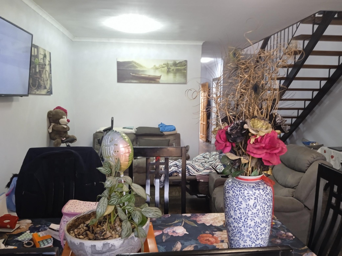 Discover secure and comfortable living in this charming residential sale property located in the desirable South Crest, Alberton. This well-maintained home is part of a security complex, offering peace of mind with 24-hour security, CCTV, an alarm system, electric fencing, and access control, complemented by burglar bars and security gates for enhanced safety. The tree-lined street provides a welcoming curb appeal, leading to a property featuring consistent brick facades and red-tiled roofs. Step inside to an inviting open-plan lounge area, featuring durable tiled flooring and a modern floating staircase that adds a touch of contemporary design. The heart of the home, a functional kitchen, boasts medium-toned wooden cabinets, dark granite countertops, and a dark tiled backsplash. It is equipped with modern appliances, including a built-in microwave, stainless steel range hood, electric hob, and oven, alongside ample storage. This residence offers three comfortable bedrooms, each with built-in cupboards, ensuring practical storage solutions. There are 2.5 bathrooms, including a main bathroom with a modern vanity, vessel sink, granite-look countertop, and a built-in bathtub, and a second bathroom with a corner glass shower. A convenient guest toilet is also present. Enjoy outdoor living with a private garden and a balcony, perfect for relaxation. The property includes a single garage and two additional parking spaces, with pets allowed. This home combines practical features with a secure lifestyle in a sought-after South African suburb. Key Features: * 3 Bedrooms, 2.5 Bathrooms * Open-plan Lounge * Modern Kitchen with Granite Countertops * Single Garage & 2 Parking Spaces * Private Garden & Balcony * 24-Hour Security Complex * Alarm System & CCTV * Pet-Friendly * Built-in Cupboards