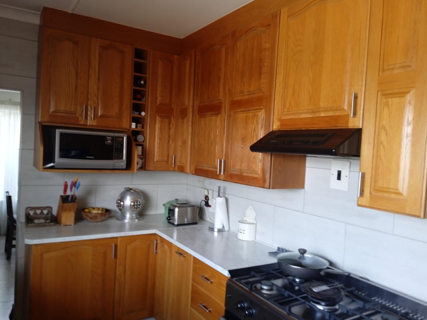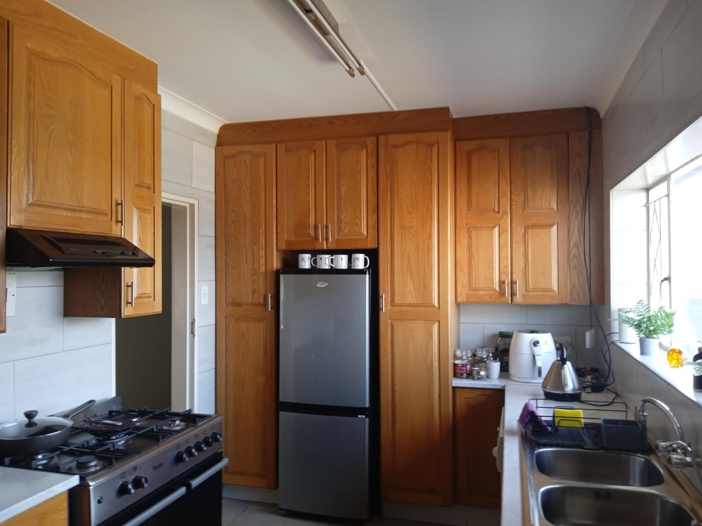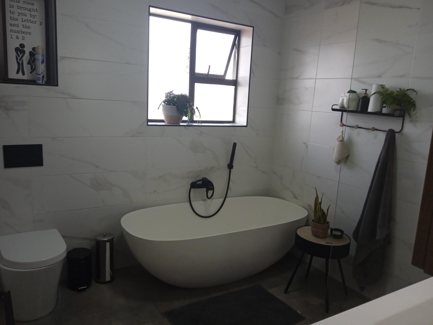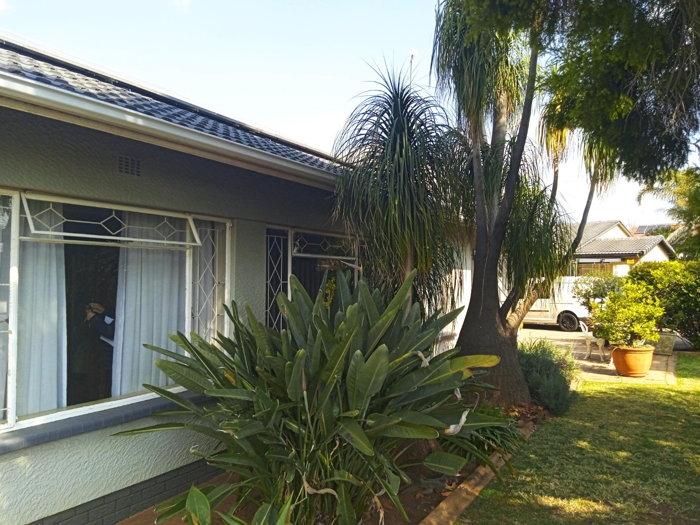 Discover this charming 3-bedroom, 1-bathroom home nestled in the established suburban area of Verwoerdpark, Alberton, South Africa. This property immediately impresses with its well-maintained exterior, featuring a paved driveway leading to a double carport and an array of solar panels, hinting at energy efficiency. The lush, mature garden with tropical plants and a neatly trimmed hedge enhances its kerb appeal, creating a welcoming first impression. Step inside to an inviting interior that boasts an open-plan layout, seamlessly connecting the living spaces. The kitchen is a highlight, equipped with extensive traditional wooden cabinetry, light-colored countertops, a modern white tiled backsplash, and a gas stove, perfect for culinary enthusiasts. A dedicated dining room and a comfortable lounge provide ample space for relaxation and entertaining. The home offers three well-proportioned bedrooms, ensuring comfortable accommodation. The single bathroom has been tastefully updated with a modern, clean aesthetic, featuring a stylish freestanding bathtub, wall-mounted toilet, and contemporary fixtures, providing a serene retreat. Outdoor living is a delight with a private garden and an outdoor hot tub/small pool, ideal for unwinding. The property also includes a laundry area and is pet-friendly, catering to a family lifestyle. Parking is generous with a double garage and additional space for up to six vehicles. Security is well-addressed with electric fencing and burglar bars on windows, offering peace of mind. Sustainability features include a solar geyser and a battery inverter, contributing to reduced utility costs and reliable power. This metropolitan and suburban setting provides convenient access to local amenities and a peaceful residential environment. Key Features: • 3 Bedrooms, 1 Bathroom (1 En-suite, 1 Guest Toilet) • Open Plan Living Areas • Well-equipped Kitchen with Gas Stove • Outdoor Hot Tub/Small Pool • Double Garage & 6 Parking Spaces • Solar Panels, Solar Geyser & Battery Inverter • Electric Fencing & Burglar Bars • Pet-Friendly with Garden