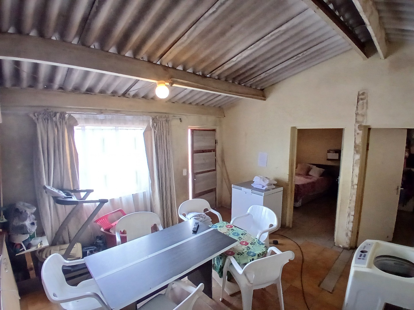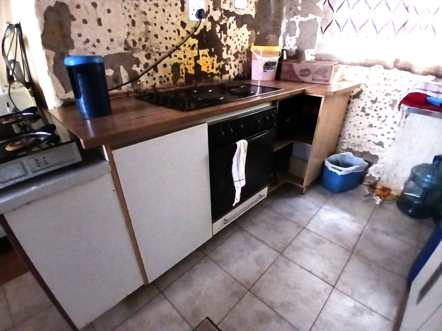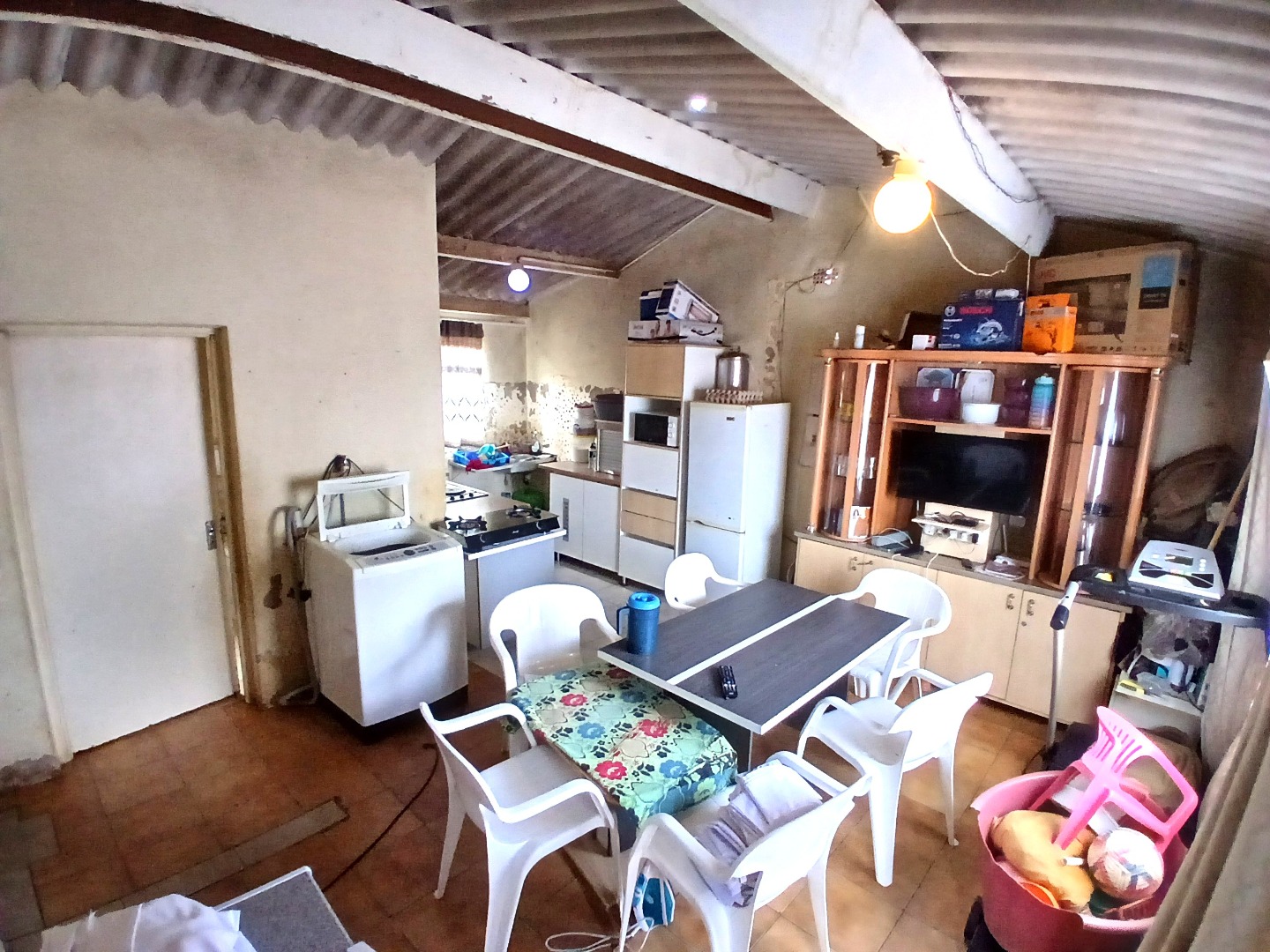 Inside the main house offers a functional layout comprising one lounge and a kitchen. The kitchen while equipped with basic appliances and cabinetry currently shows signs of wea including peeling paint and an exposed corrugated ceiling. This space is ripe for a complete overhaul allowing new owners to design a modern open-plan living area tailored to their preferences transforming it into a vibrant hub for daily life.