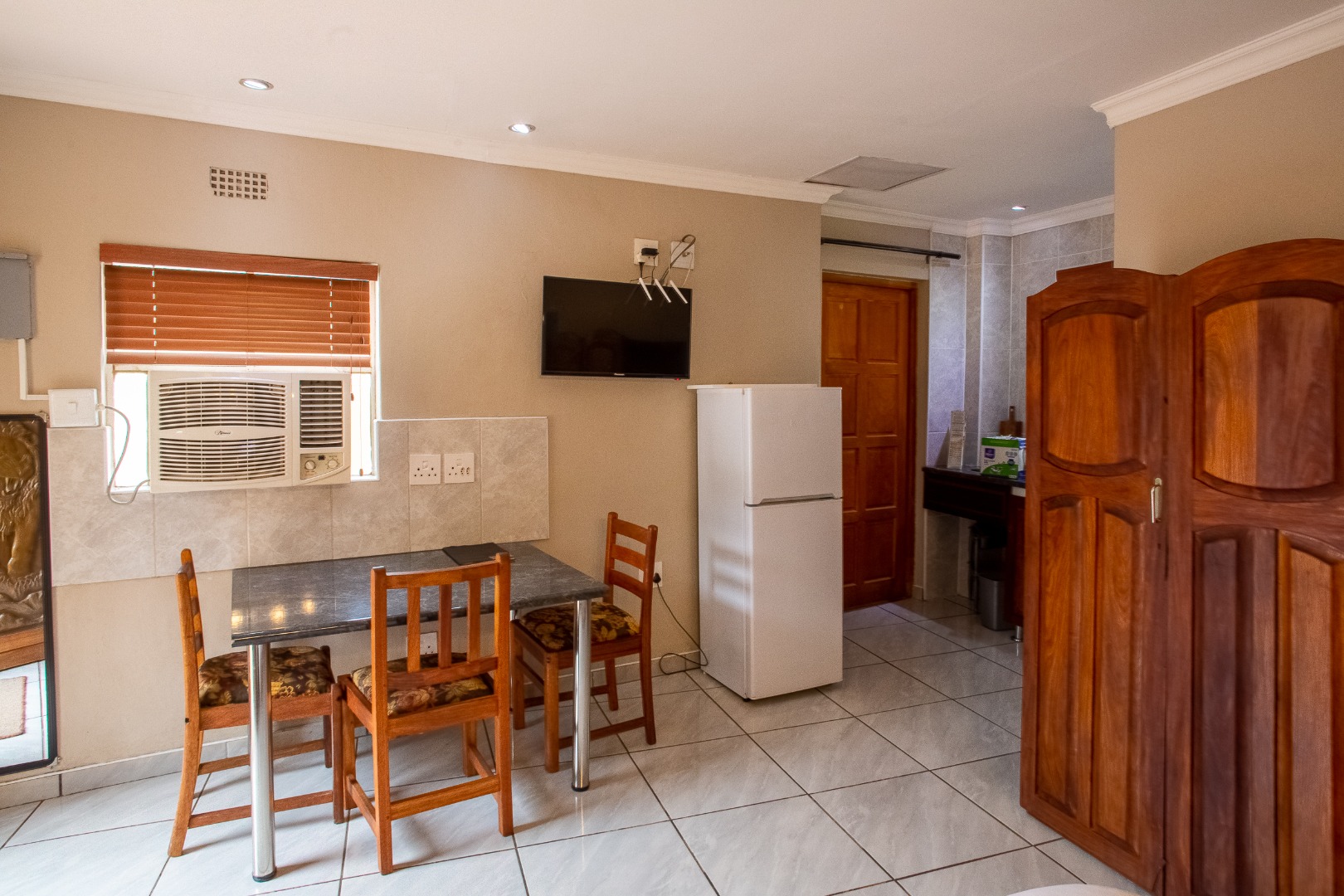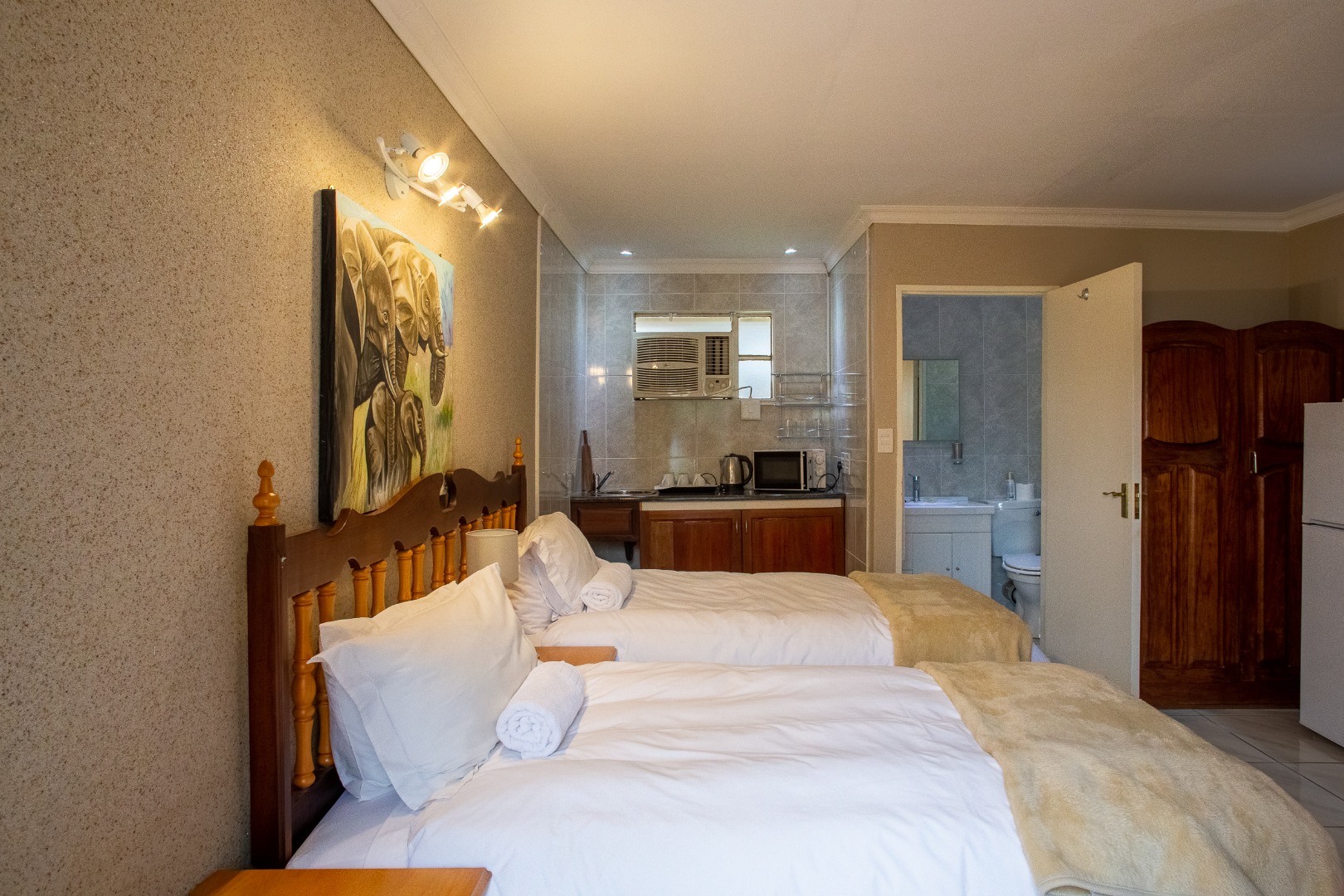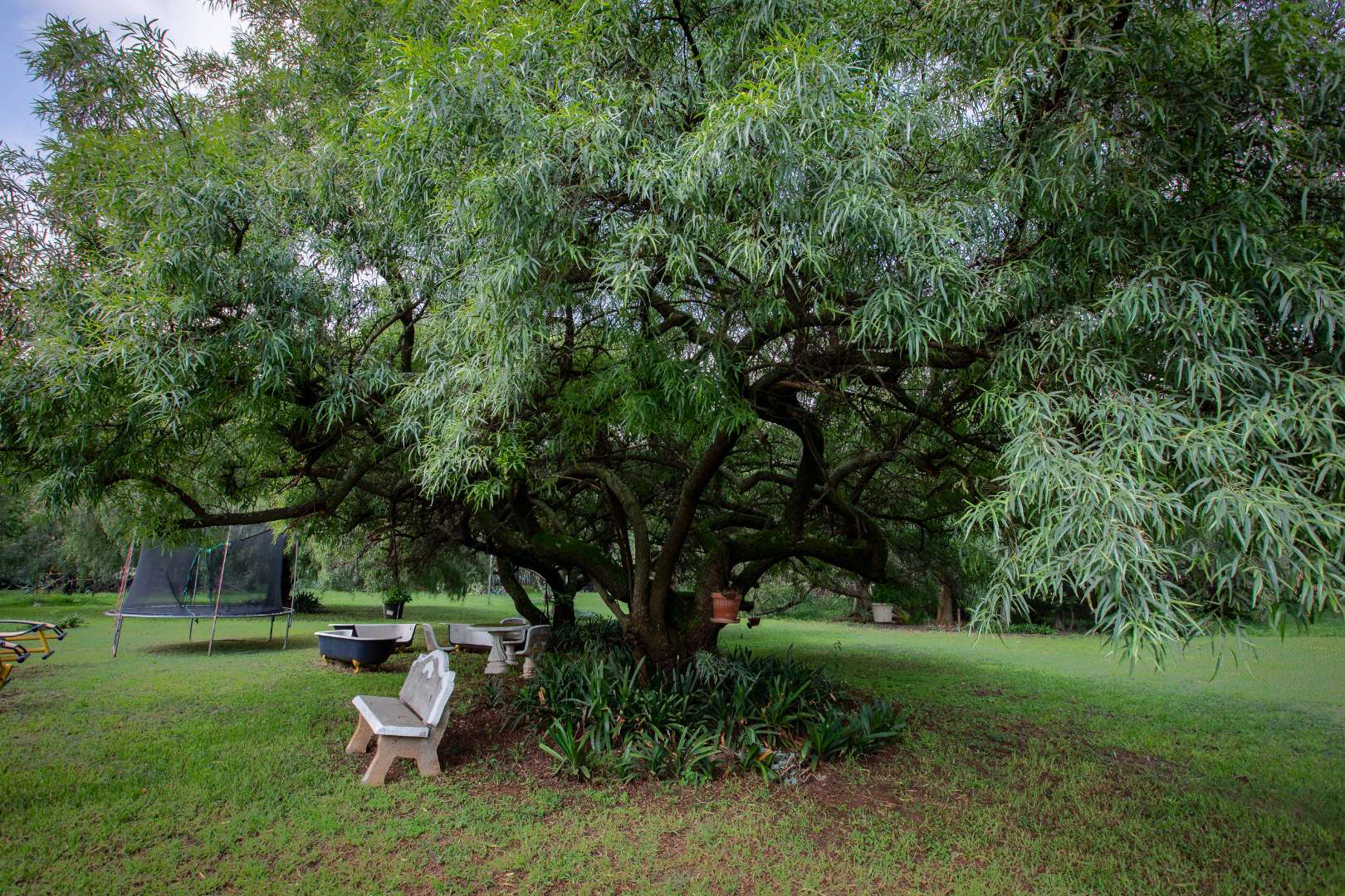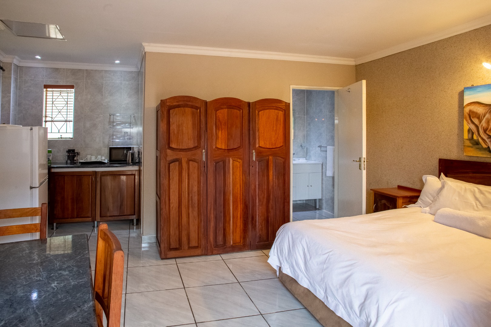 Outside you will find six well-appointed cottages – two fully self-catering – ideal for short- or long-term stays. With all furniture included these homes are ready to go. Guests or family can enjoy the sparkling pool filled with borehole water, lush botanical gardens and shared braai or outside preparation area – all in a pet-friendly setting!