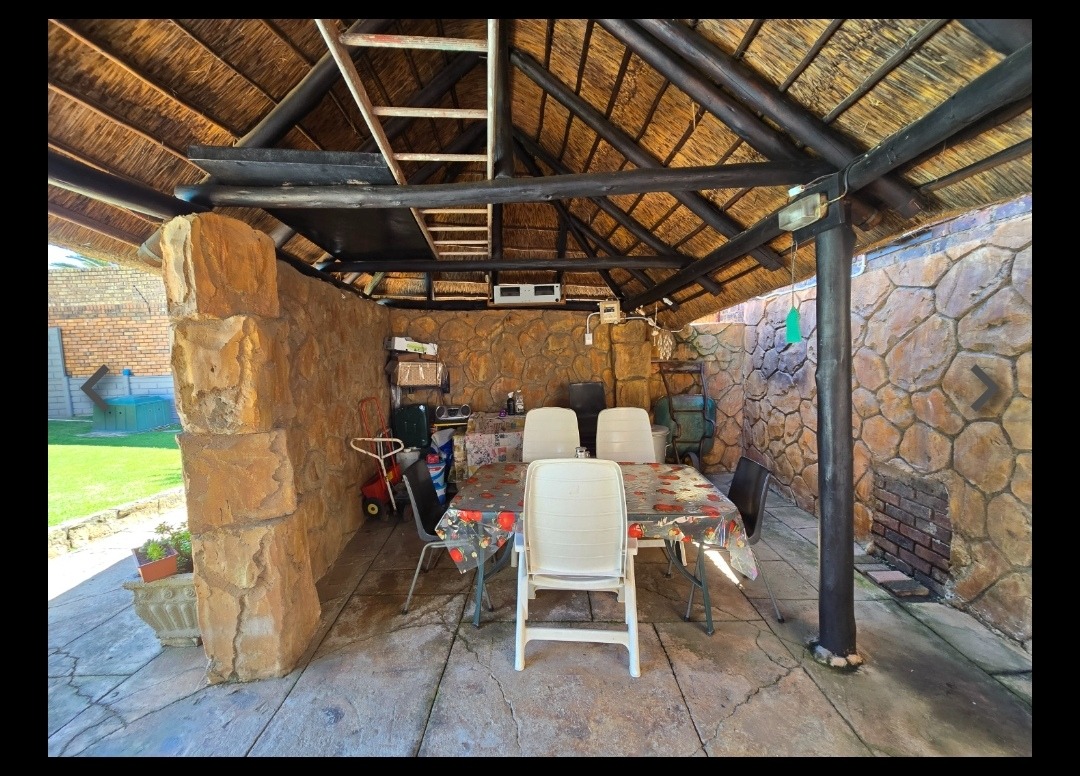 This property boasts an open plan dining room and living area that flows effortlessly into a spacious kitchen ideal for family meals and entertaining. The three well sized bedrooms have built-in wardrobes and the two bathrooms provide convenience for family members. Outdoor living is impressive with a large garden, sparkling swimming pool and thatched lapa perfect for summer gatherings.