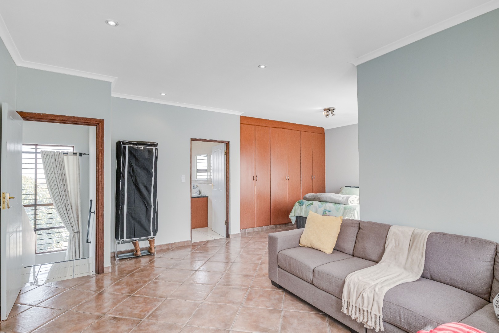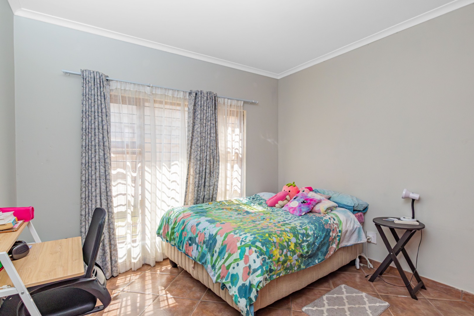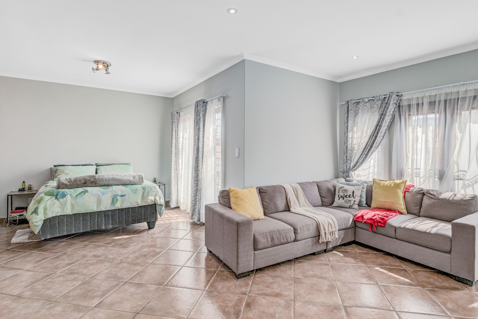 Beyond the aesthetic allure, this home prioritises peace of mind. The property is totally walled and fortified with robust security features, including electric fencing, security gates, and burglar bars. Within Prima Vista Estates, residents benefit from a 24-hour security post and controlled access, ensuring a secure environment. Fibre connectivity is readily available, catering to modern demands. With a double garage and additional parking for three vehicles, convenience is assured.