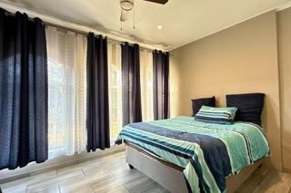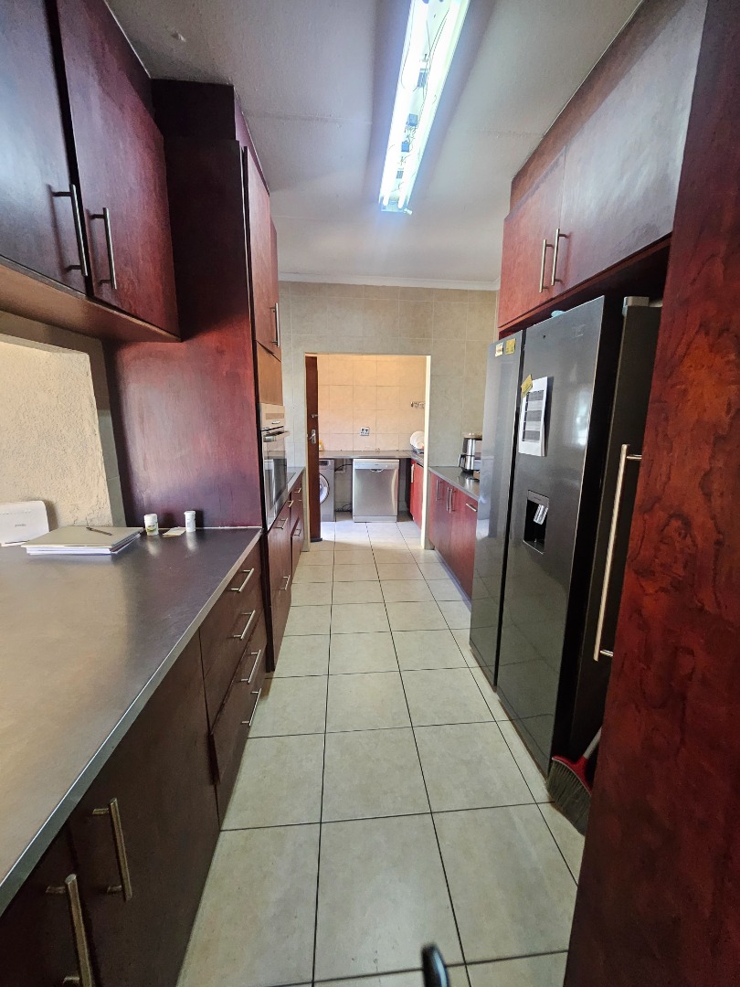 This home comes with a kitchen with an induction stove, hob, oven, nook and ample fitted cupboards. The kitchen leads to the lounge and dining room area with views of the gorgeous outdoor area. The second lounge is finished with laminated floors and ceiling making it so unique and stunning while facing the swimming pool.