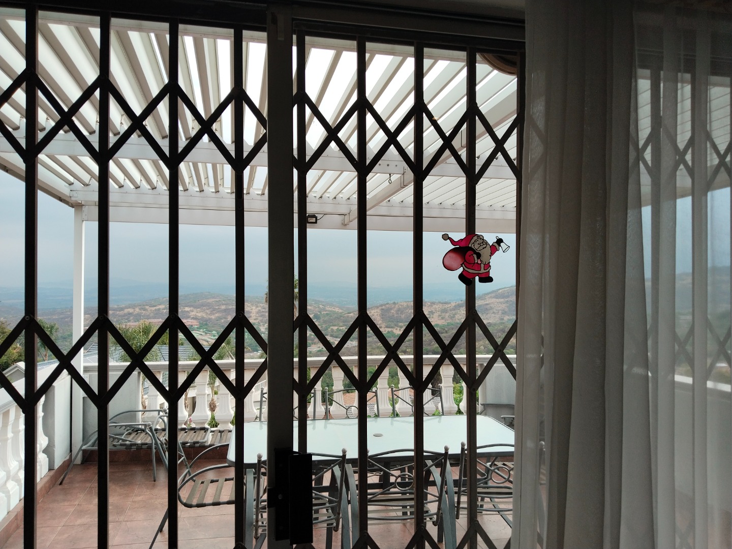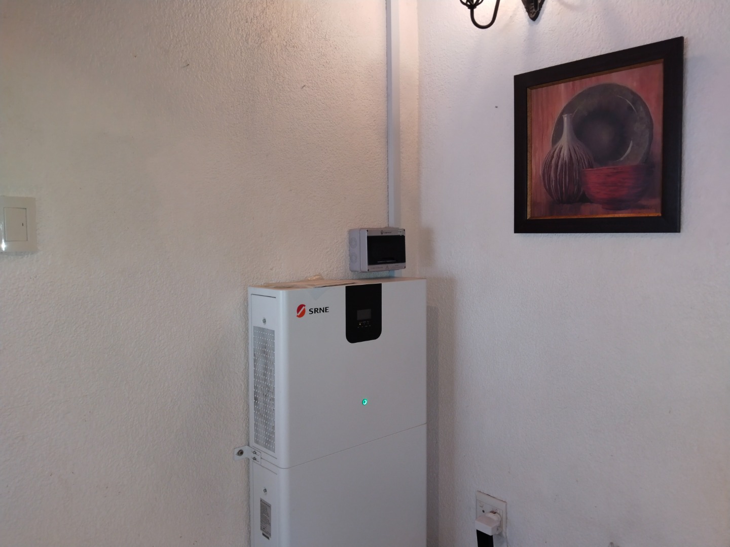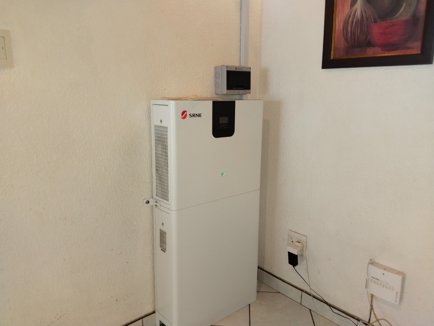 heater. Security cameras and beams. Mainline electricity and solar invertor, so