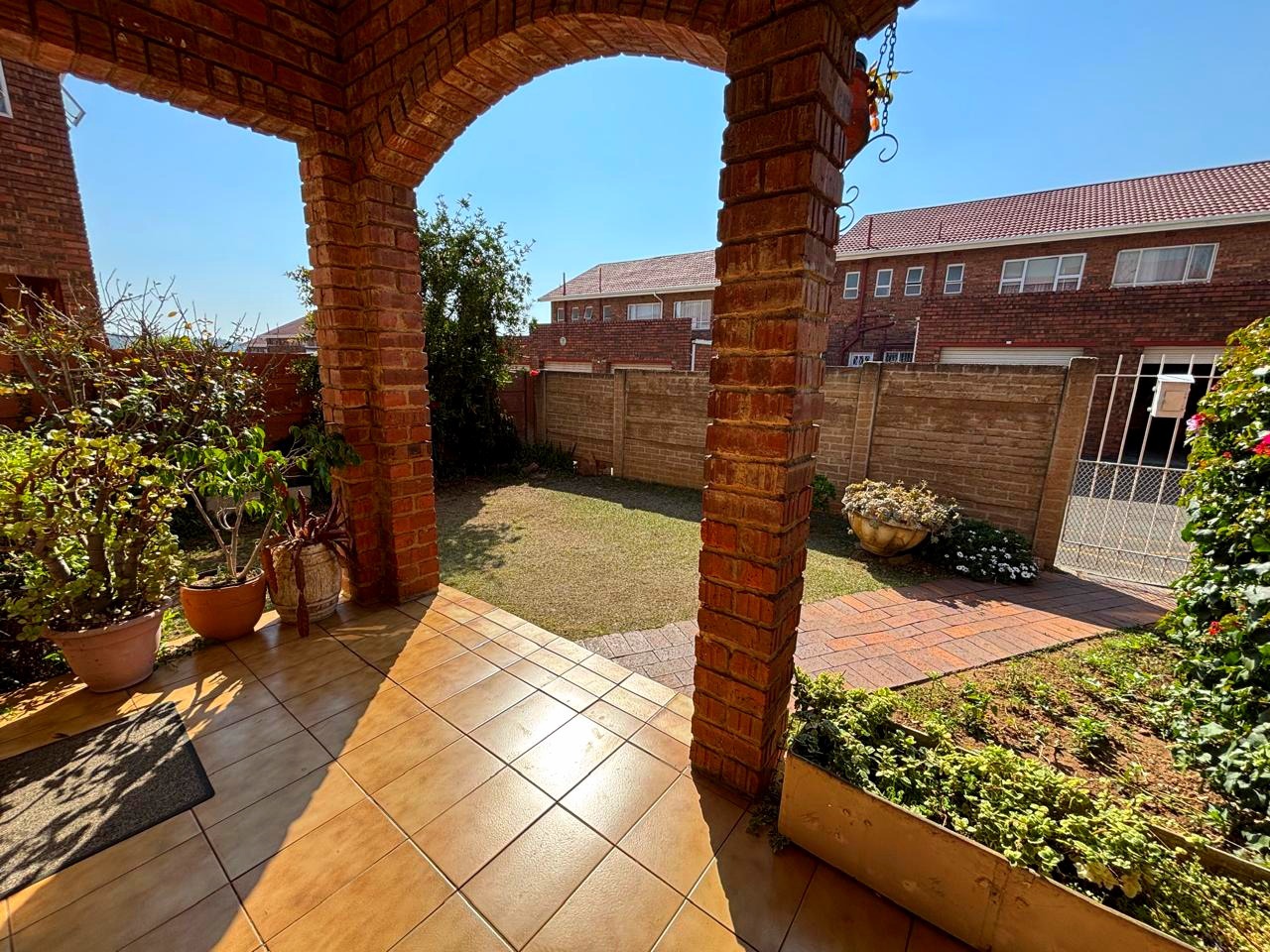 The home offers two and a half bathrooms: one with a bathtub, basin, and toilet, another with a shower and basin, plus a separate loo for added convenience. Enjoy a private backyard garden, and take advantage of the complex’s communal swimming pool, braai area and 24-hour surveillance cameras. The unit includes an automated single garage and additional visitor parking spots, ensuring ample space for guests.