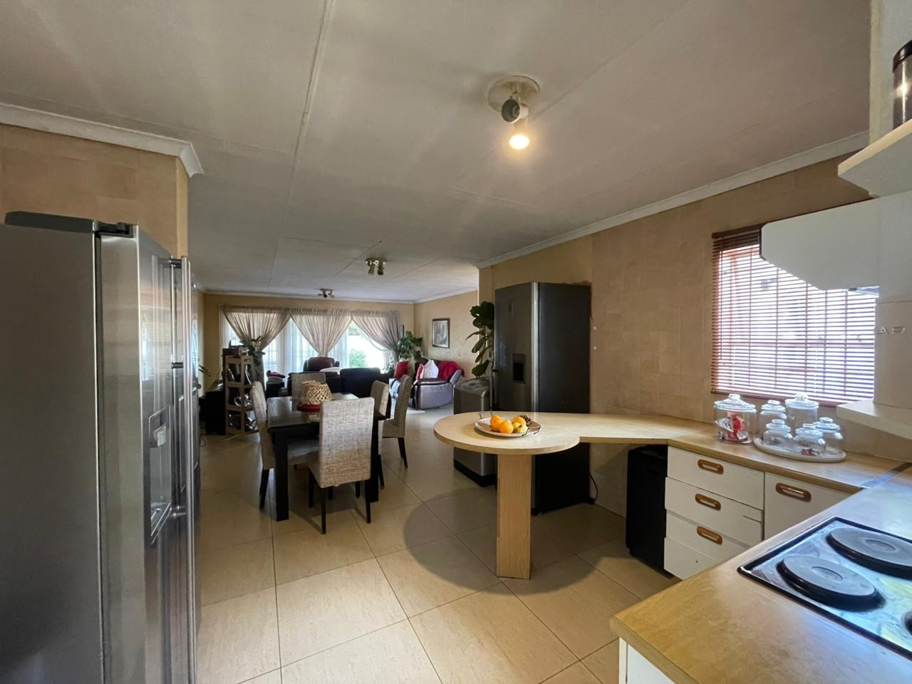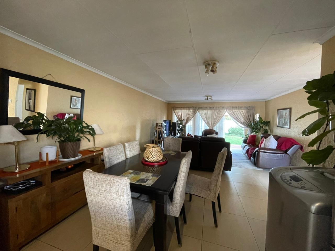 Step inside to discover an inviting open-plan living environment. The spacious lounge, designated as a family TV room boasts warm-toned walls and durable tiled flooring creating a cozy atmosphere. Abundant natural light streams in through large sliding glass doors providing convenient access to the outdoor paved area, ideal for relaxed living. The home features a functional kitchen integrated into the open-plan layout. Accommodation comprises three well-proportioned bedrooms with the main bedroom benefiting from a private on-suite bathroom. A second full bathroom serves the remaining bedrooms and guests.