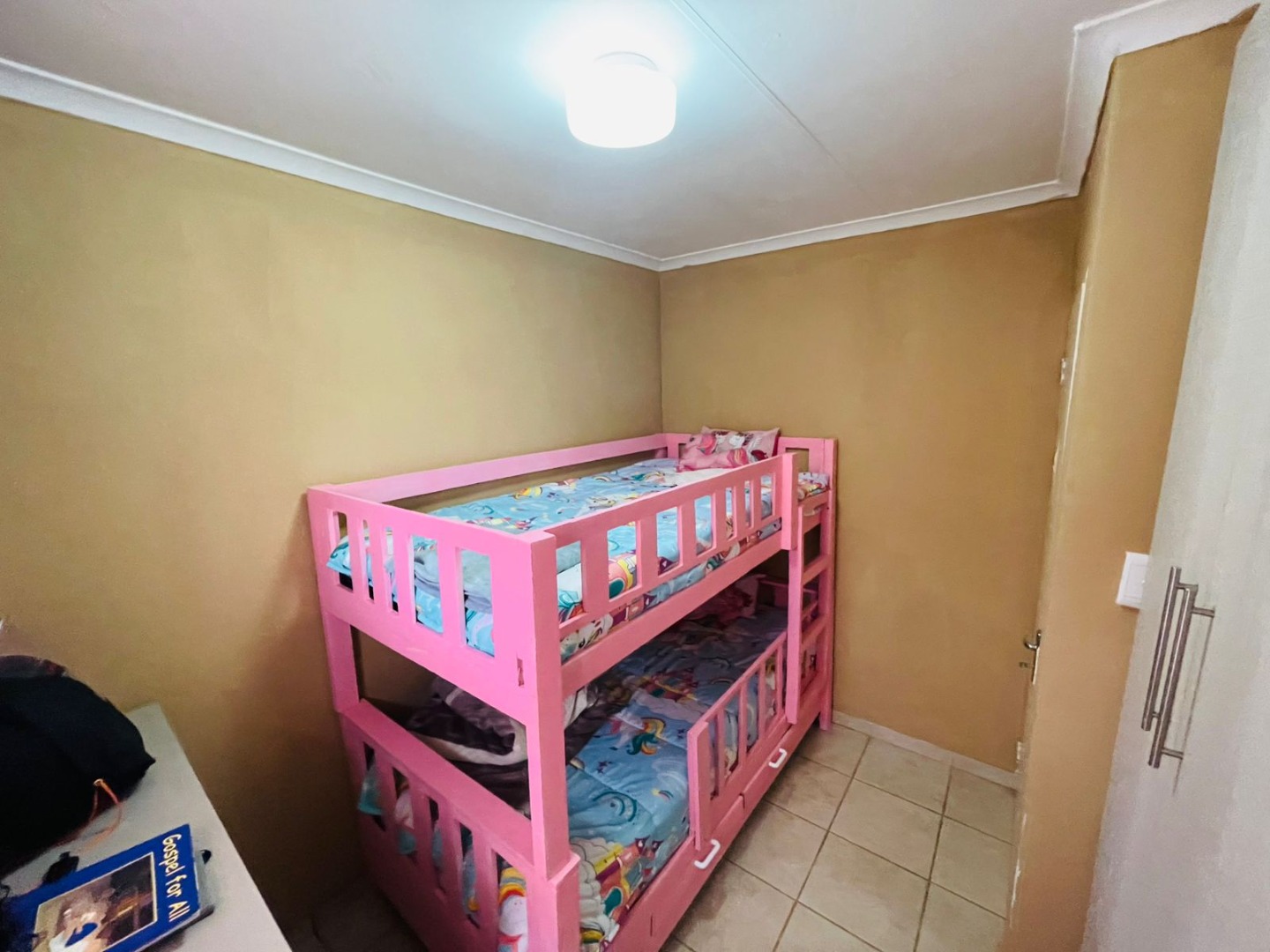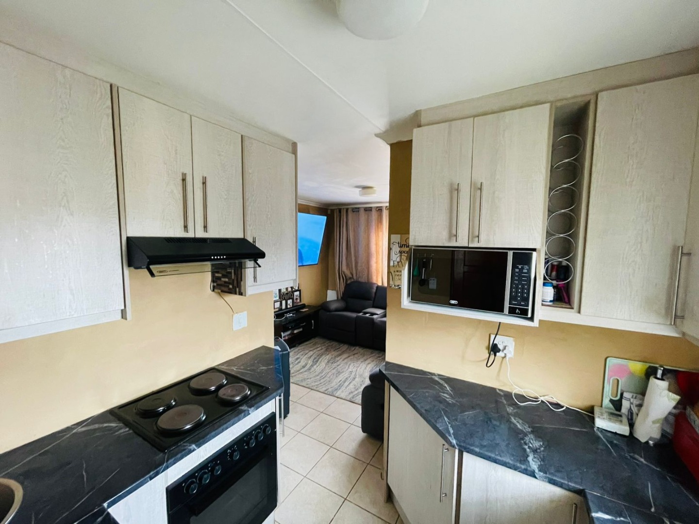 The home features two clean and comfortable bedrooms providing a cozy space to rest and unwind. The bathroom is neatly tiled from floor to ceiling giving it a fresh modern feel. The sunny kitchen is perfect for whipping up your favorite meals and with built-in cupboards providing space for all your necessary appliances. Perfect for cooking or creating memories with family. The warm and welcoming lounge is the ideal spot for relaxing watching TV or spending quality time together. It is a great space for family bonding and enjoying those quiet moments.
