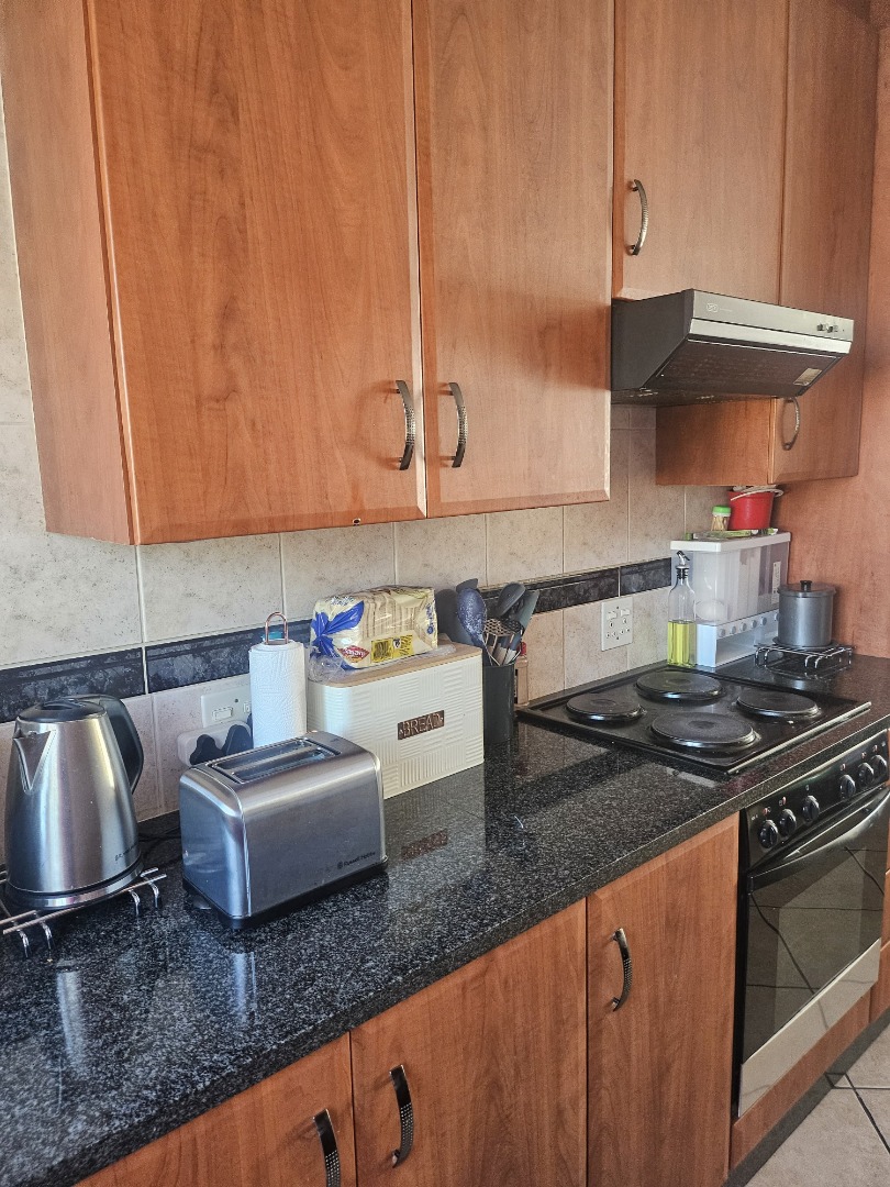 This amazing home boasts two cozy bedrooms with fitted modern melamine wardrobes. All bedrooms come complete with wooden themed tiles which boast a cozy and warm vibe. The main full bathroom comes with a modern standing bath, basin and toilet. This home comes with a modern styled kitchen with fitted cupboards with granite countertops and an electric stove and leads onto a spacious dining room and open plan lounge area with views of the gorgeous outdoor area. The home is well tiled and walls are immaculately painted with welcoming colour tones. The whole property is well sized, seasoned for comfort and well secured with 24 hour security response.