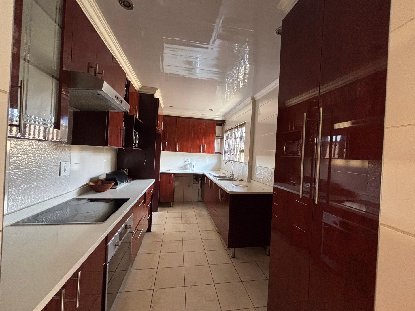 Upon entering, you are welcomed by an inviting open-plan layout that effortlessly connects the lounge, dining room, and kitchen. Large windows allow natural light to flow throughout, creating a warm and airy atmosphere. The kitchen is a true standout – fitted with sleek countertops, ample cupboard space, and modern finishes, making it a pleasure to cook and entertain in.