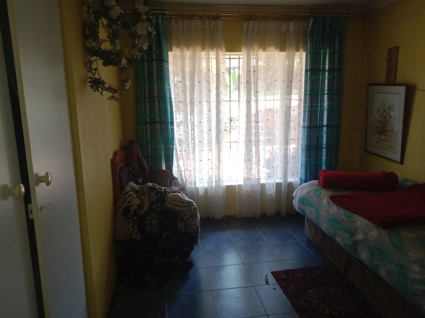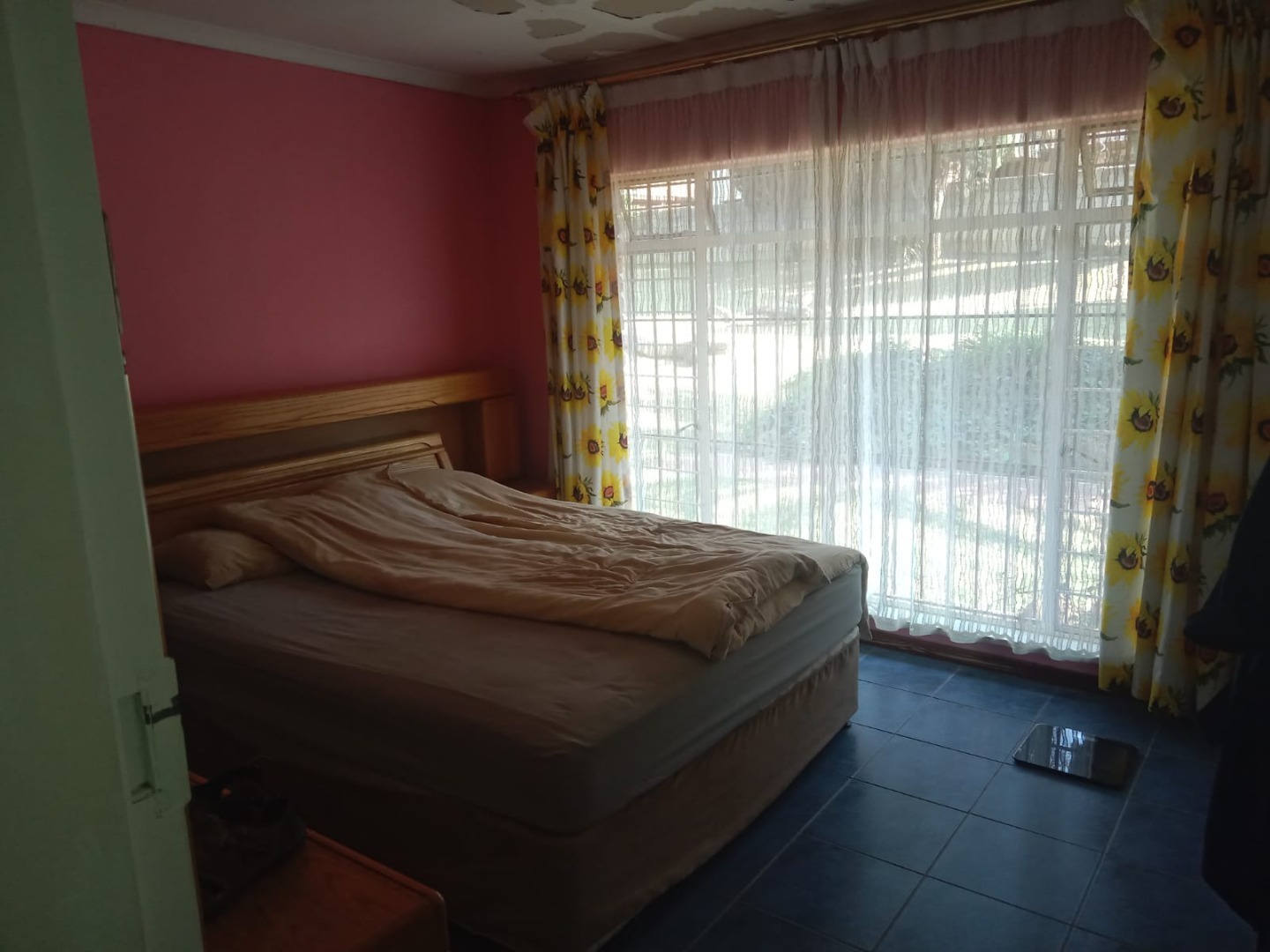 The functional kitchen is equipped with extensive wooden cabinetry and a double sink providing ample storage and a practical layout illuminated by a large window. This home comprises three well-proportioned bedrooms each featuring tiled flooring and abundant natural light offering a versatile canvas for personal touches. A single conveniently located bathroom serves the household.