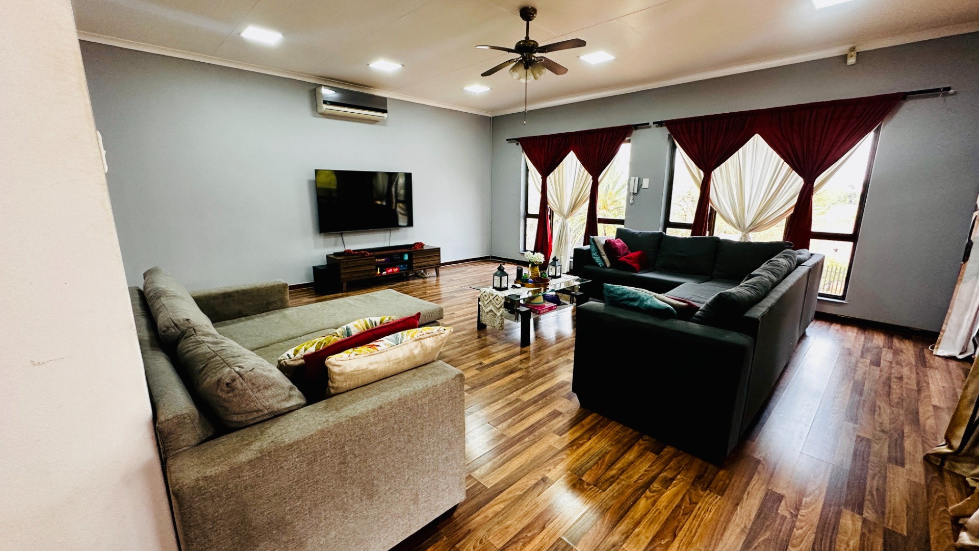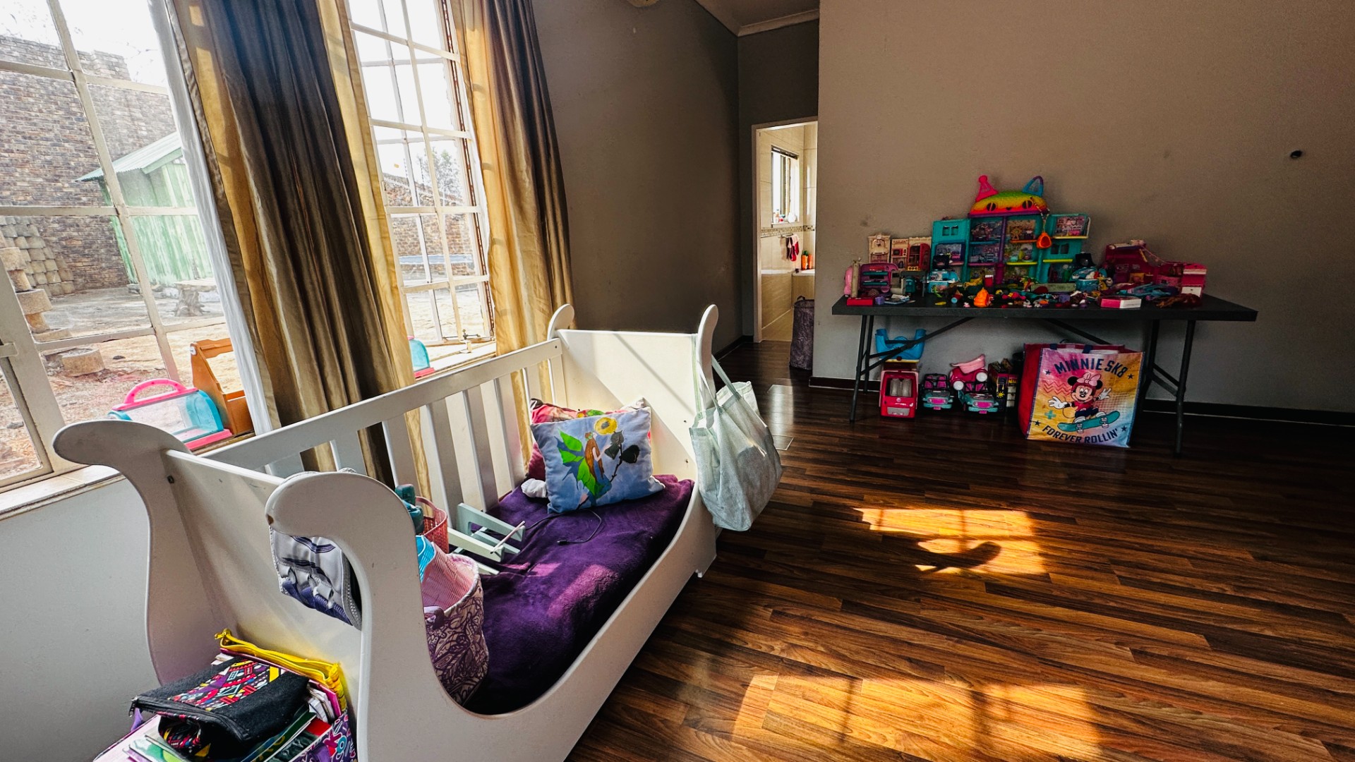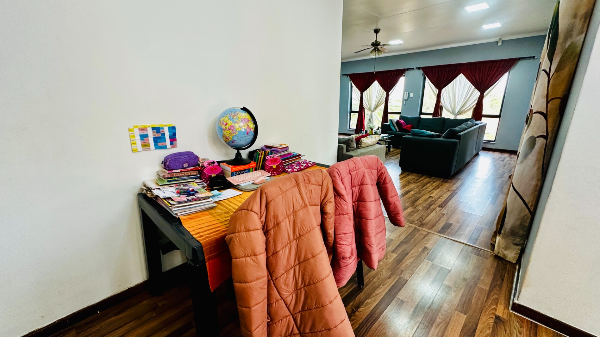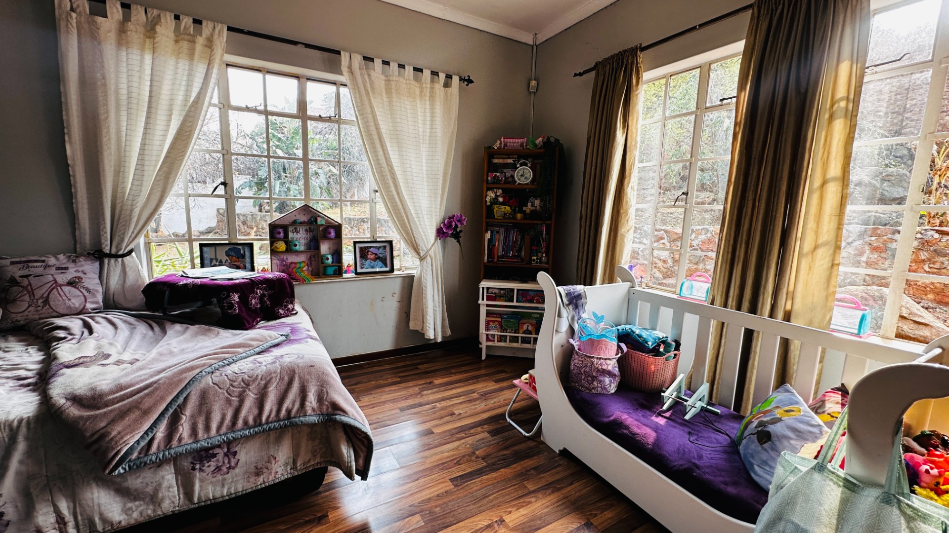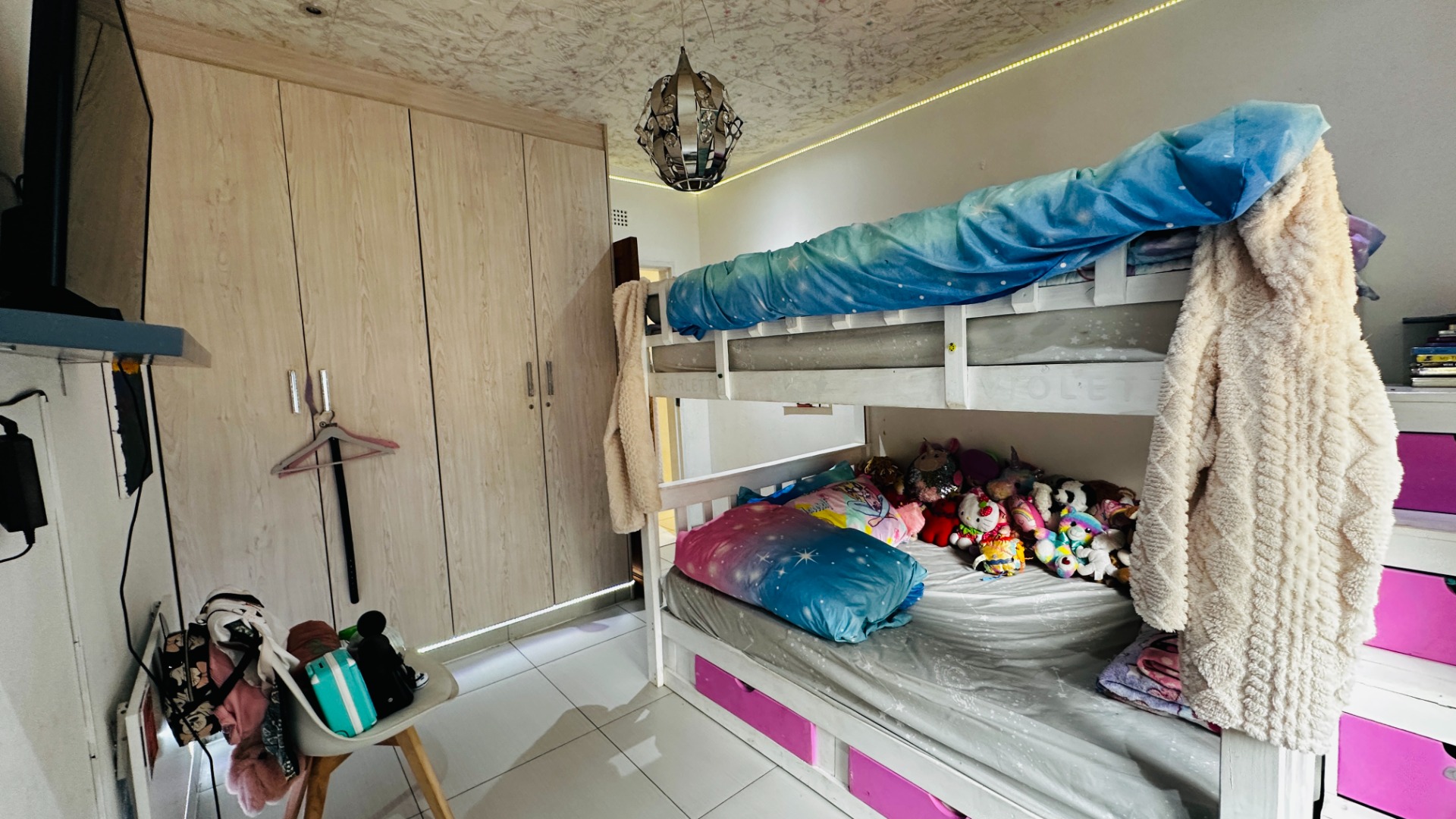 Outdoor living is made for entertaining – with a lapa and built-in braai perfect for weekends with family and friends. A Wendy house adds versatility, serving as a playroom for children or extra accommodation, and there’s also an additional outside basin and toilet. The property offers a double automated garage, a workshop, a storage area, and parking for multiple vehicles. Security is top-notch with an alarm, burglar bars, beams, CCTV, and an automated driveway gate, ensuring peace of mind.