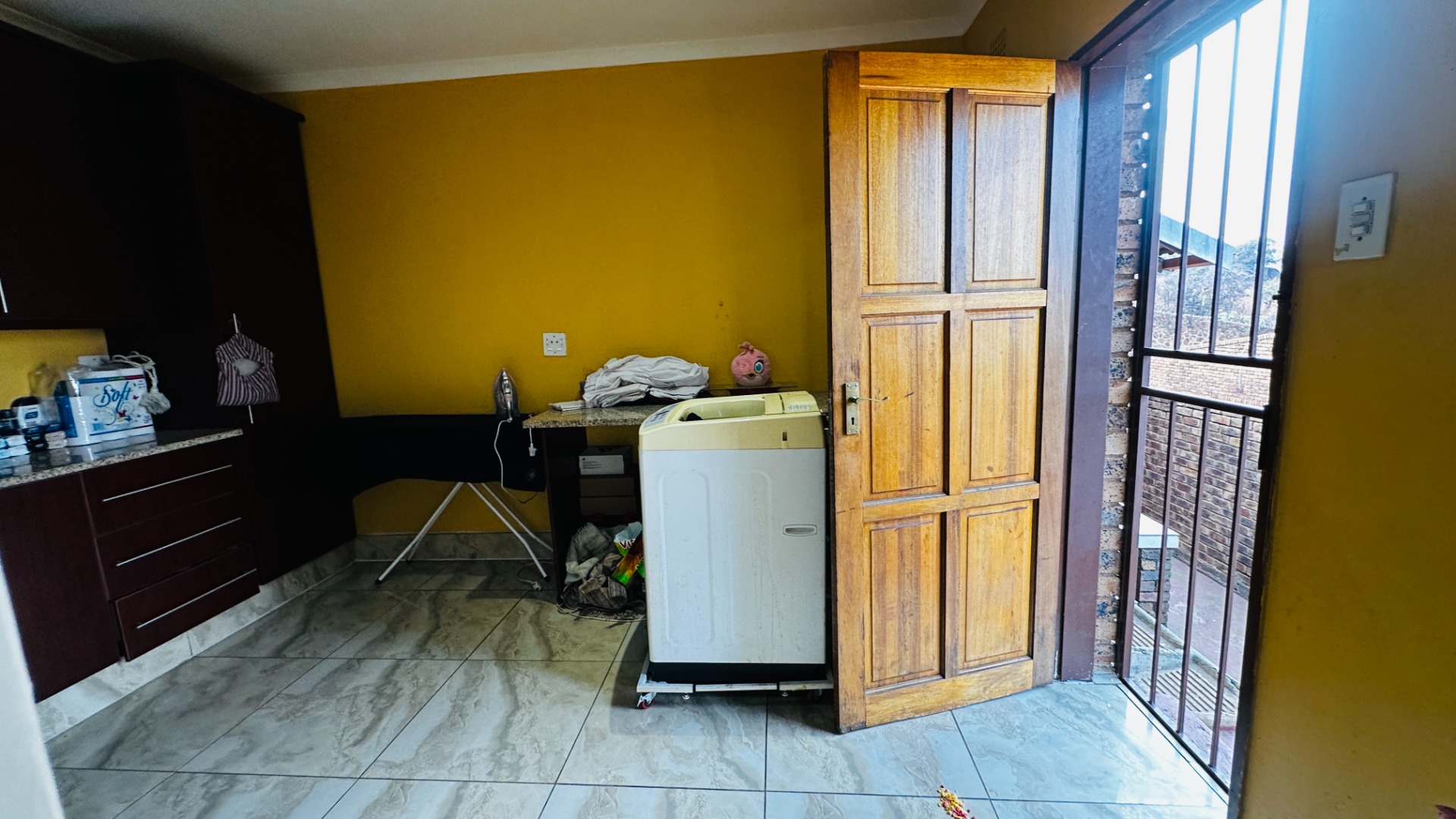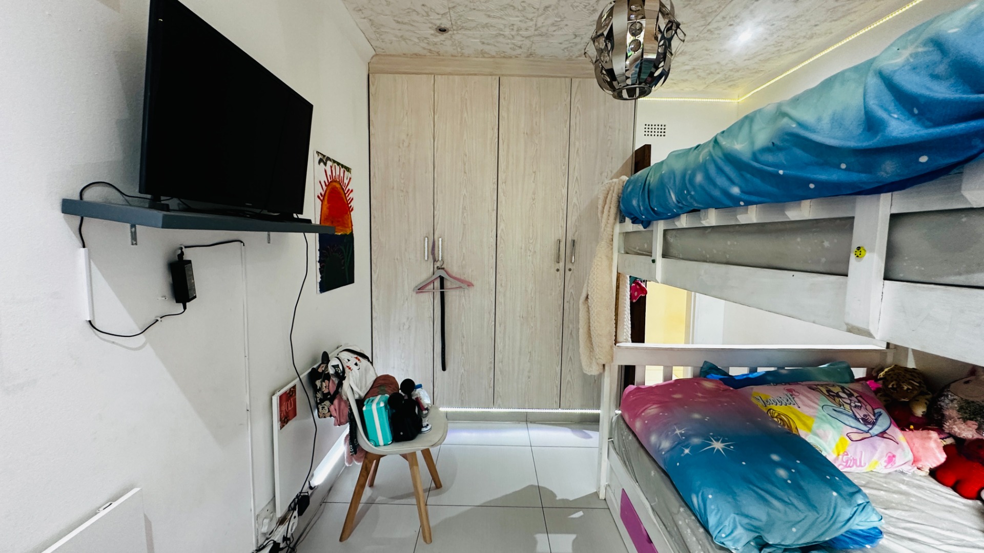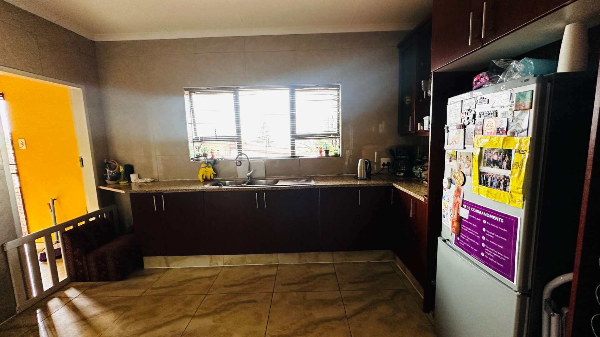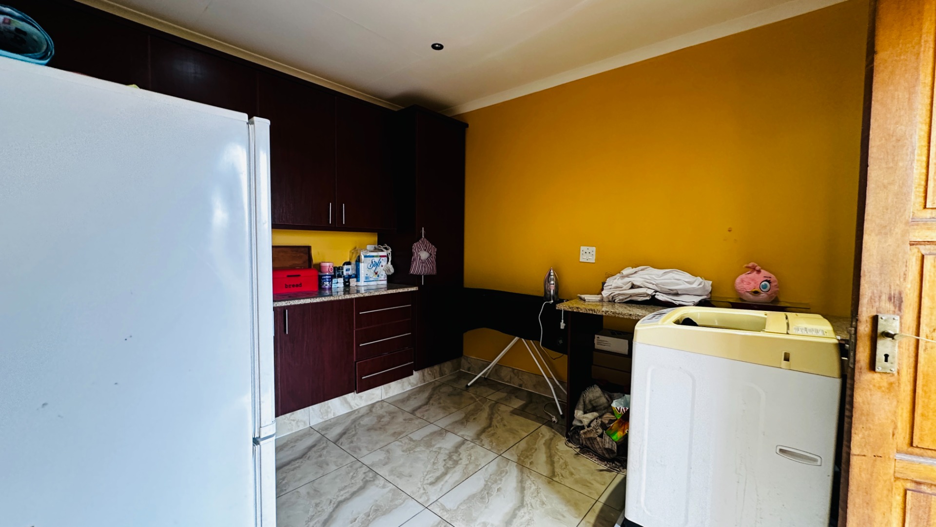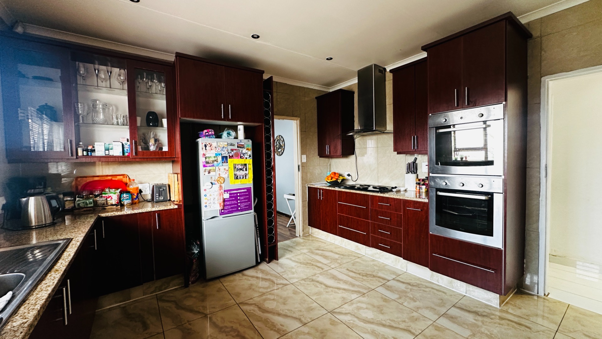 Outdoor living is made for entertaining – with a lapa and built-in braai perfect for weekends with family and friends. A Wendy house adds versatility, serving as a playroom for children or extra accommodation, and there’s also an additional outside basin and toilet. The property offers a double automated garage, a workshop, a storage area, and parking for multiple vehicles. Security is top-notch with an alarm, burglar bars, beams, CCTV, and an automated driveway gate, ensuring peace of mind.