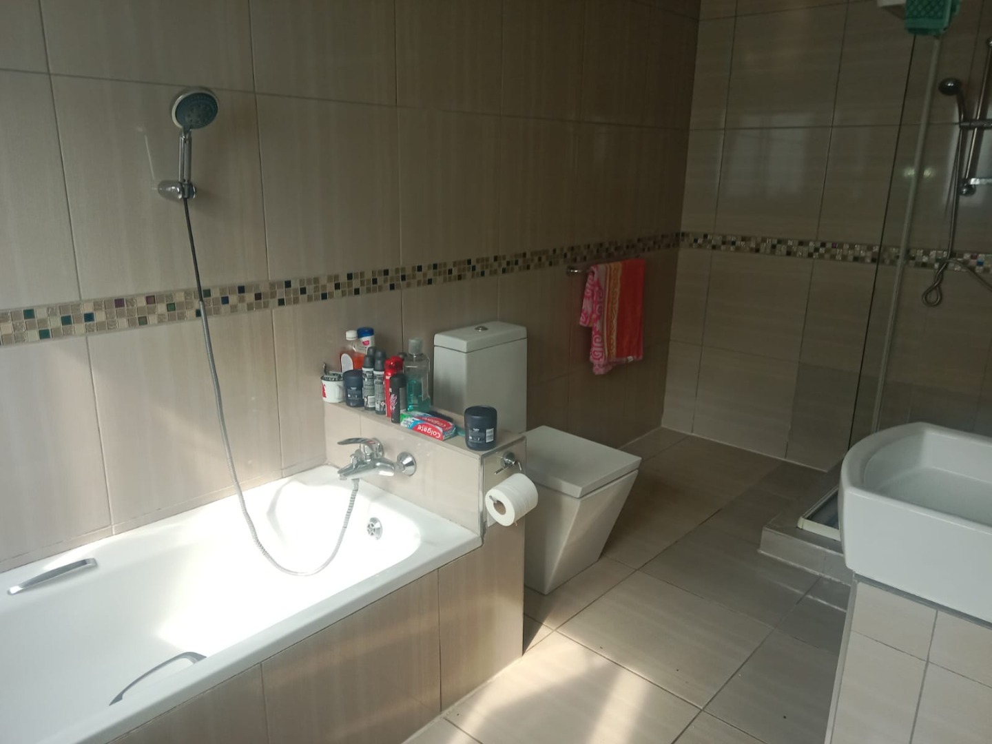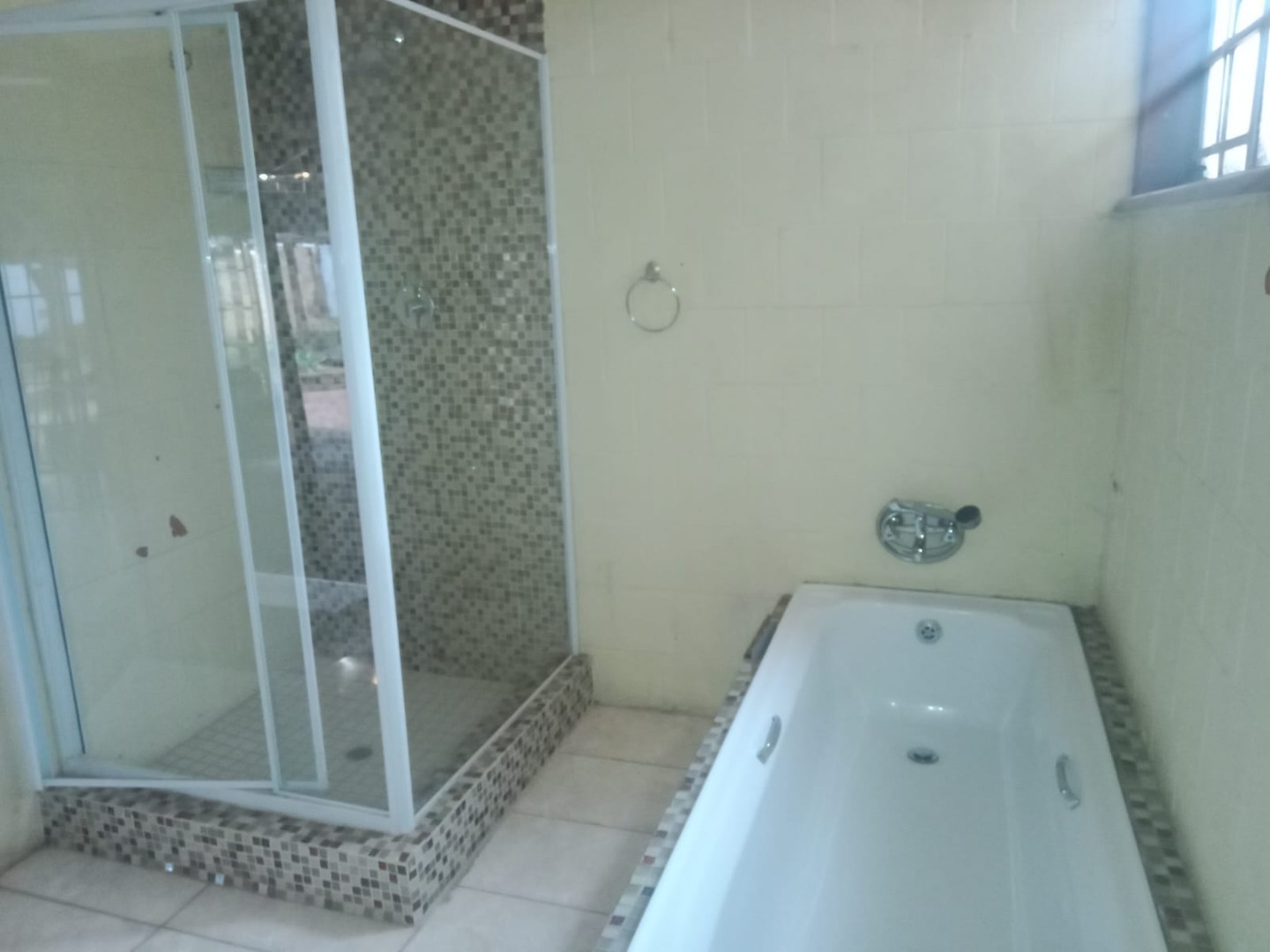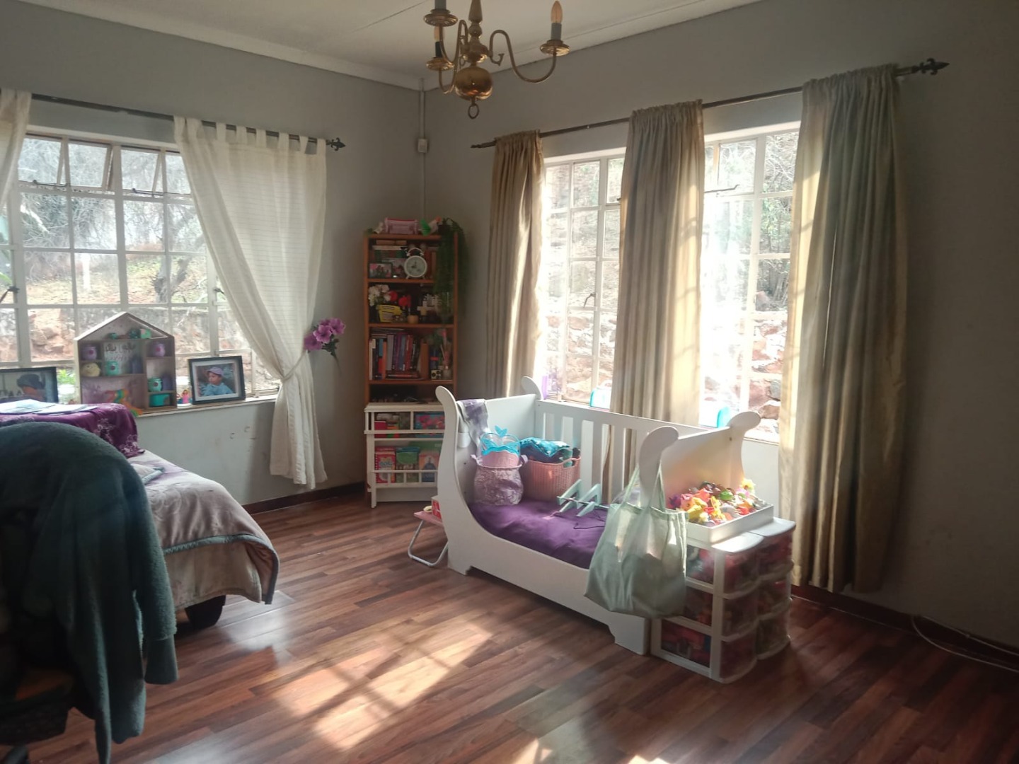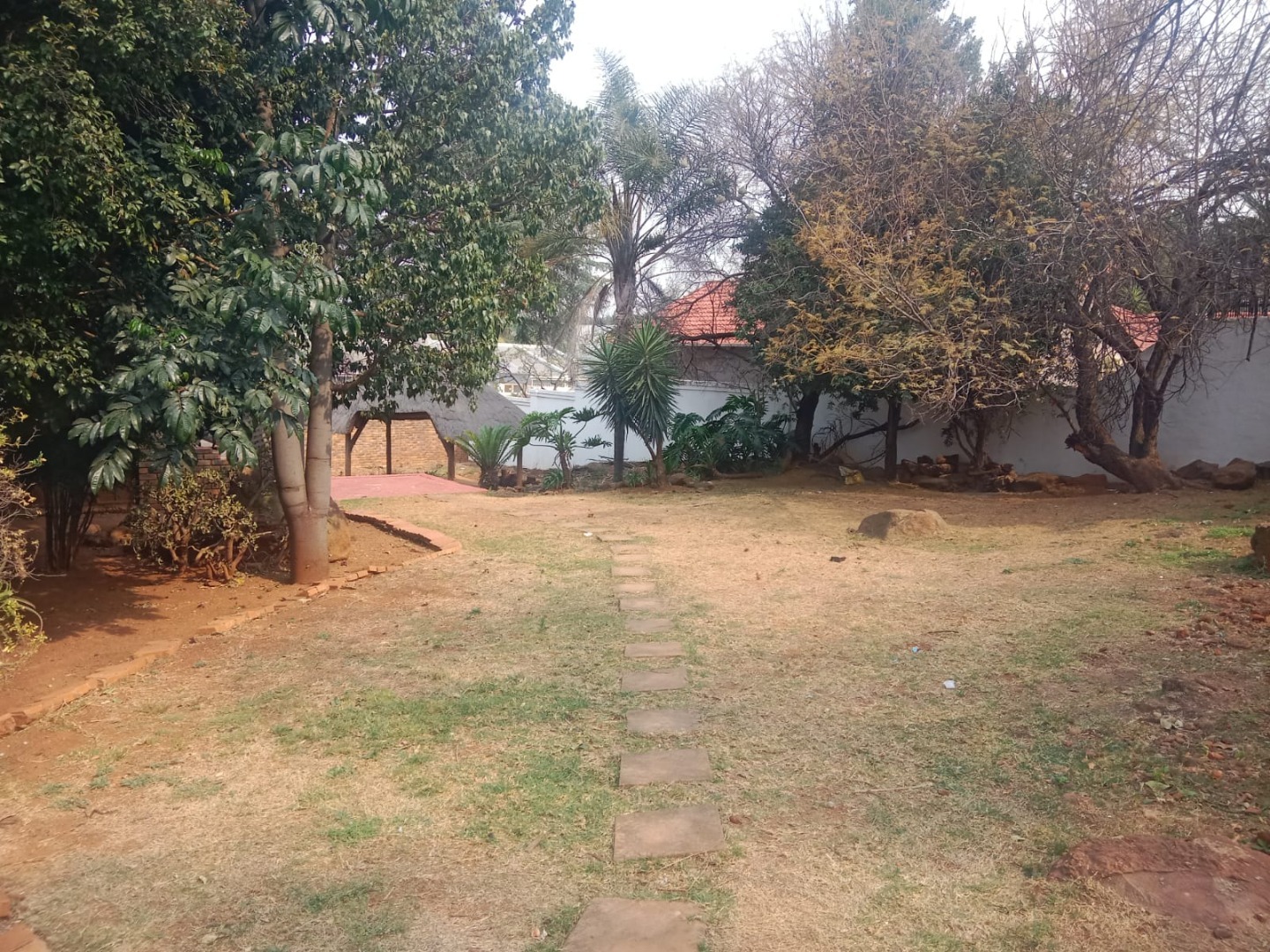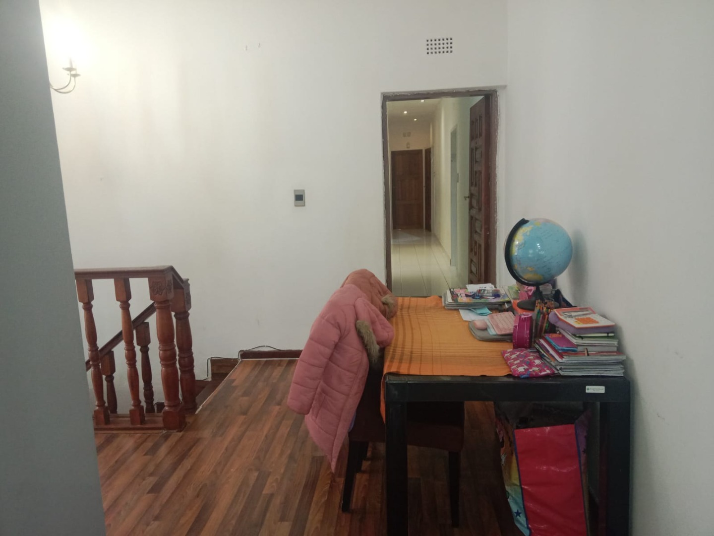 This inviting four bedroom, two bathroom residence, including one on-suite, is nestled in Mulbarton, Johannesburg. Designed for comfortable family living the home boasts an impressive open-plan layout connecting the living, dining and kitchen areas. The spacious lounge and dining room are bathed in natural light featuring modern wood-look laminate flooring and neutral walls complemented by an air conditioning unit and ceiling fan for comfort. An elegant arched entryway adds architectural interest.