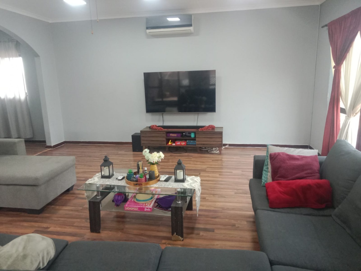 - Open plan living, dining room and family TV room