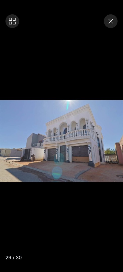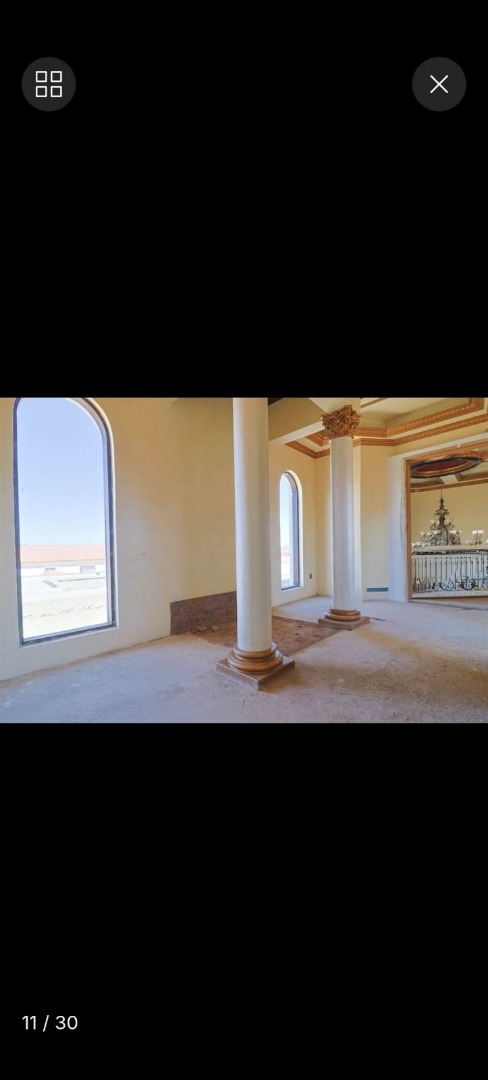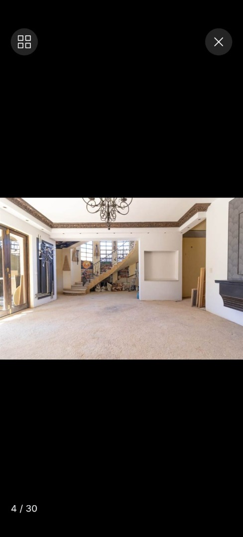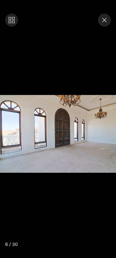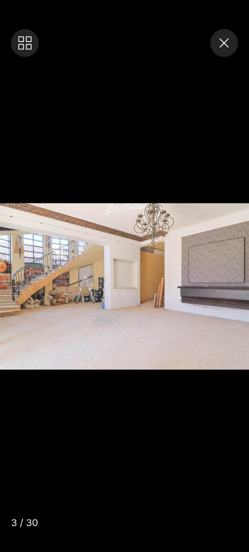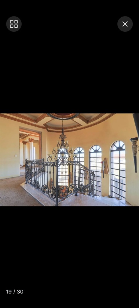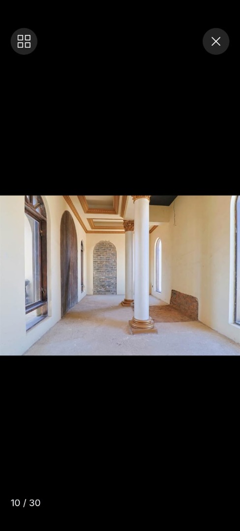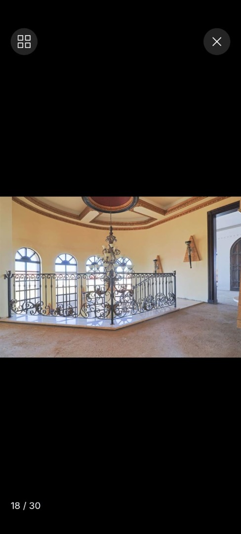 The interior boasts grand architectural features, including high ceilings, decorative medallions, and an impressive staircase with ornate wrought iron railings. Large arched windows throughout flood the spaces with natural light, creating an airy and inviting atmosphere. The property offers a generous layout with five bedrooms, four bathrooms (including two ensuites and a guest toilet), two kitchens, ( One kitchen in Flatlet) a dedicated dining room, and a comfortable lounge area.