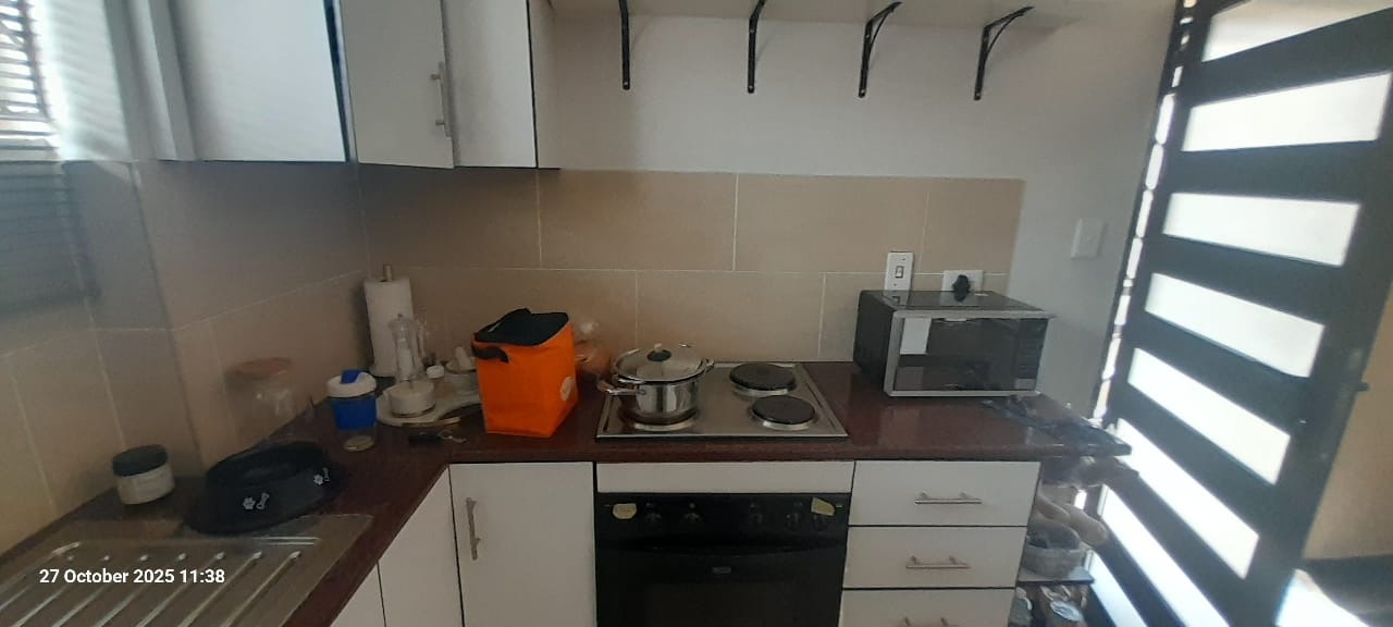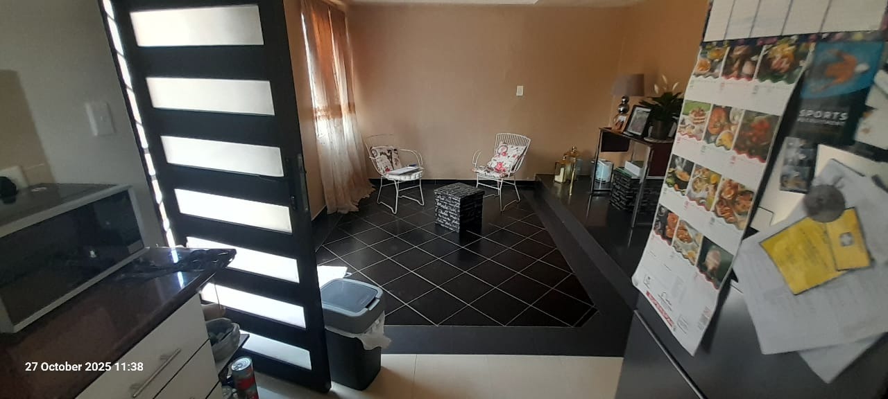 Externally, the property includes a balcony and a built-in braai, perfect for outdoor entertaining. Practical amenities are well-catered for with two garages and four additional parking spaces, complemented by a paved driveway. This suburban residence provides a solid foundation for a dream home, allowing the new owner to complete the finishes to their exact specifications.