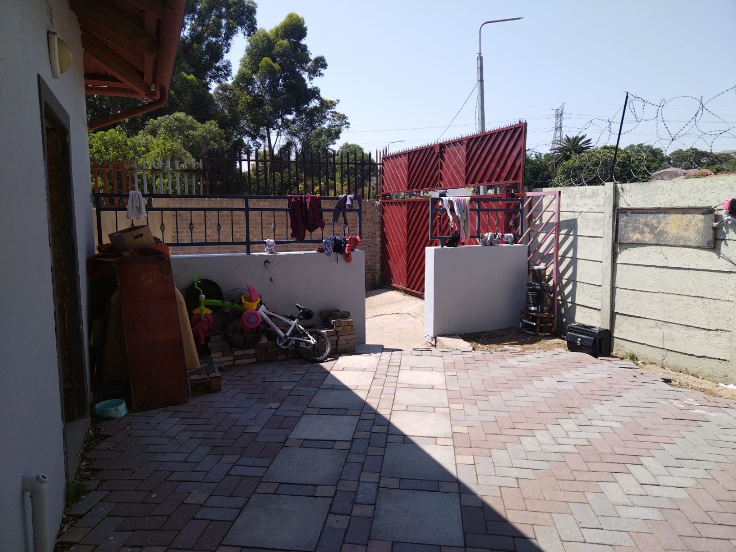 - Fully walled, access gate, security gate and burglar bars