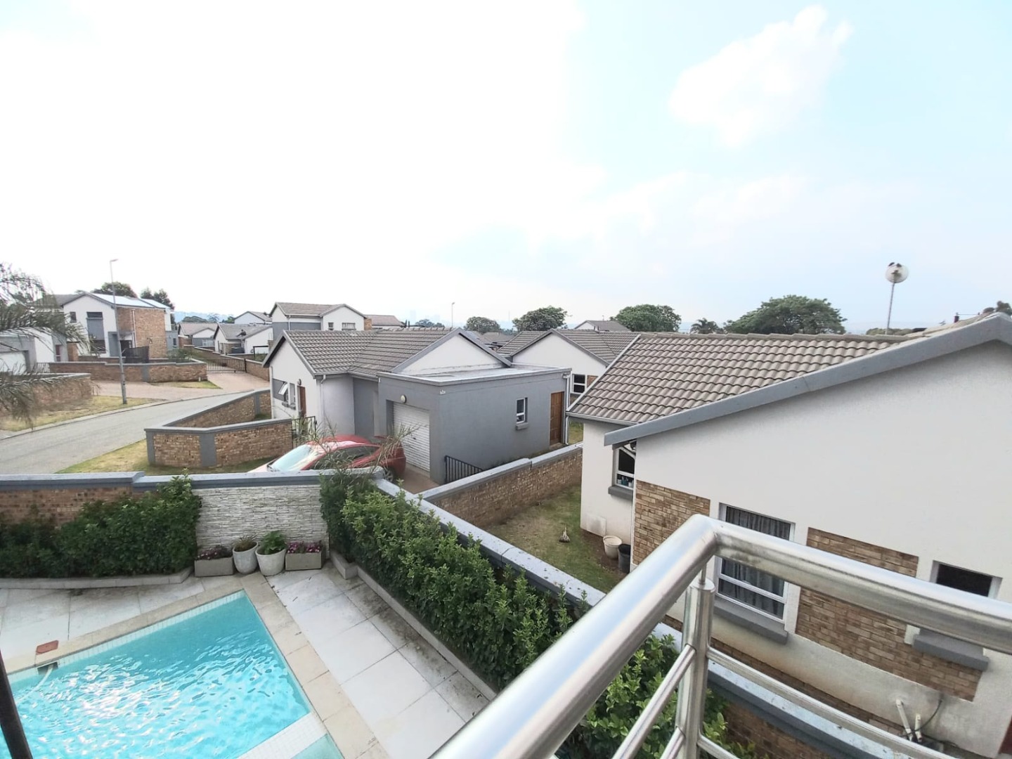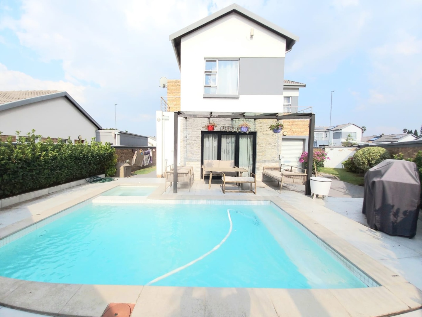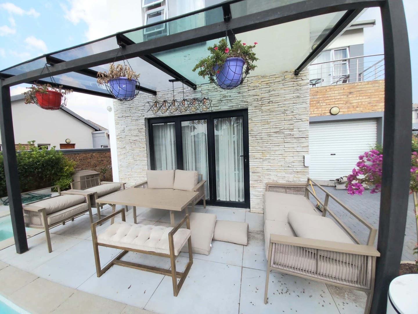 But the real showstopper lies outdoors. The private swimming pool, surrounded by lush greenery, offers the perfect setting for summer fun and relaxation. The covered patio and pergola provide a versatile space for al fresco dining, weekend braais or simply enjoying a quiet moment outdoors. There’s also an upper-level balcony with lovely views — ideal for morning coffee or evening sundowners. Additional features include a secure garage, parking for up to four vehicles and pet-friendly policies — making it a home that truly caters to every member of the family. For your peace of mind, this home is fitted with top-tier security features including an alarm system, security gate, intercom and access control — all within a secure, gated community. Modern conveniences abound, from fibre-ready internet for seamless connectivity to eco-conscious upgrades like a solar geyser and battery inverter system, helping you stay connected and save on energy costs.