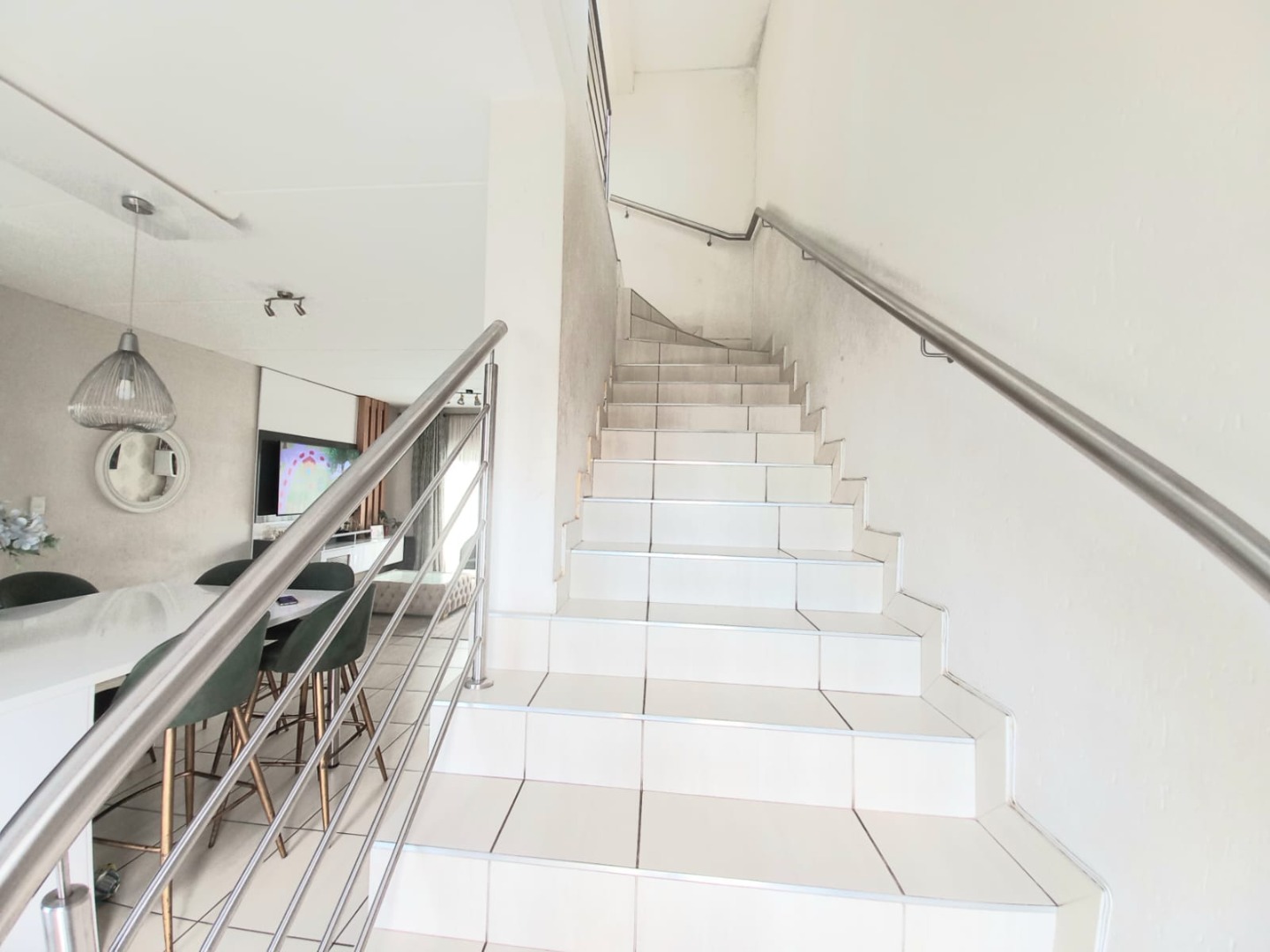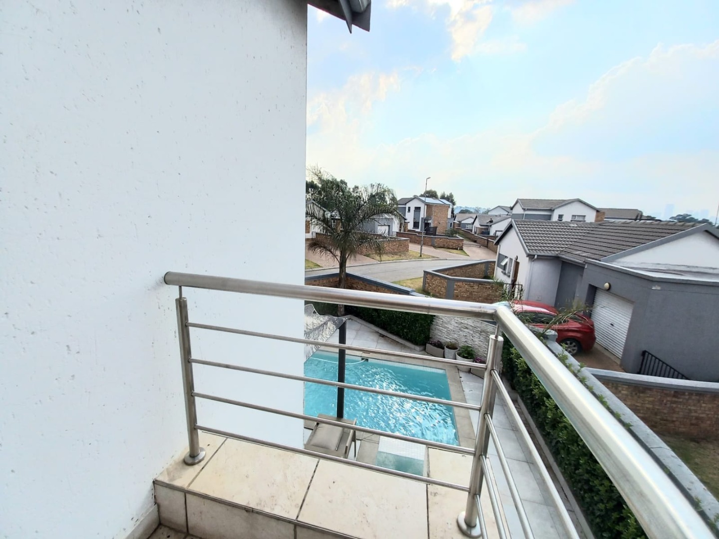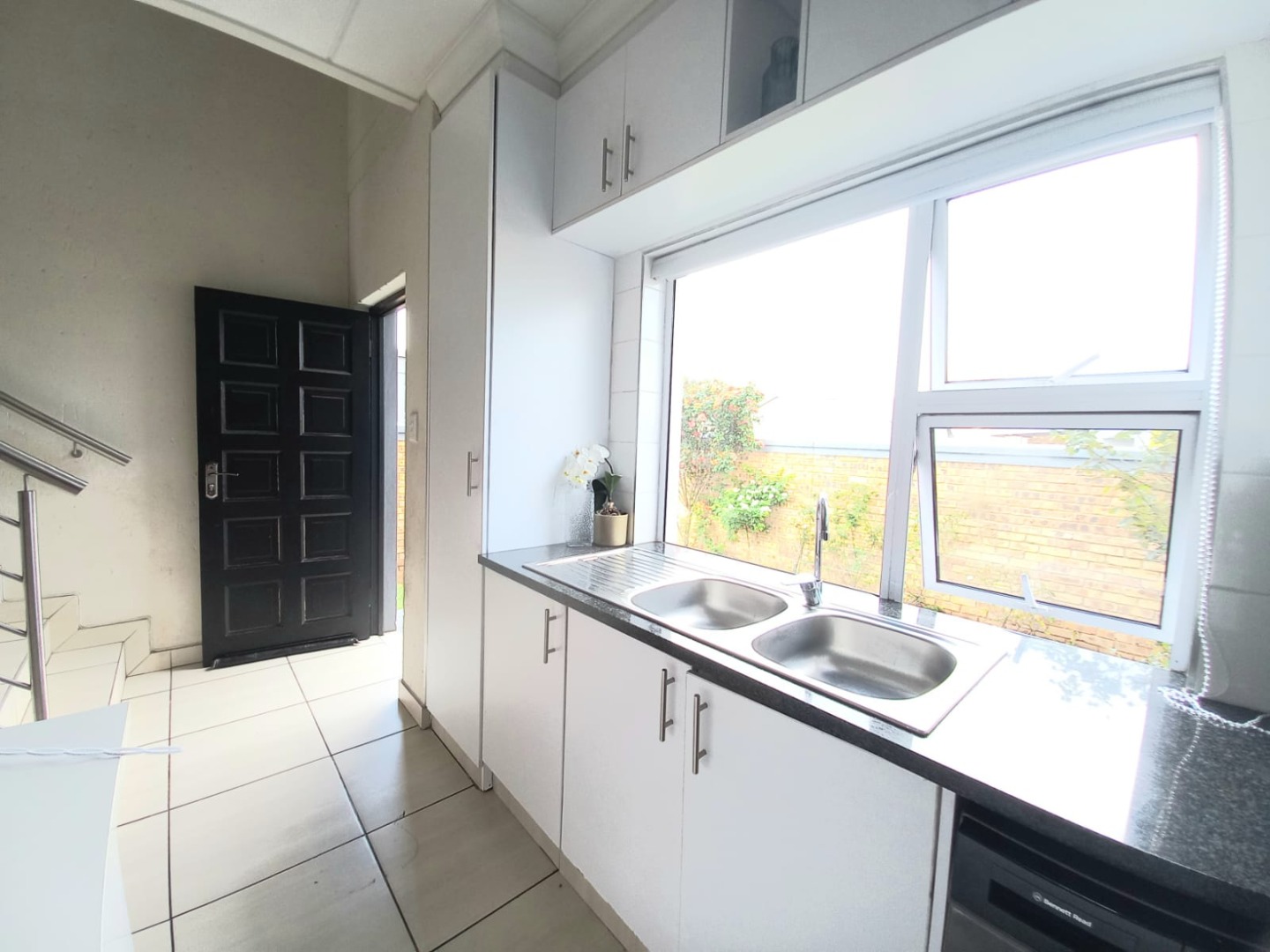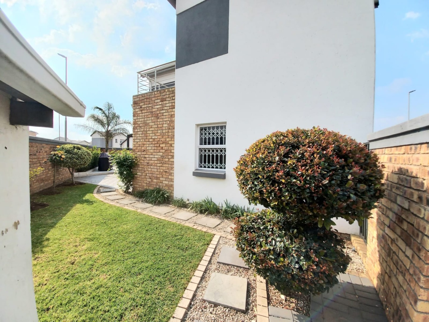 But the real showstopper lies outdoors. The private swimming pool, surrounded by lush greenery, offers the perfect setting for summer fun and relaxation. The covered patio and pergola provide a versatile space for al fresco dining, weekend braais or simply enjoying a quiet moment outdoors. There’s also an upper-level balcony with lovely views — ideal for morning coffee or evening sundowners. Additional features include a secure garage, parking for up to four vehicles and pet-friendly policies — making it a home that truly caters to every member of the family. For your peace of mind, this home is fitted with top-tier security features including an alarm system, security gate, intercom and access control — all within a secure, gated community. Modern conveniences abound, from fibre-ready internet for seamless connectivity to eco-conscious upgrades like a solar geyser and battery inverter system, helping you stay connected and save on energy costs.